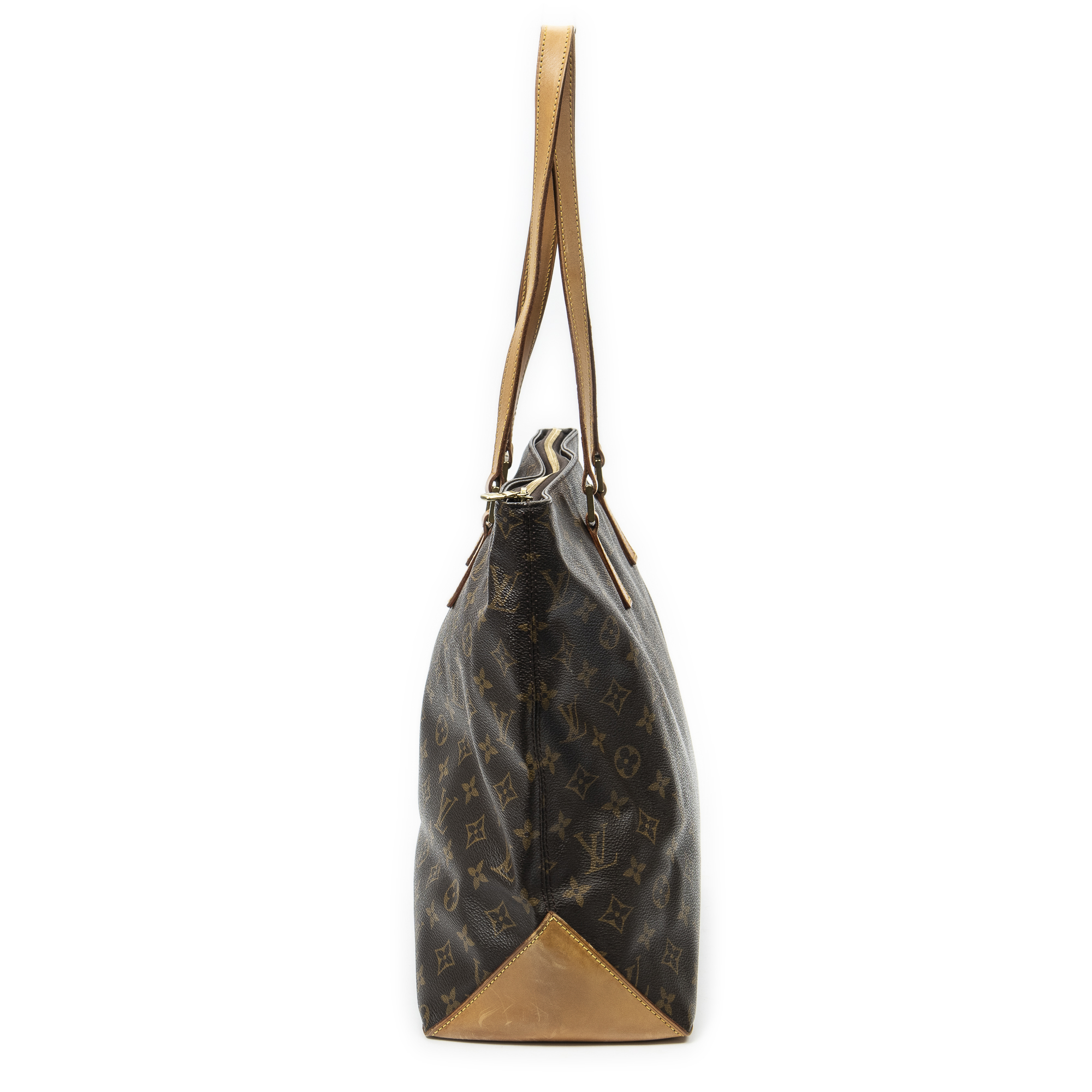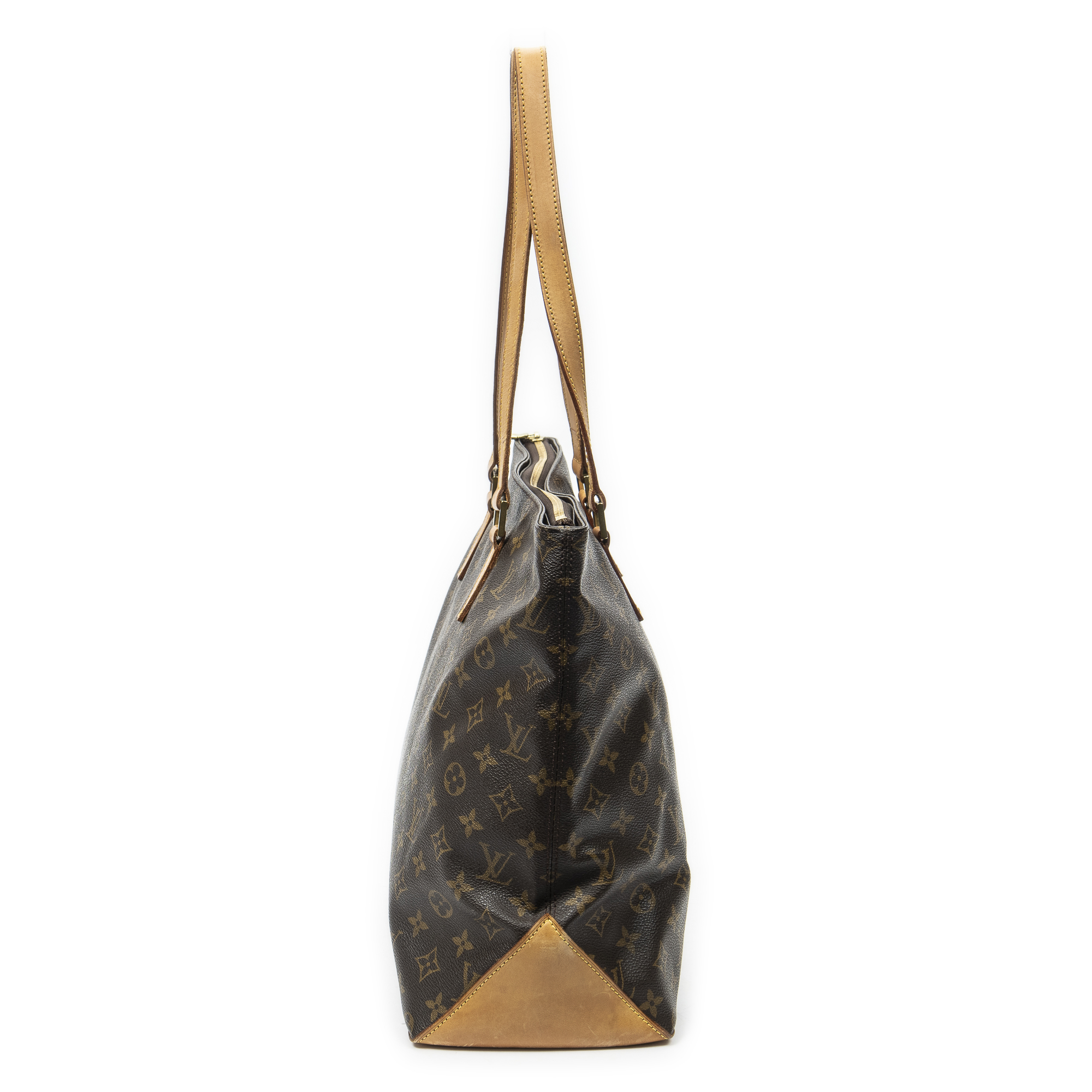Louis Vuitton Sac à bandoulière Cabas Mezzo en Brown et Cuivre d’Or. Le produit est en Excellent état (A).