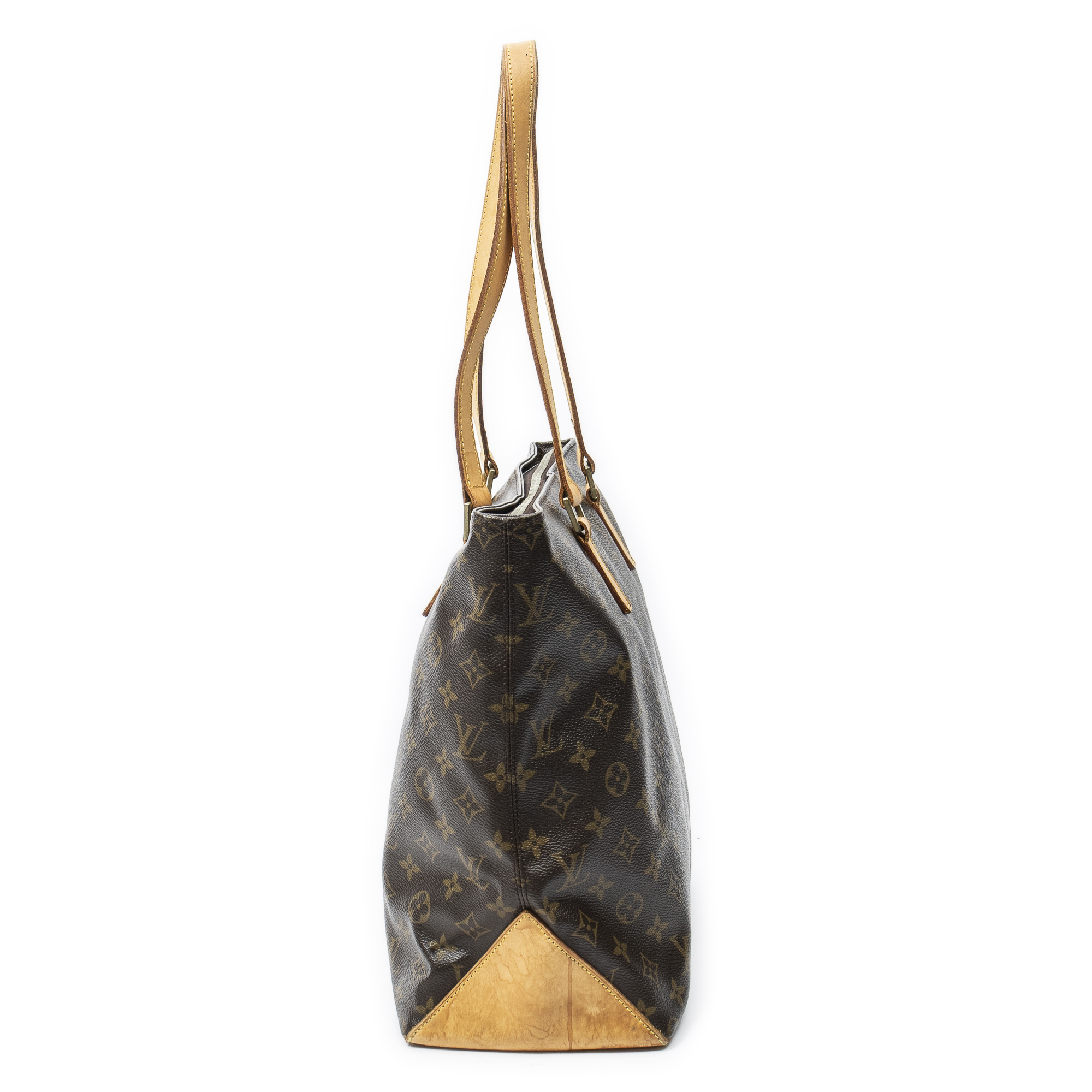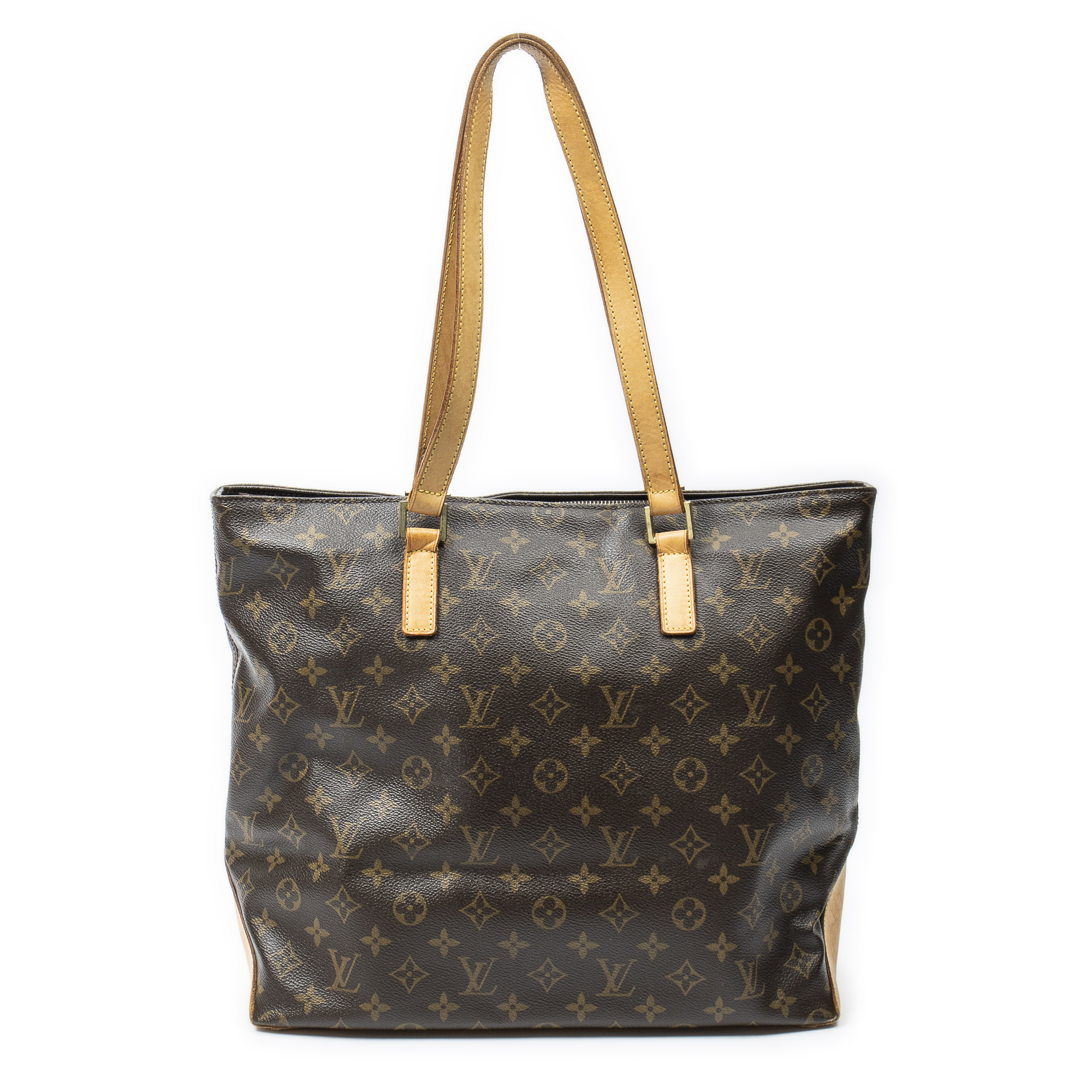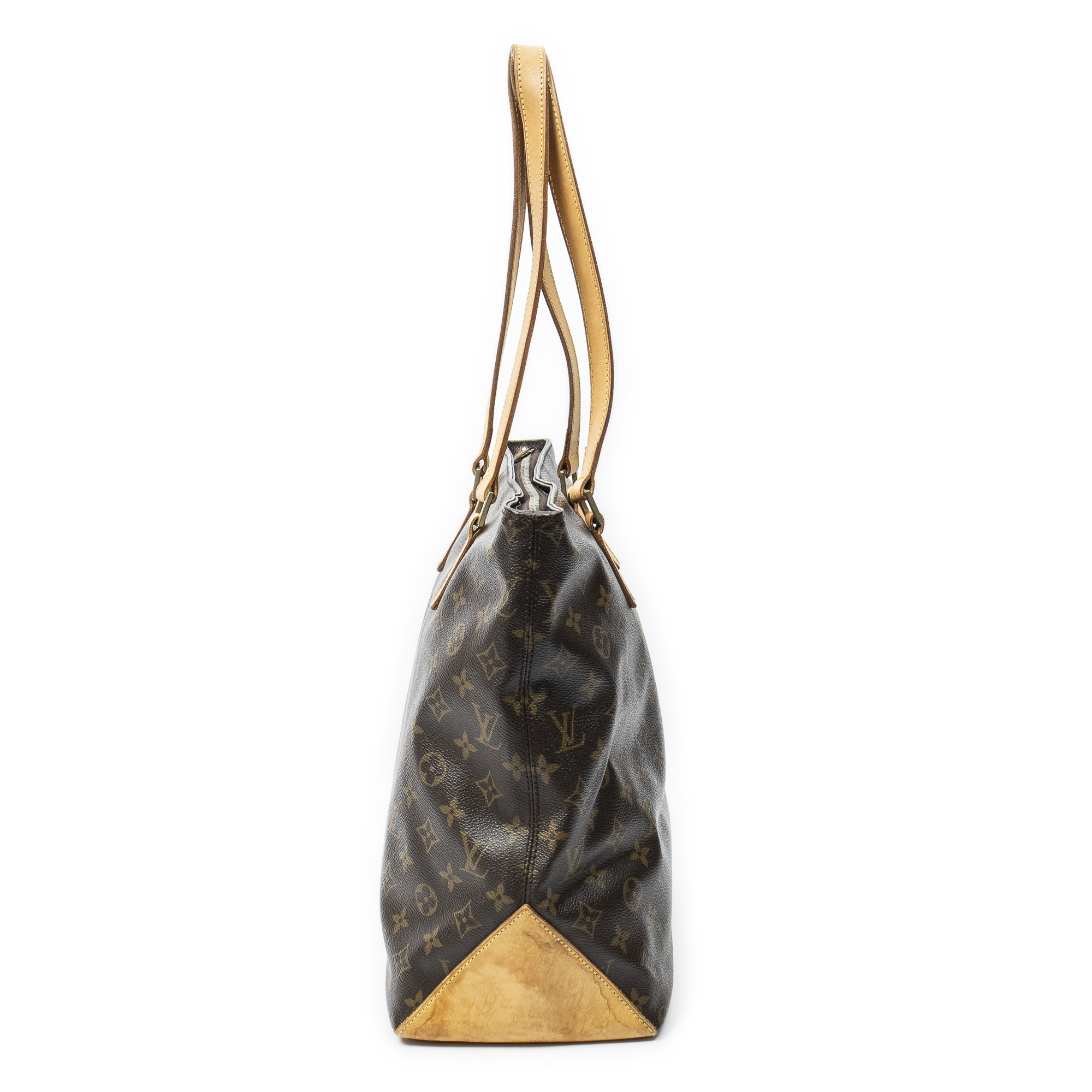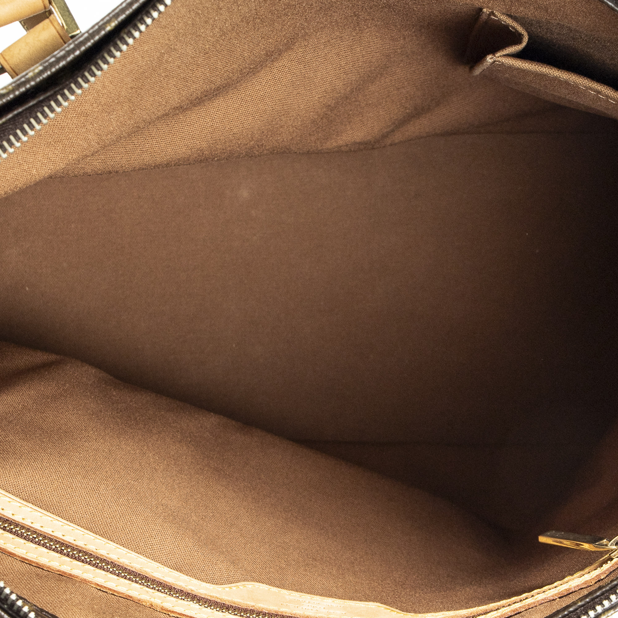 Louis Vuitton sac à bandoulière Cabas Mezzo en brun et laiton doré. Le produit est en Très Bon état (AB).