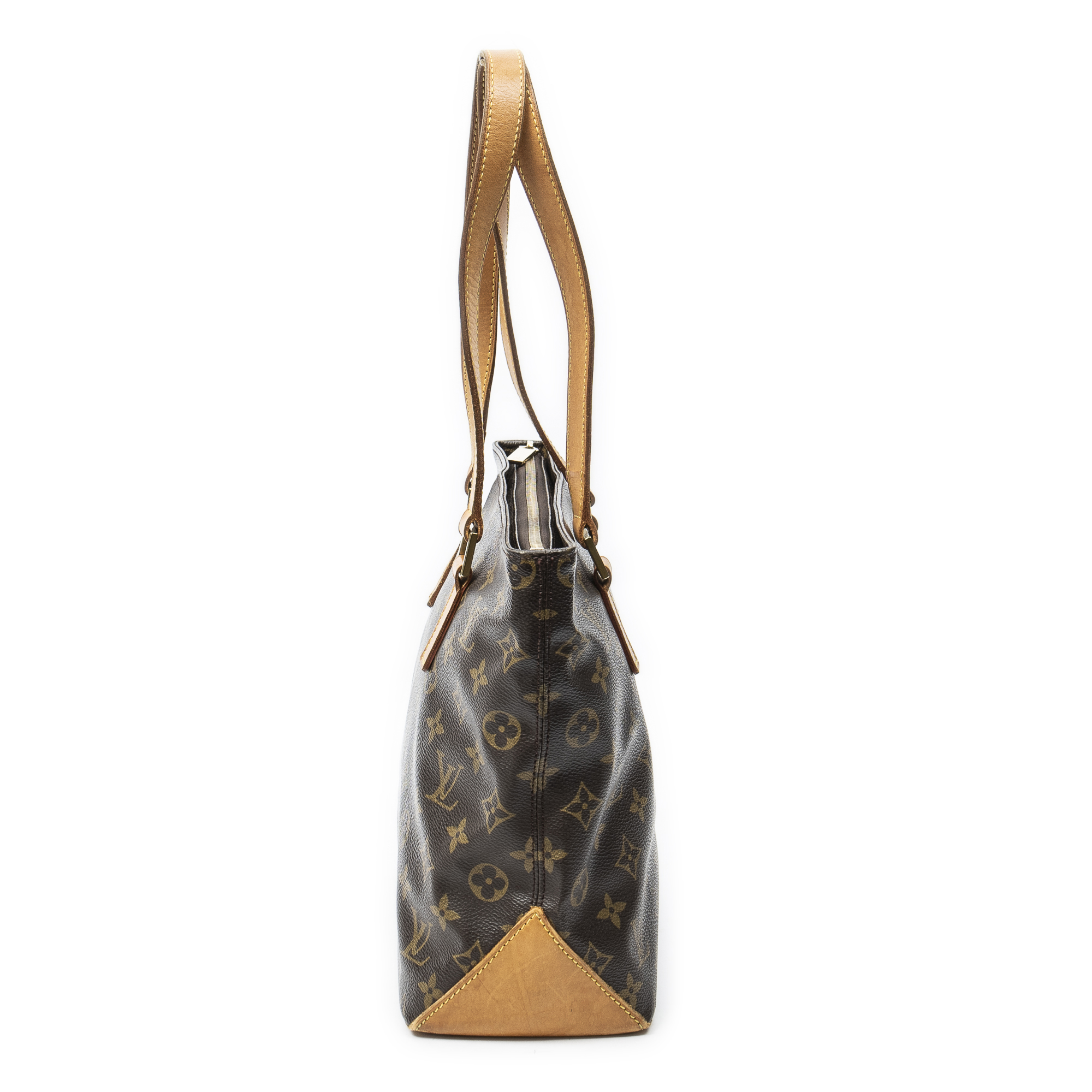 Louis Vuitton sac à bandoulière Cabas Piano en brun et laiton doré. Le produit est en Très Bon état (AB).