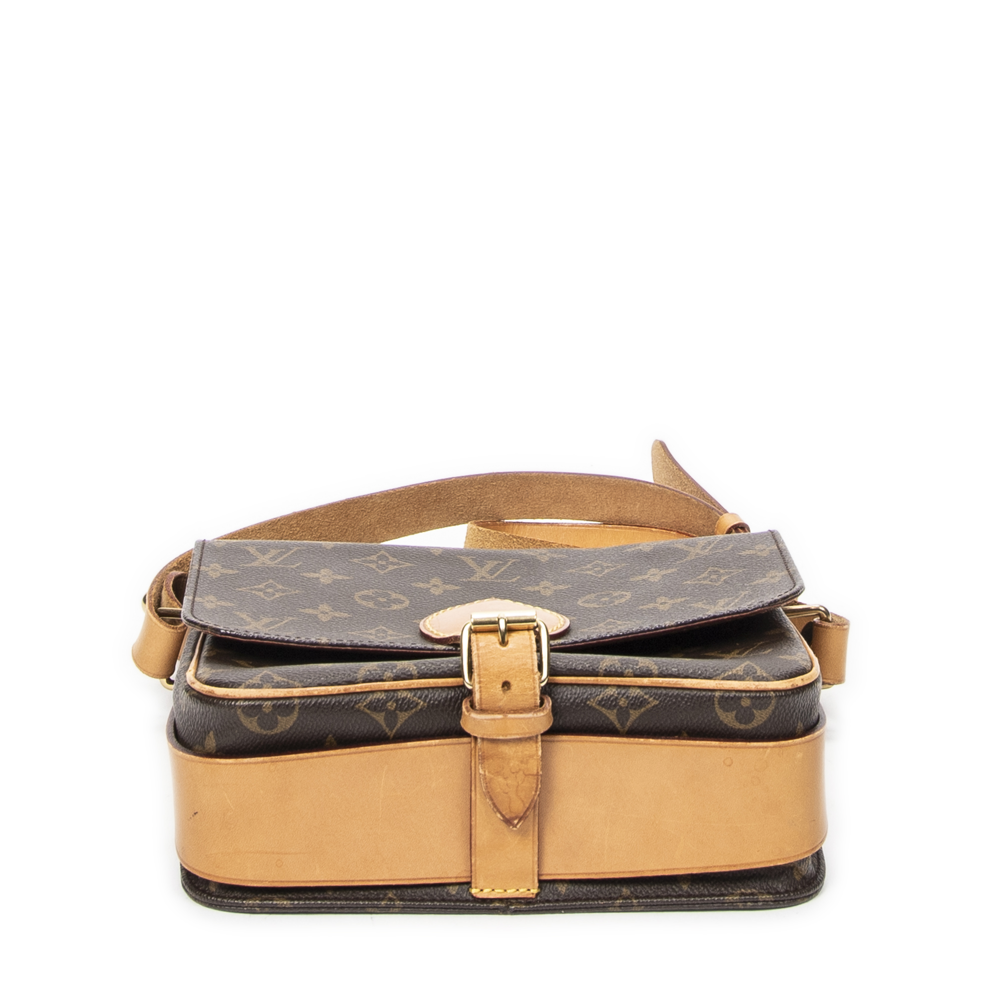 Louis Vuitton Sac à bandoulière Cartouchiere MM en Brown et Cuivre d’Or. Le produit est en Très Bon état (AB).