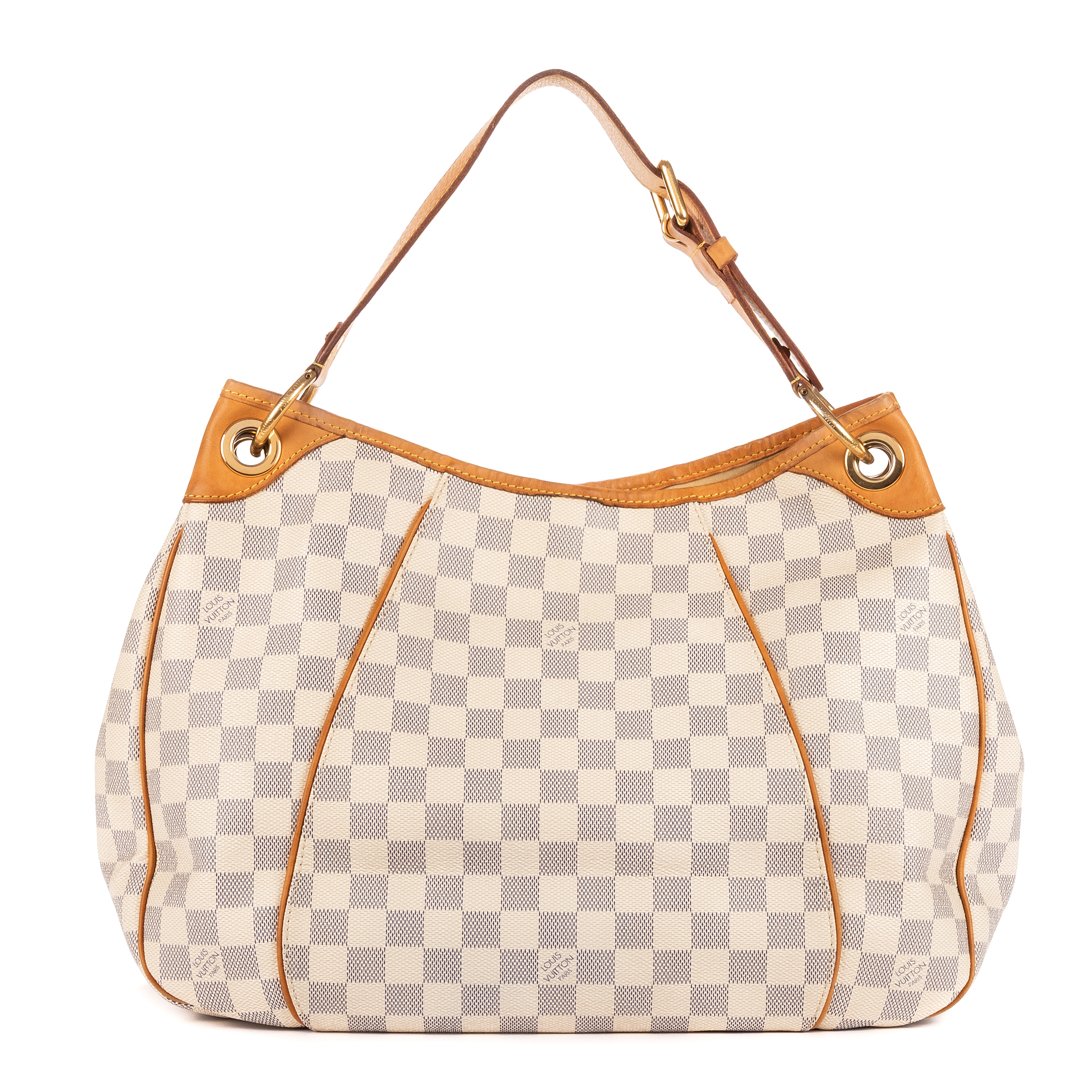 Louis Vuitton Sac à bandoulière Galleria PM en Blanc et Laiton doré. Le produit est en Excellent état (A).