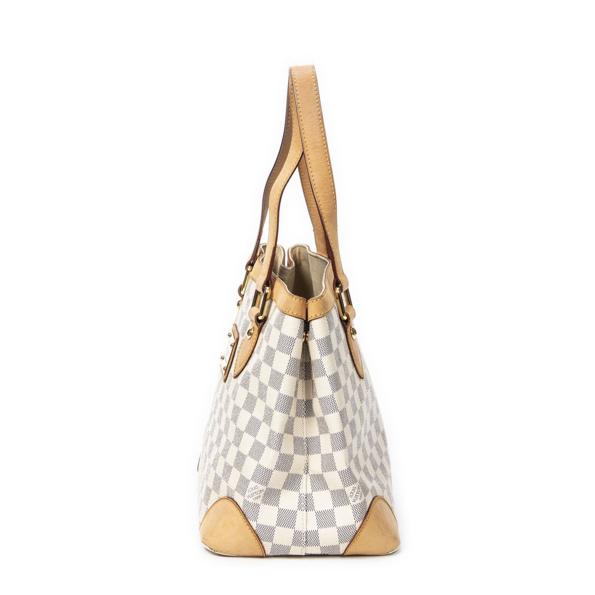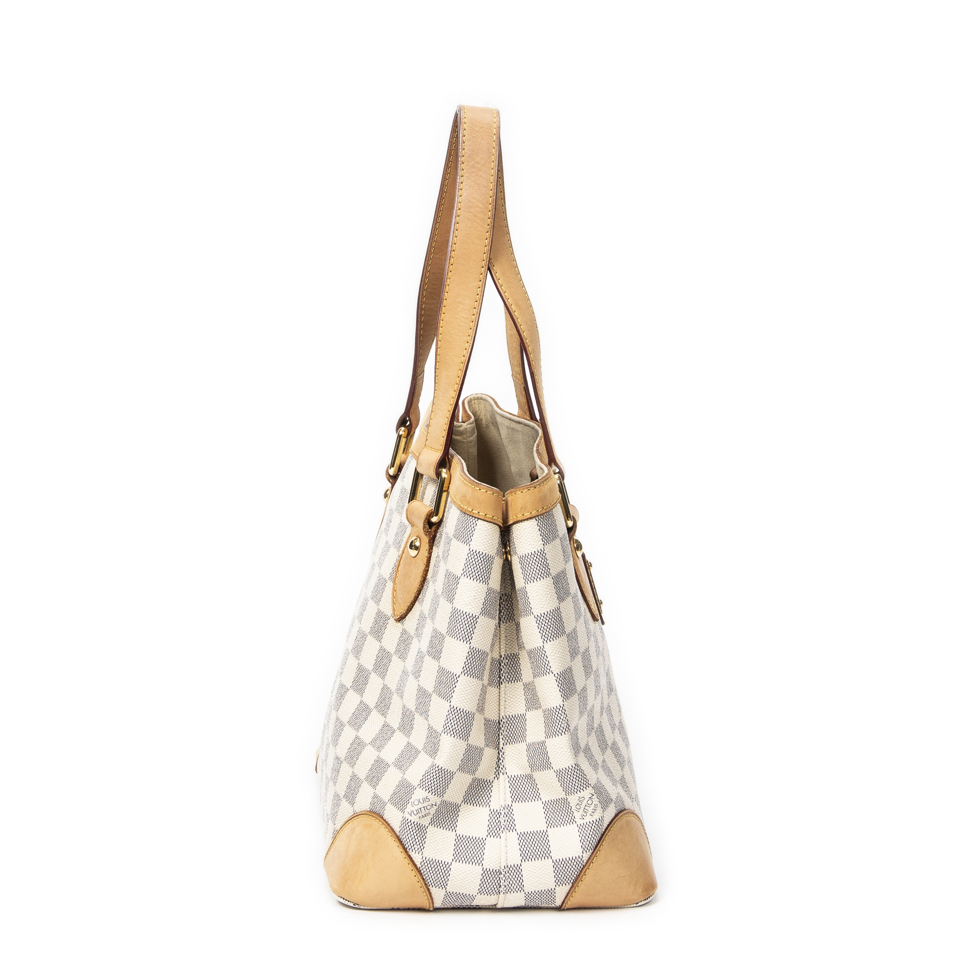 Louis Vuitton Sac à bandoulière Hampstead PM en Ivoire et Laiton doré. Le produit est en Très Bon état (AB).