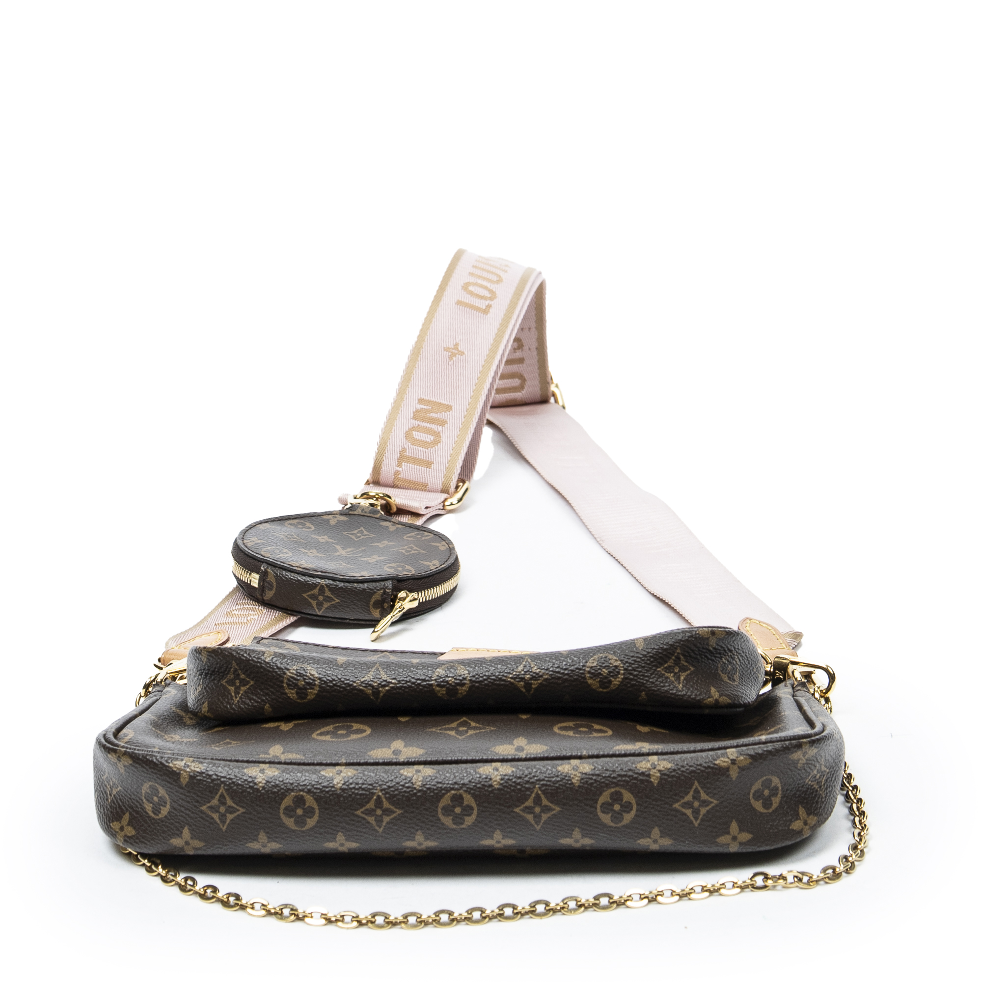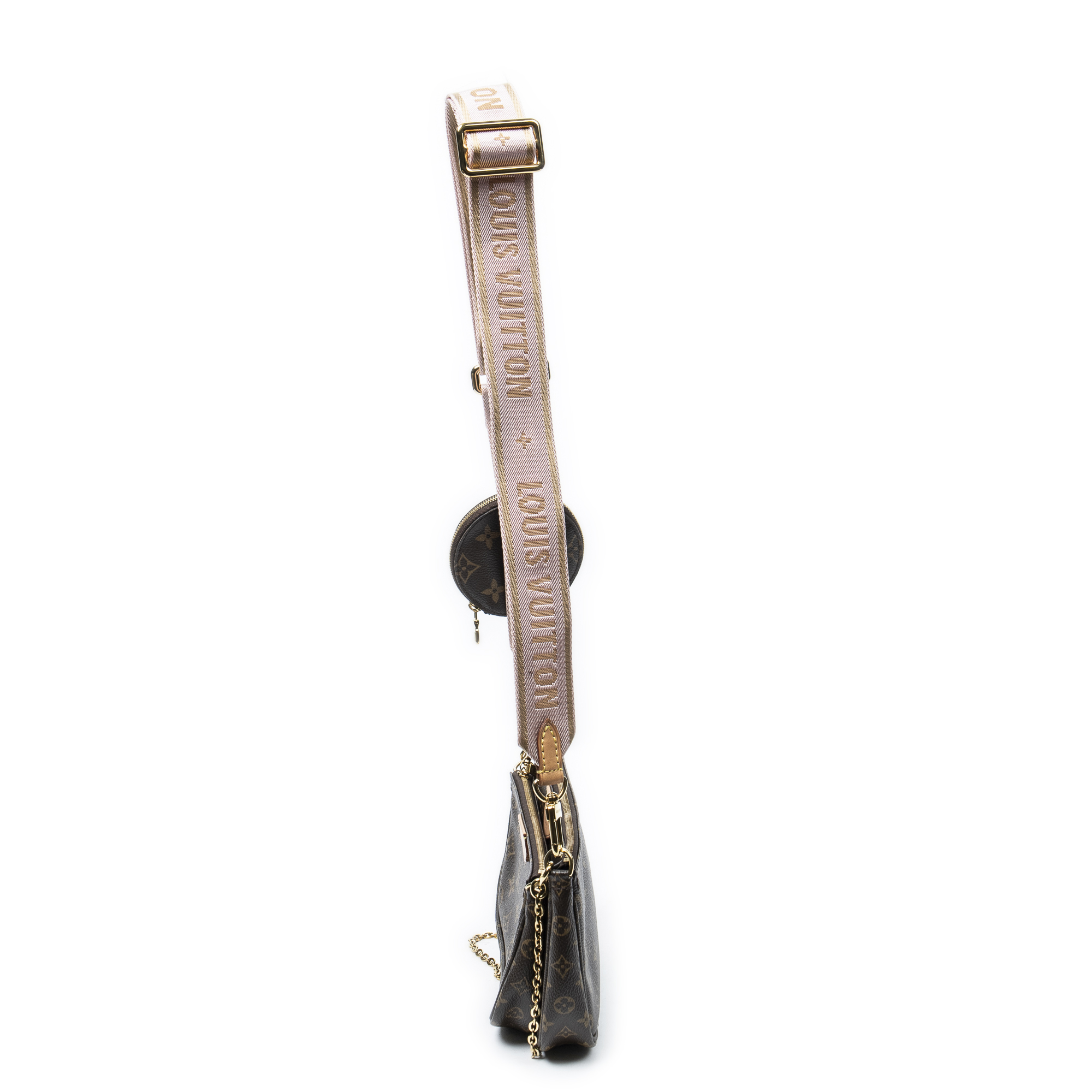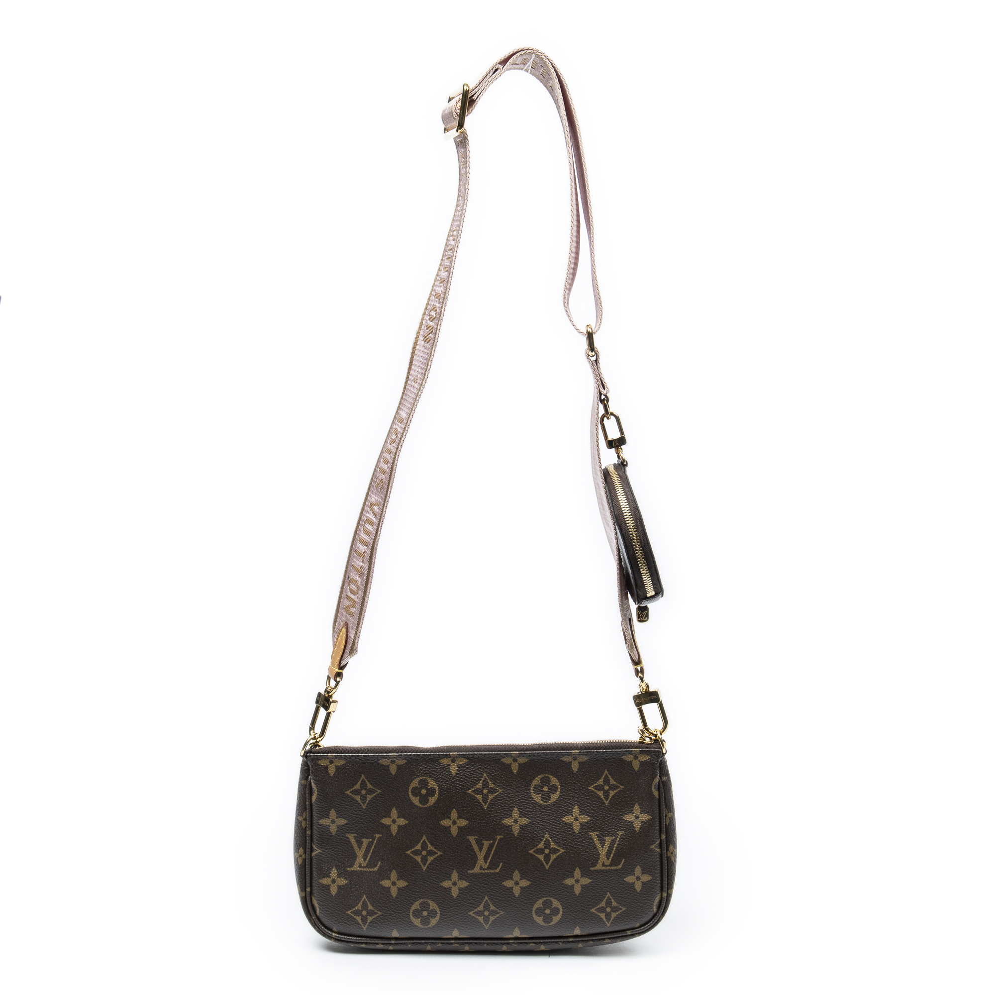 Louis Vuitton sac à bandoulière Multi Pochette Accessoires en brun et laiton doré. Le produit est en Excellent état (A).