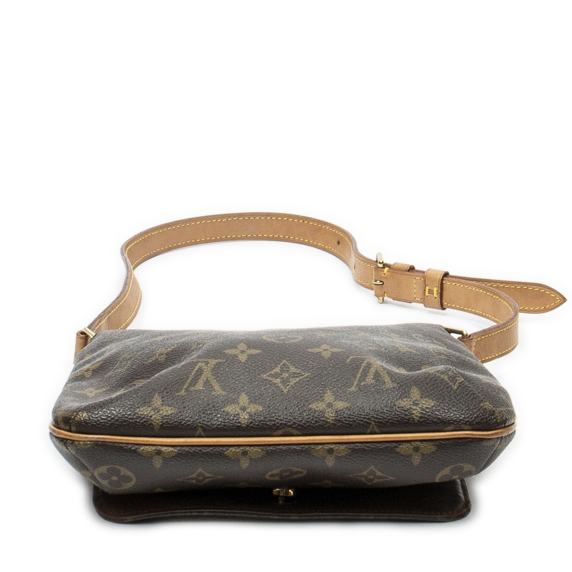 Louis Vuitton Sac à bandoulière Musette Salsa en Brown et Cuivre d’Or. Le produit est en Très Bon état (AB).