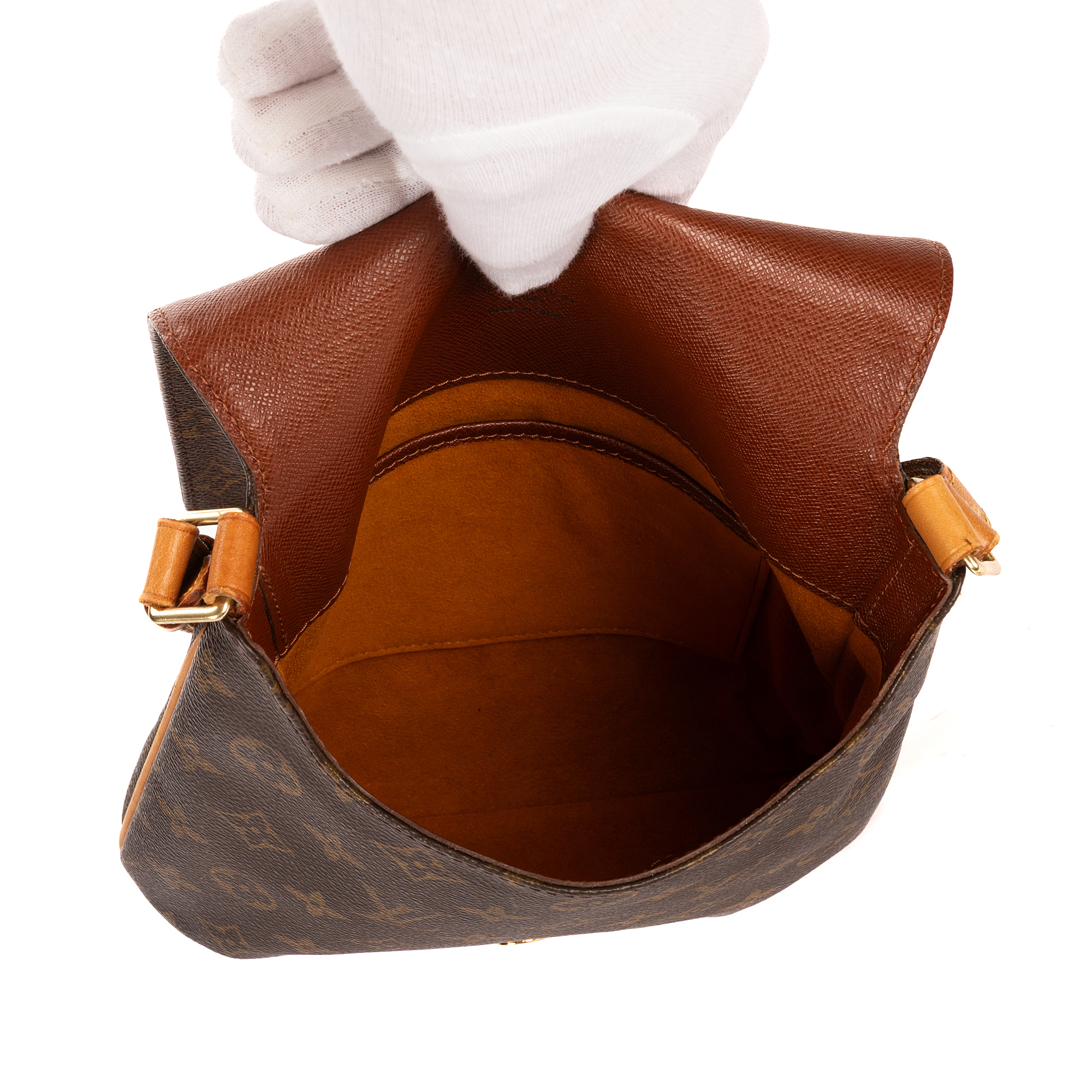 Louis Vuitton Sac à bandoulière Musette Salsa en Brown et Cuivre d’Or. Le produit est en Excellent état (A).