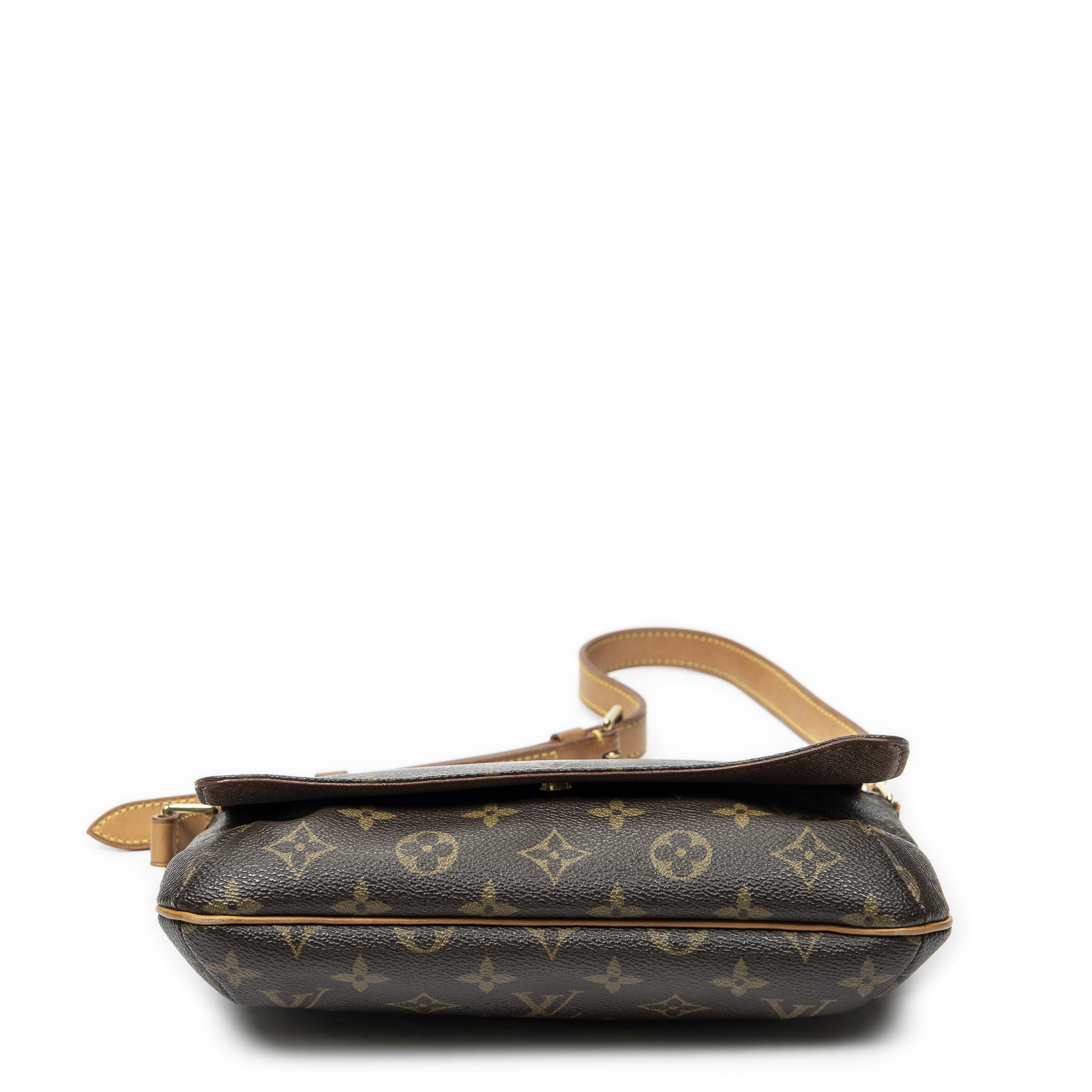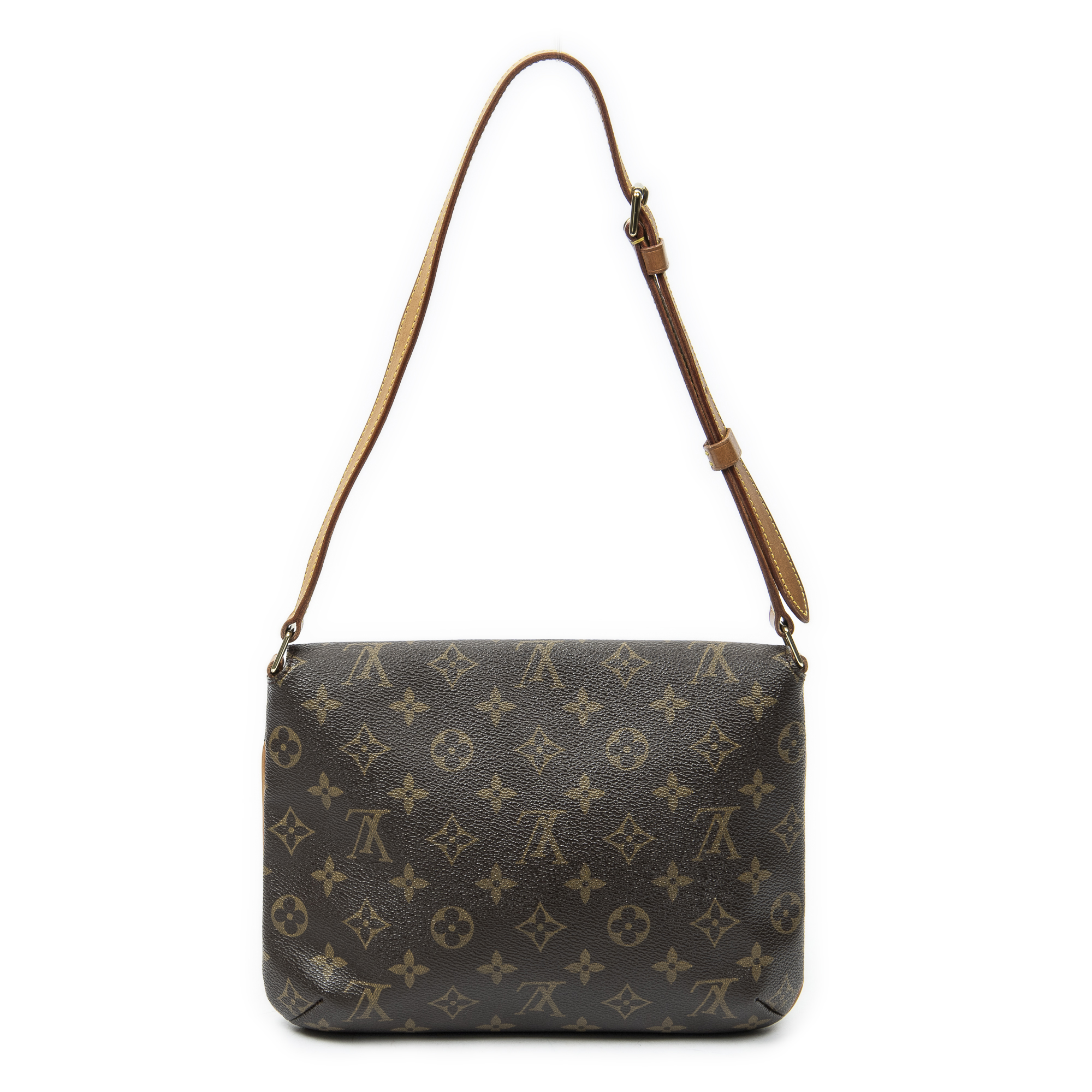 Louis Vuitton Sac à bandoulière Musette Tango en Brown et Cuivre d’Or. Le produit est en Très Bon état (AB).