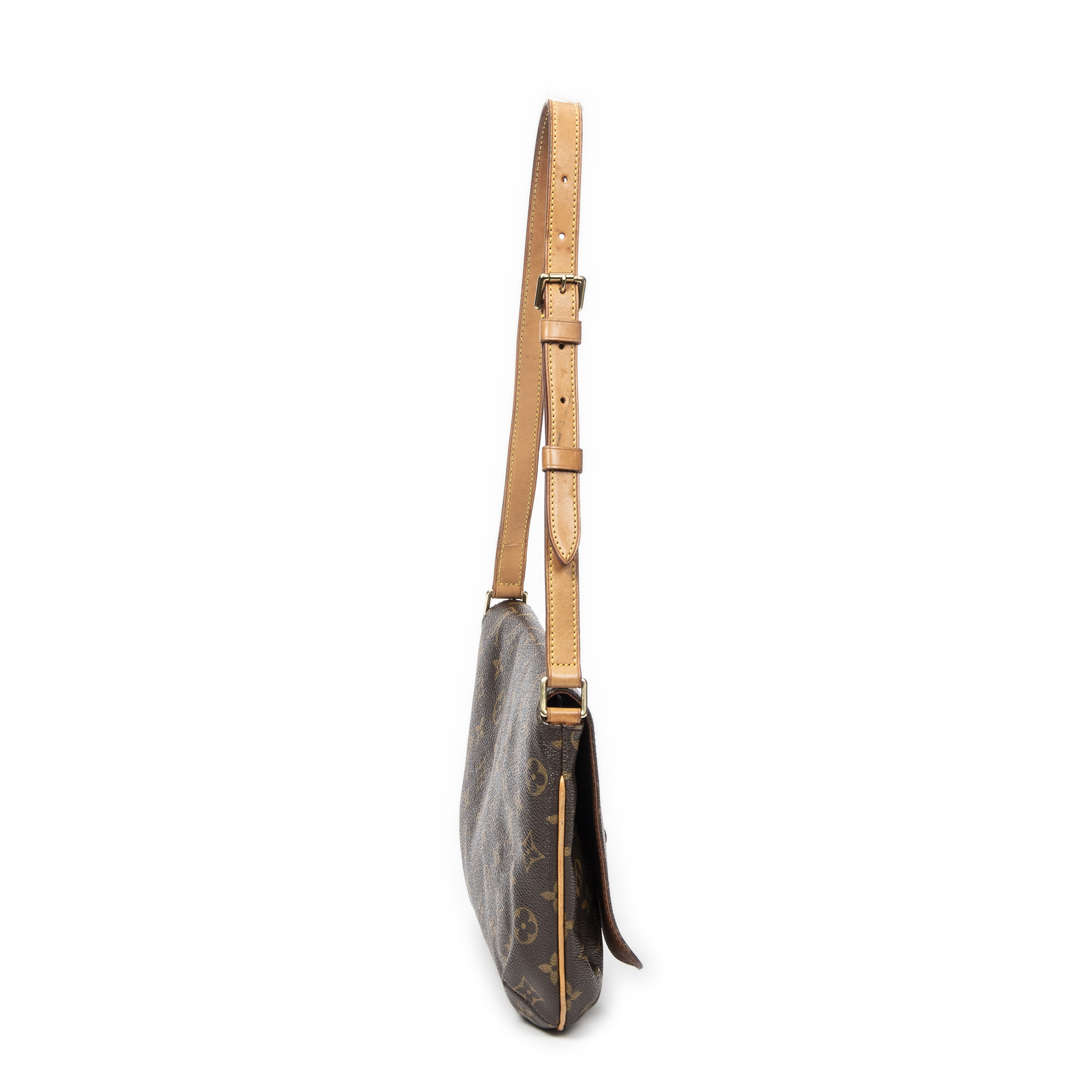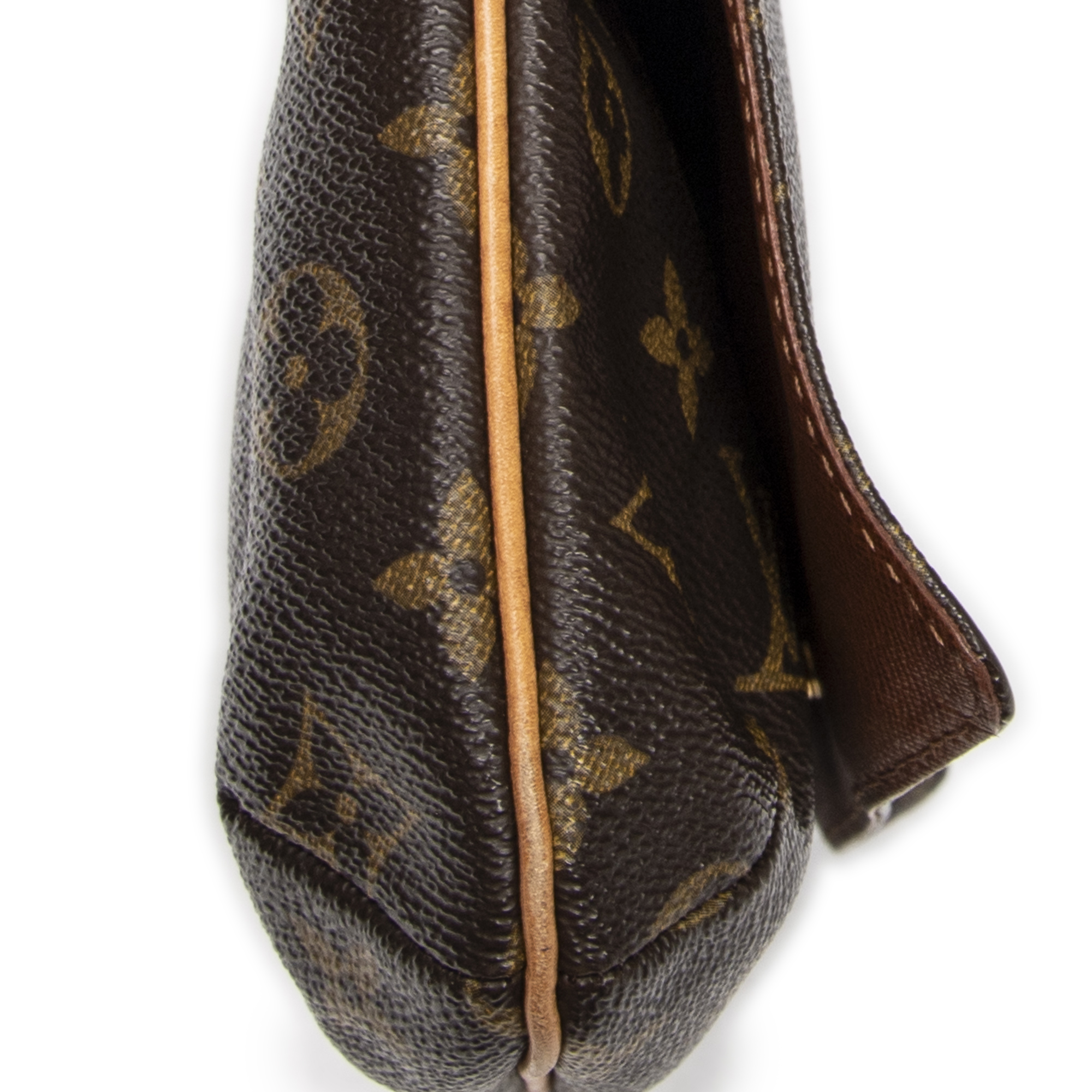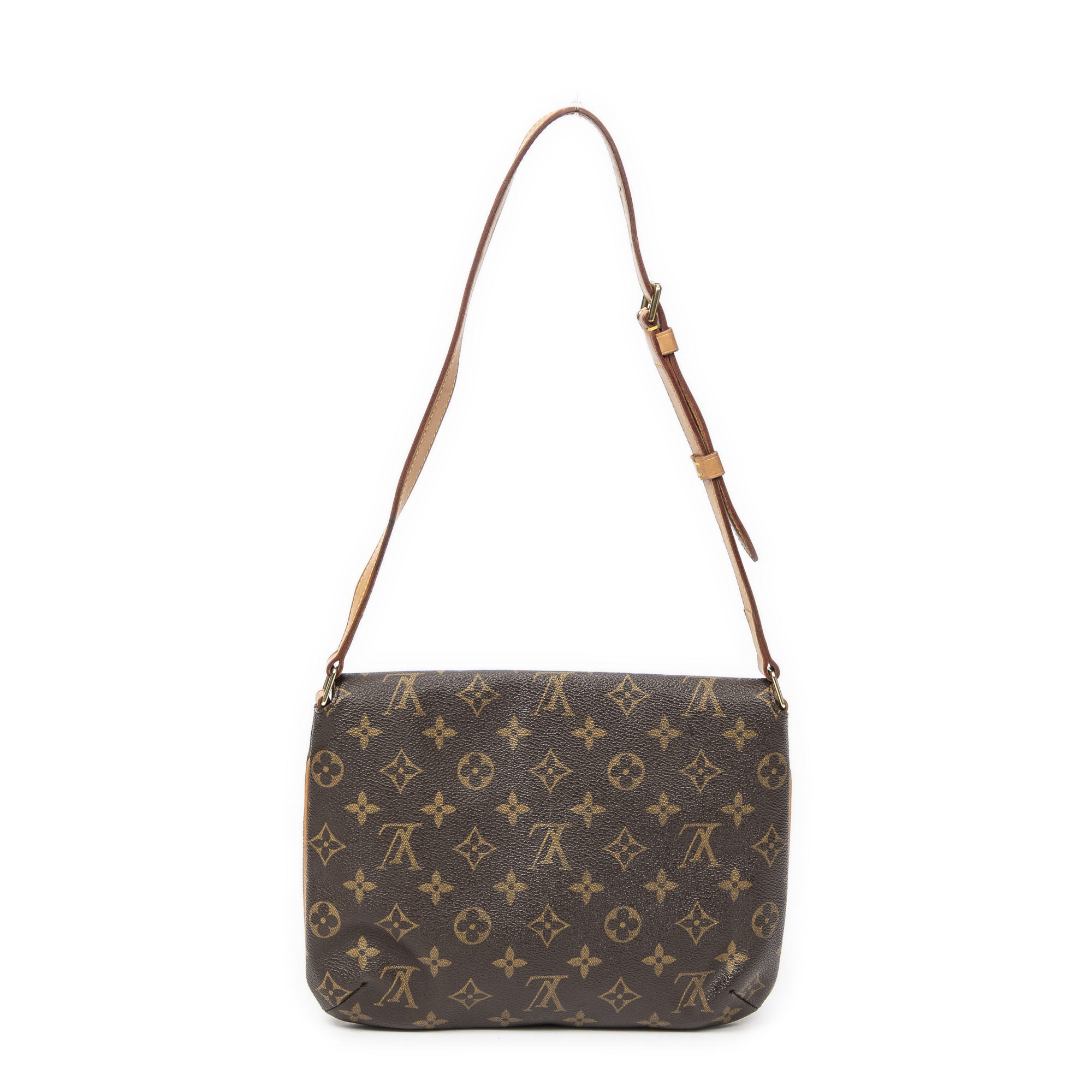 Louis Vuitton Sac à bandoulière Musette Tango en Brown et Cuivre d’Or. Le produit est en Très Bon état (AB).