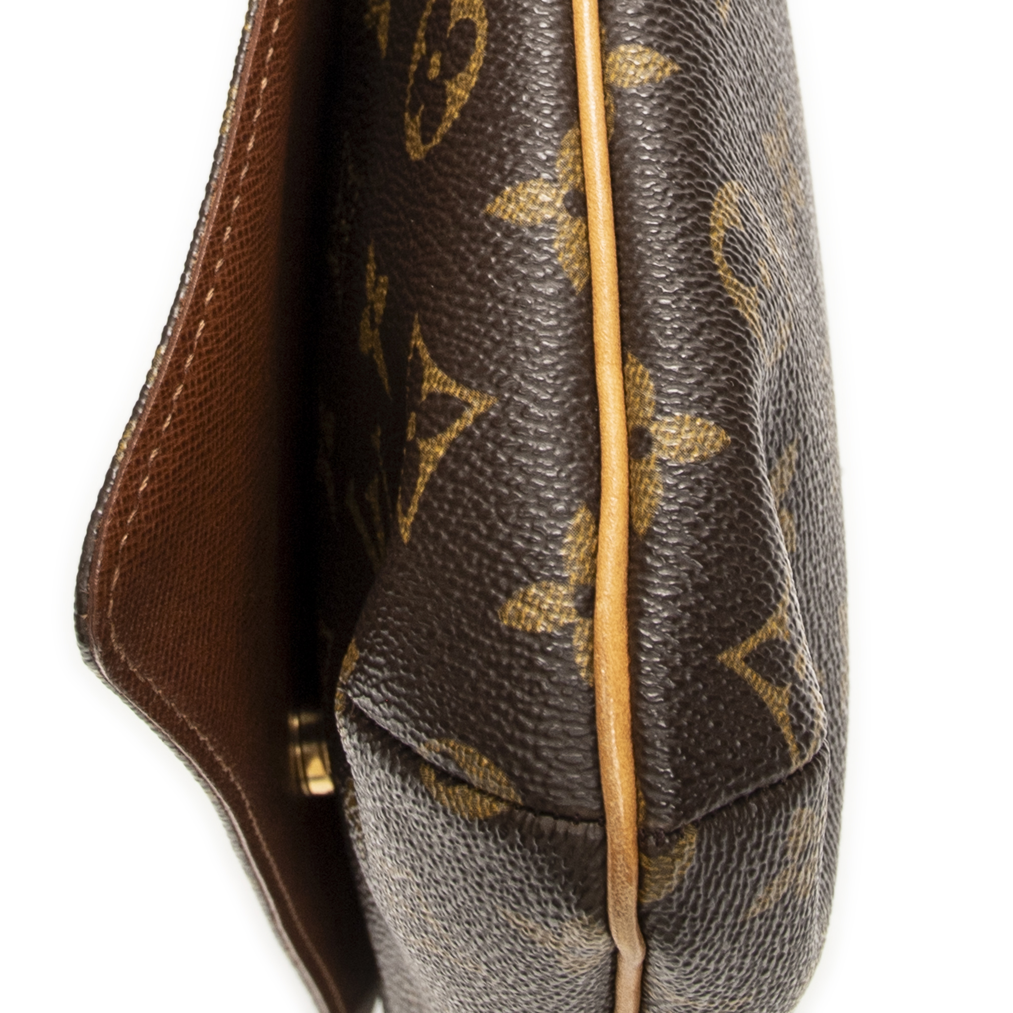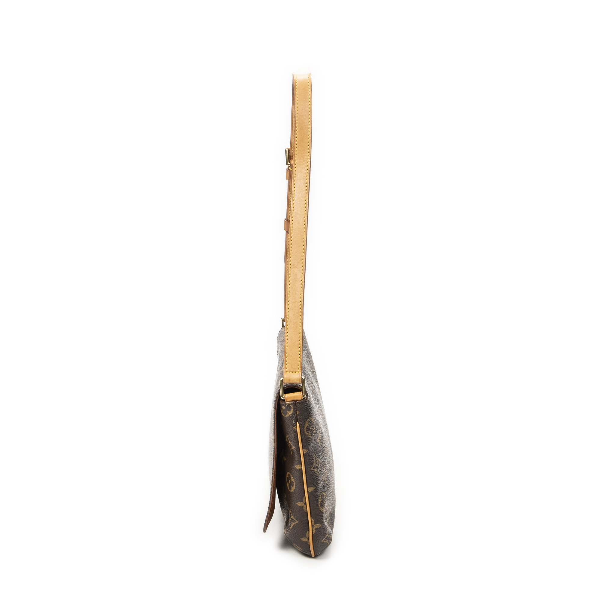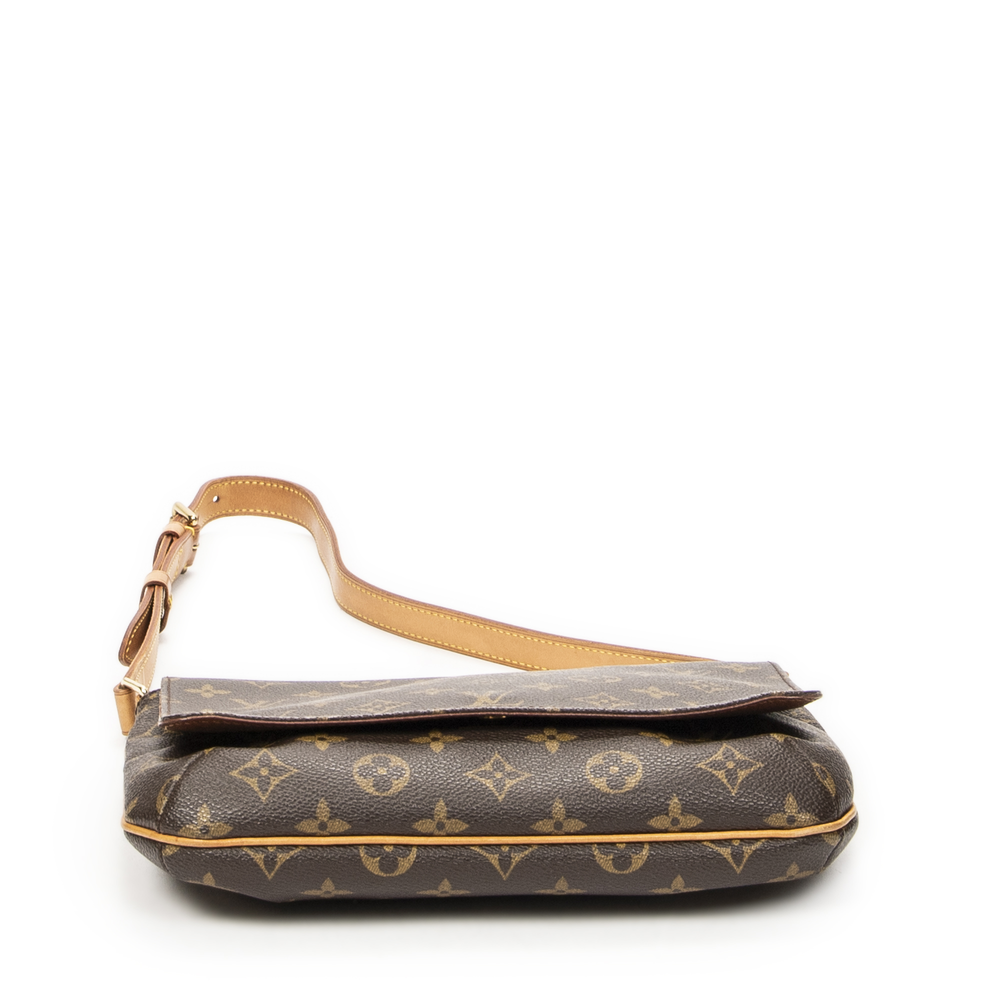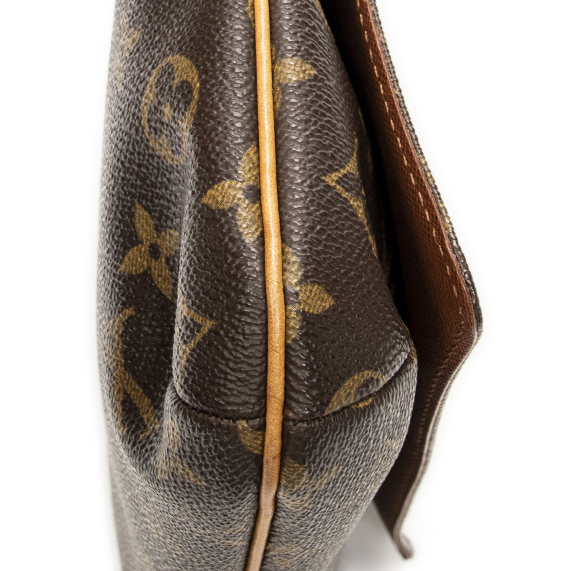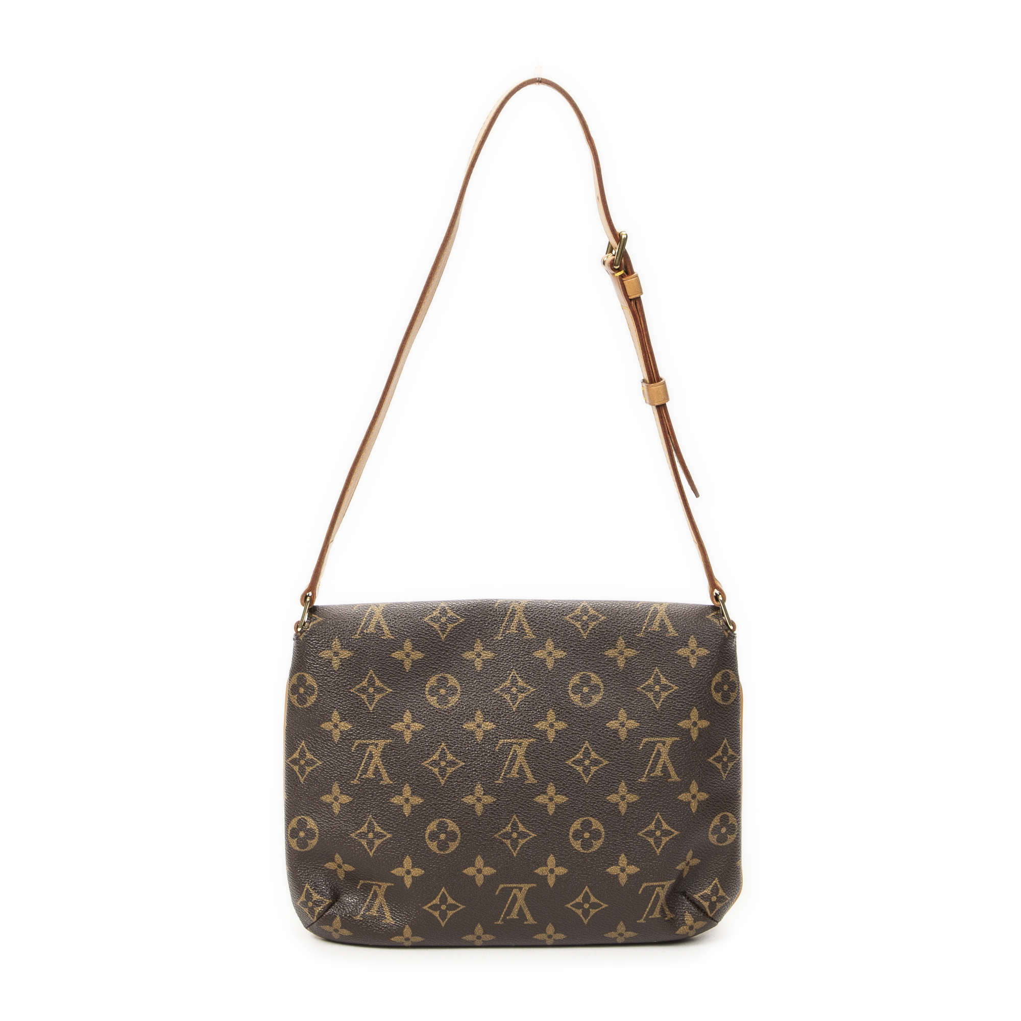Louis Vuitton sac à bandoulière Musette Tango en brun et laiton doré. Le produit est en Excellent état (A).