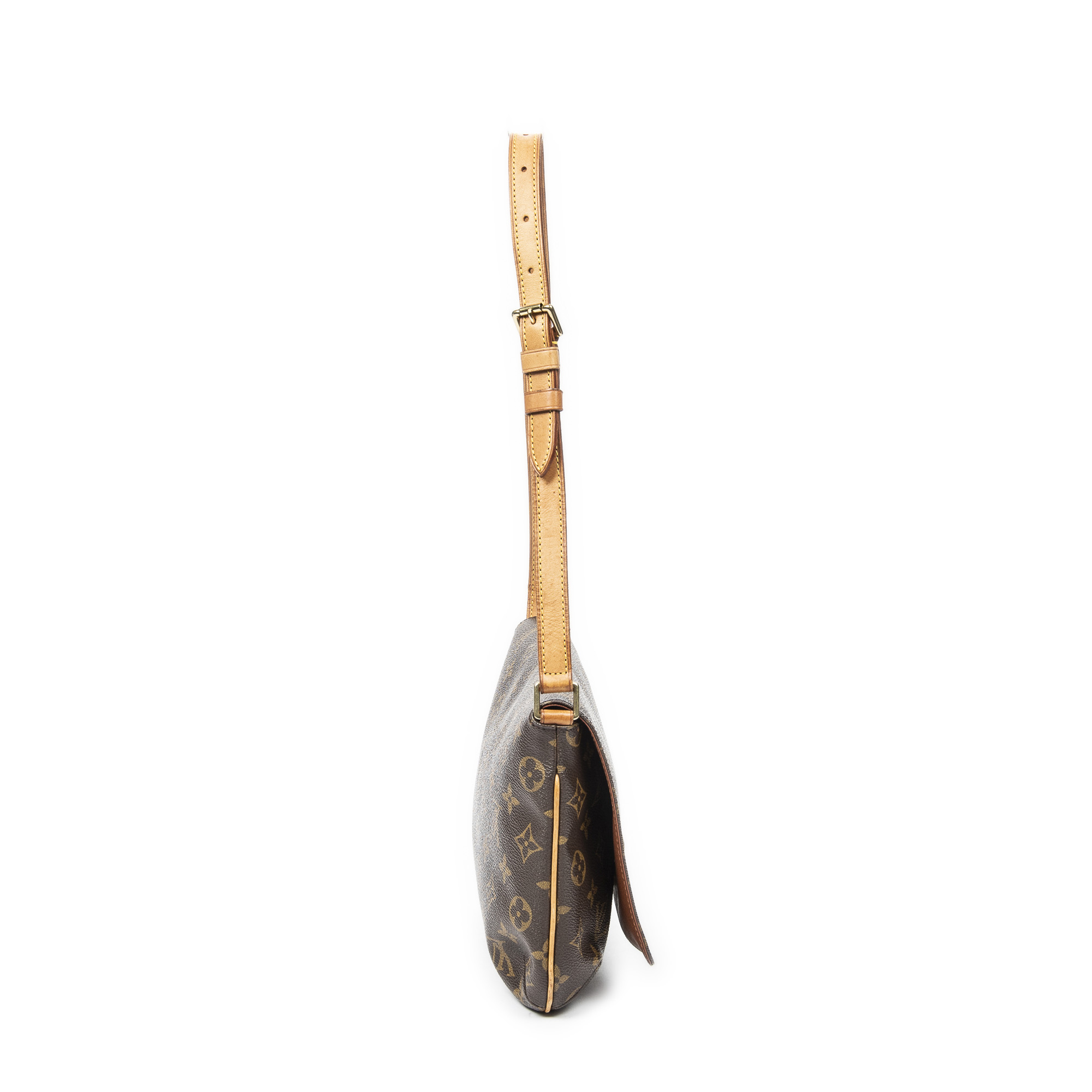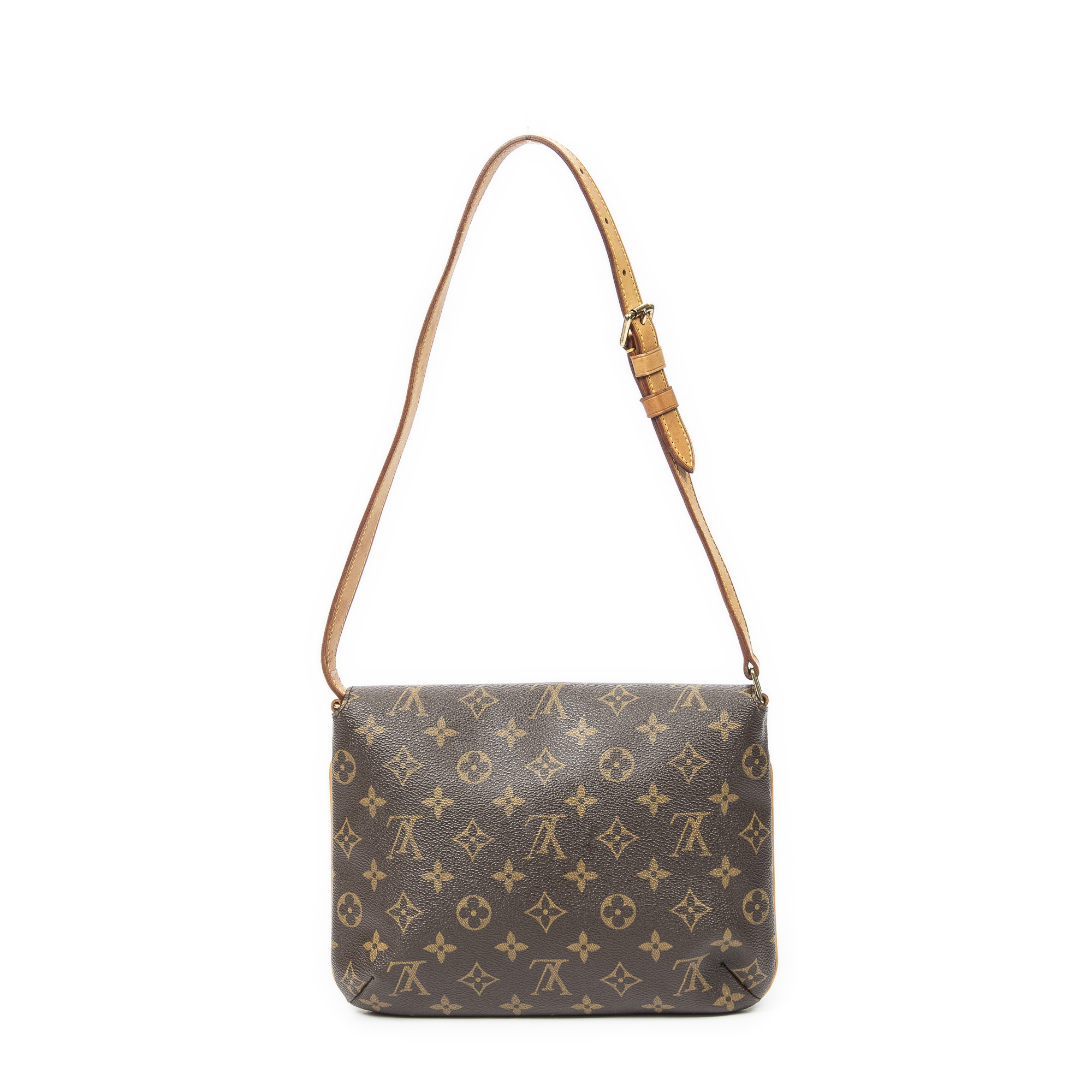 Louis Vuitton Sac à bandoulière Musette Tango en Marron et Laiton doré. Le produit est en Très Bon état (AB).