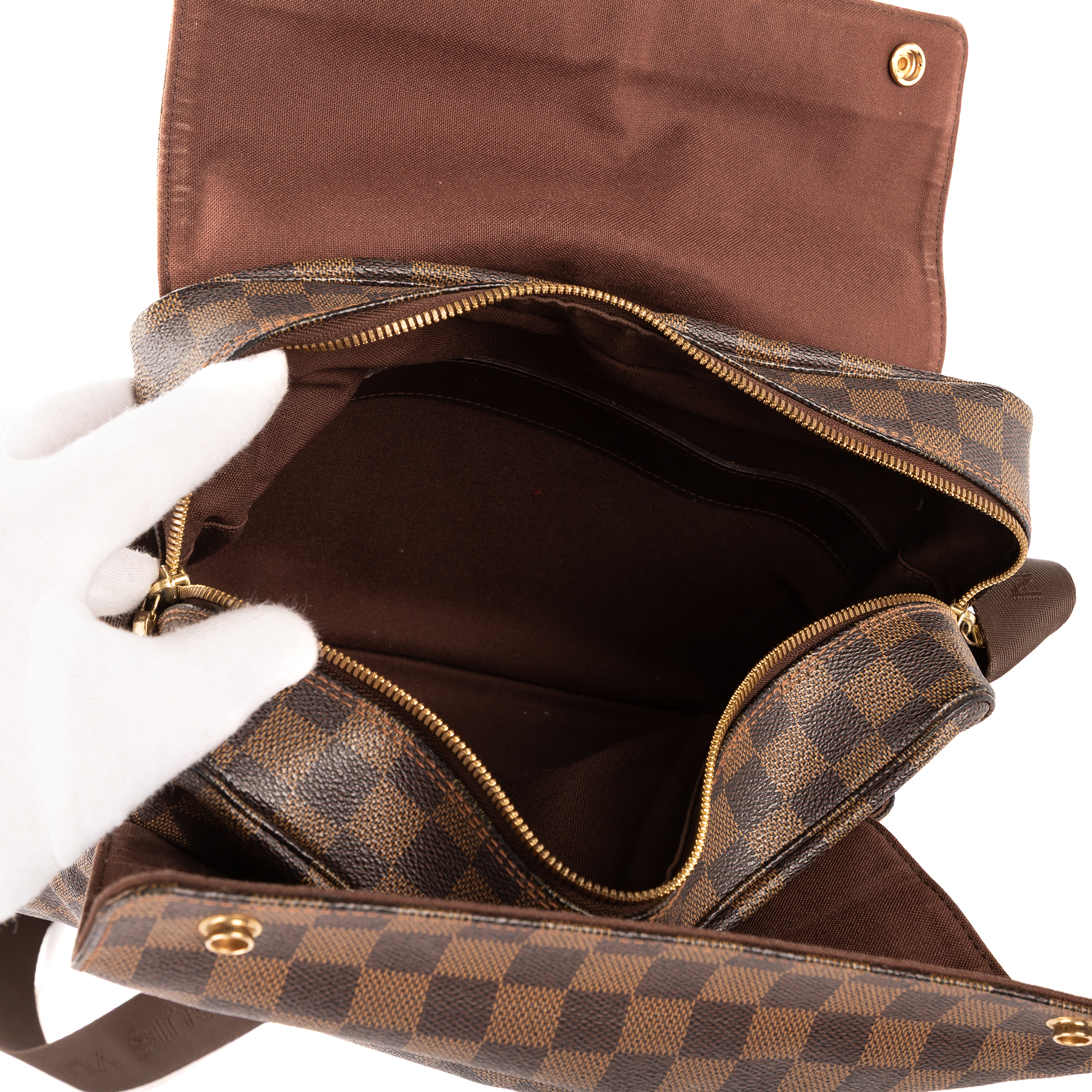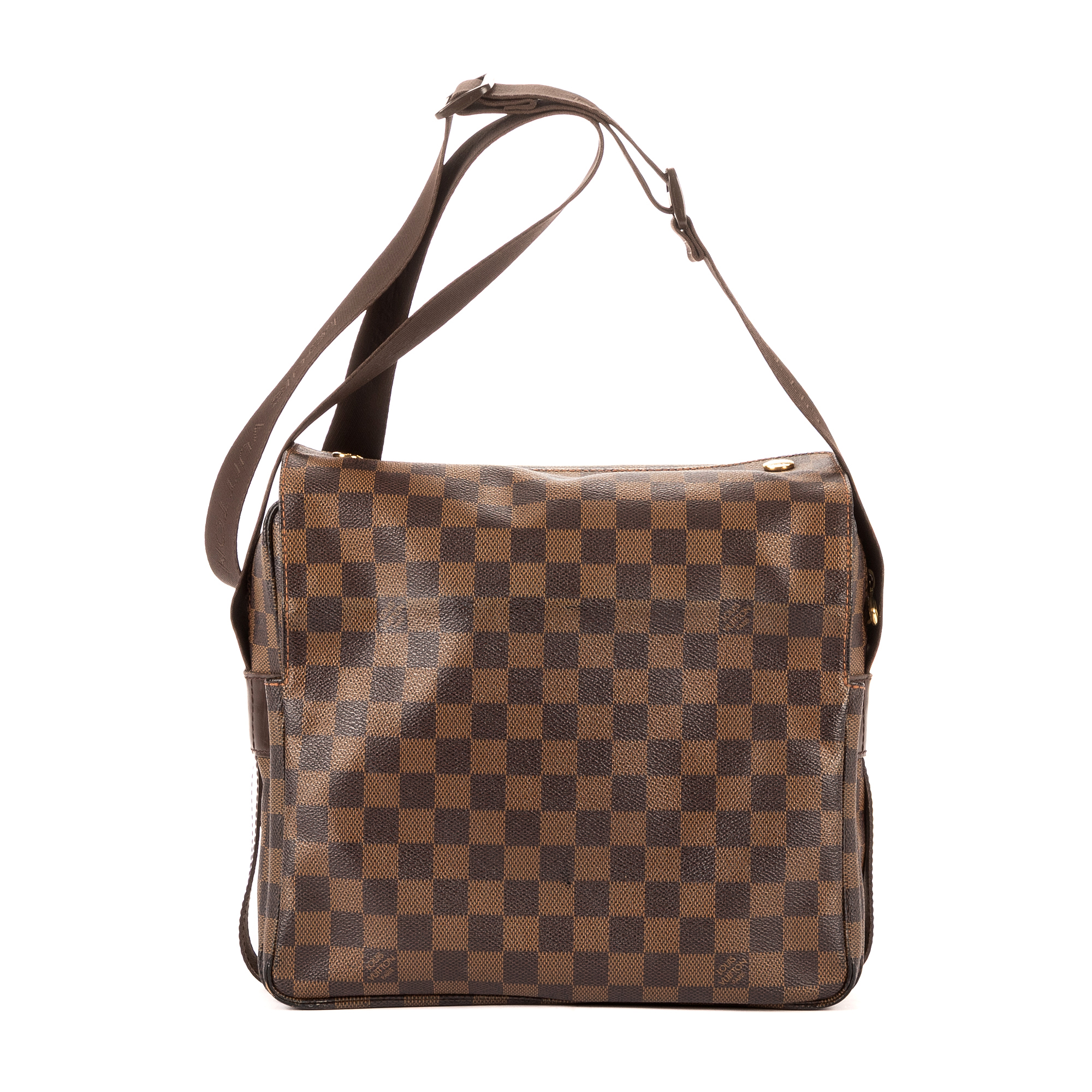 Louis Vuitton Sac à bandoulière Naviglio en Marron foncé et Cuivre d’Or. Le produit est en Excellent état (A).