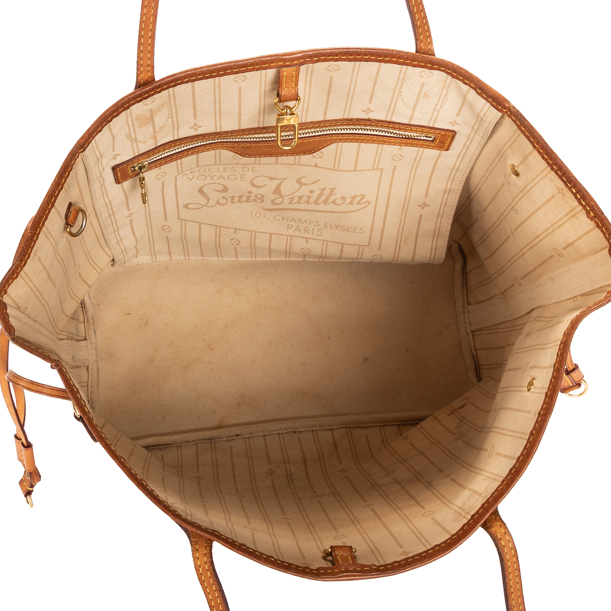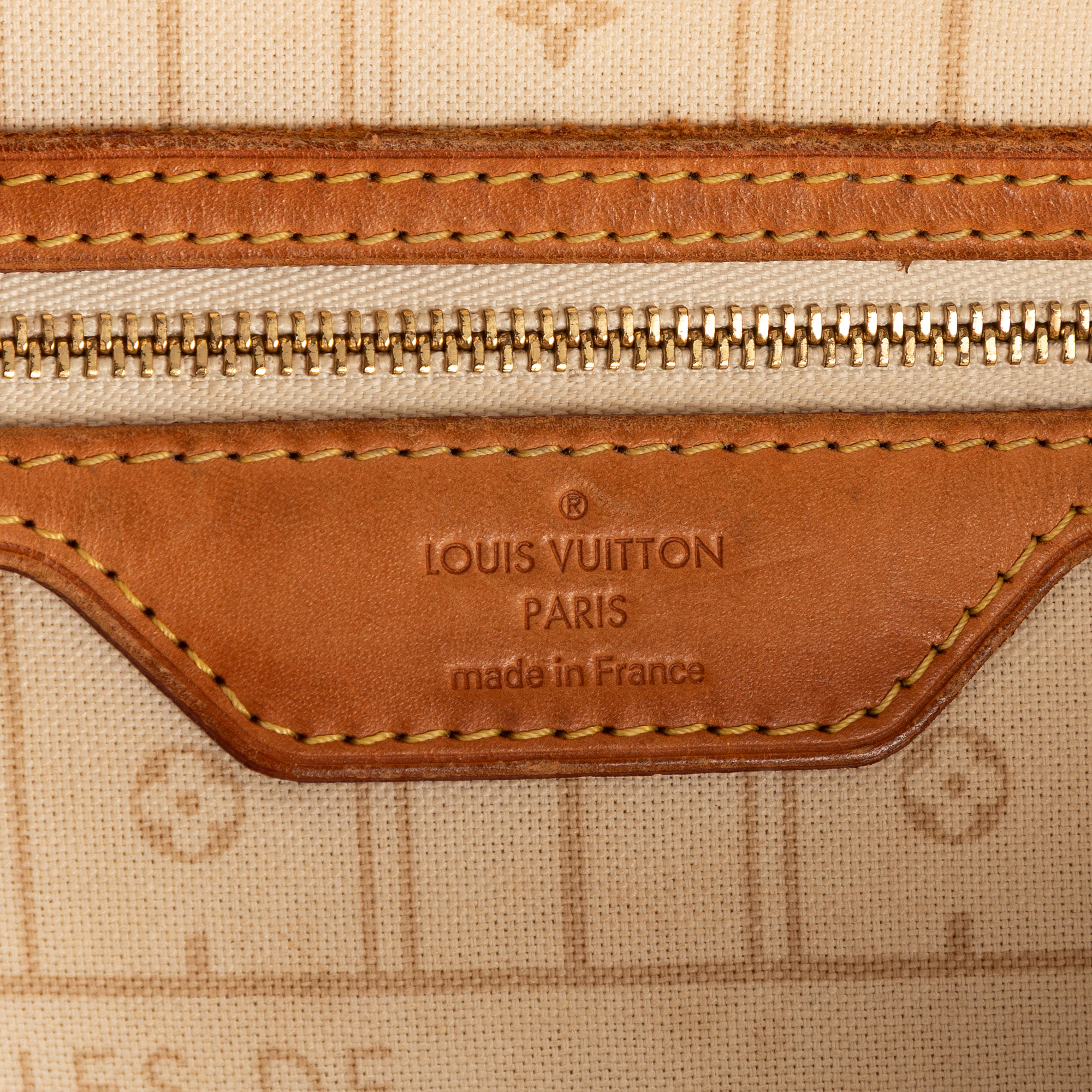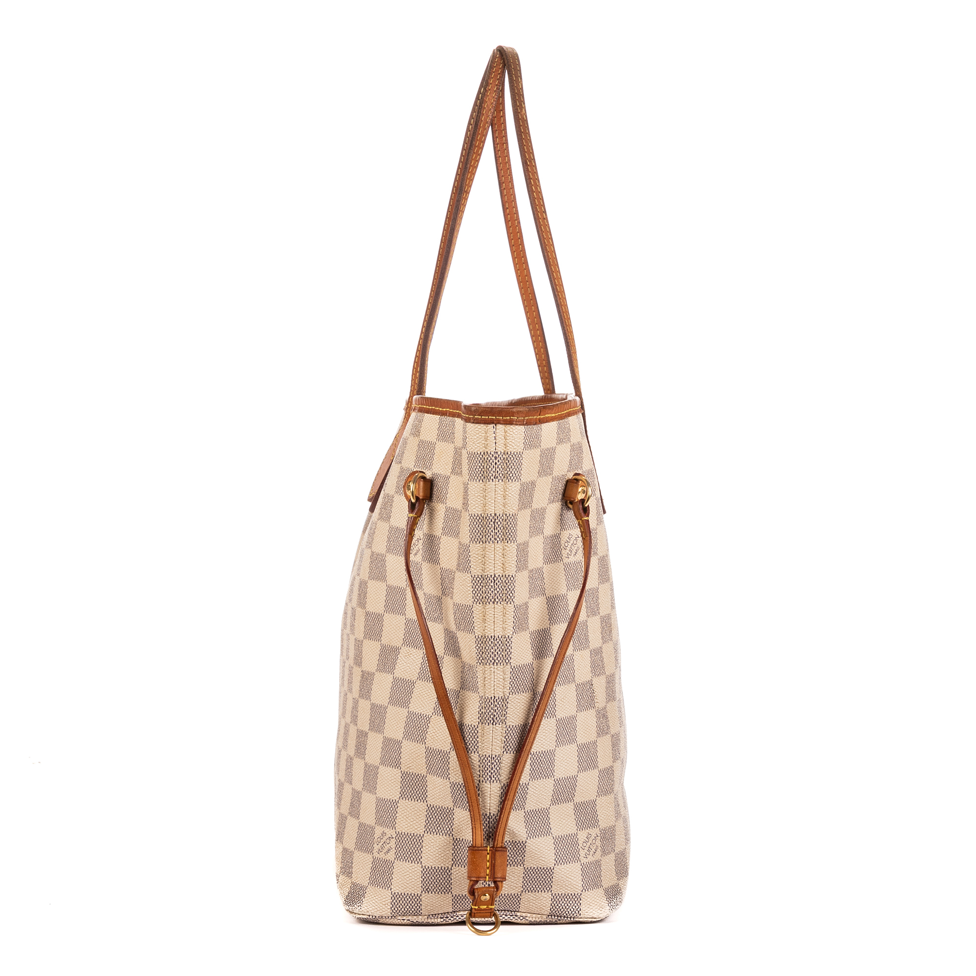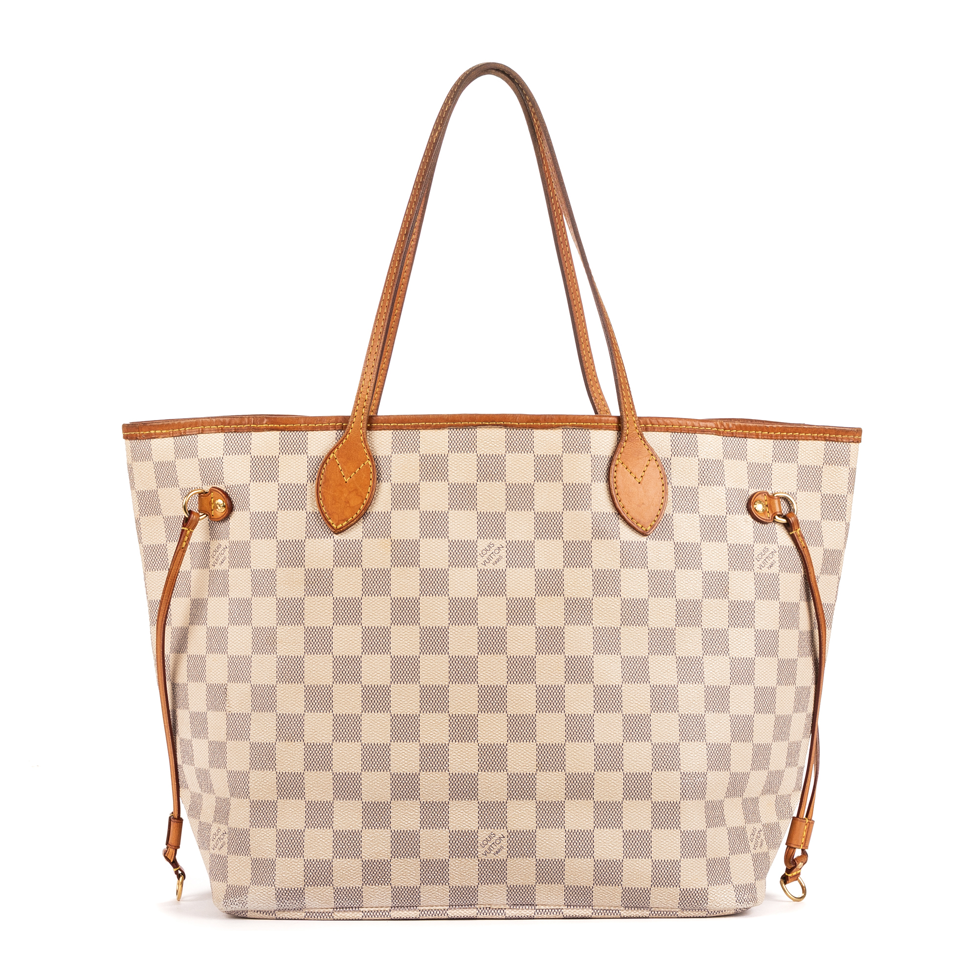 Louis Vuitton Sac à bandoulière Neverfull MM en Blanc et Laiton doré. Le produit est en Très Bon état (AB).