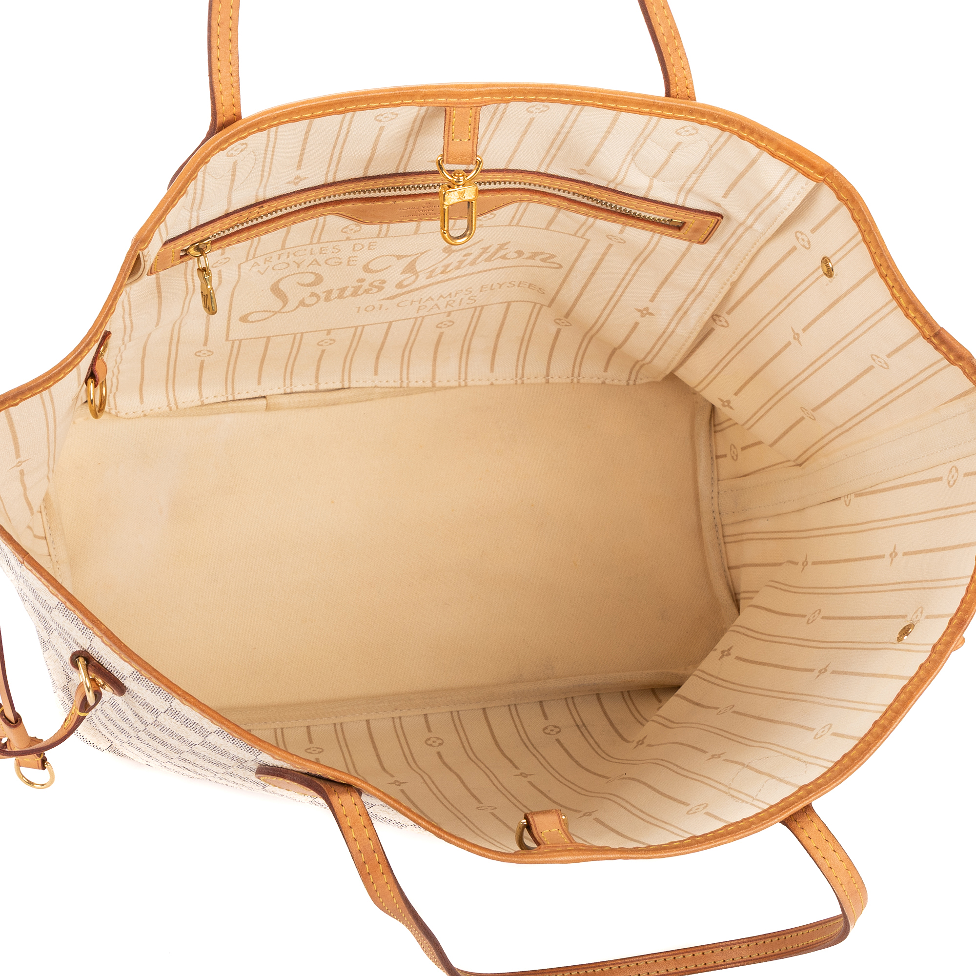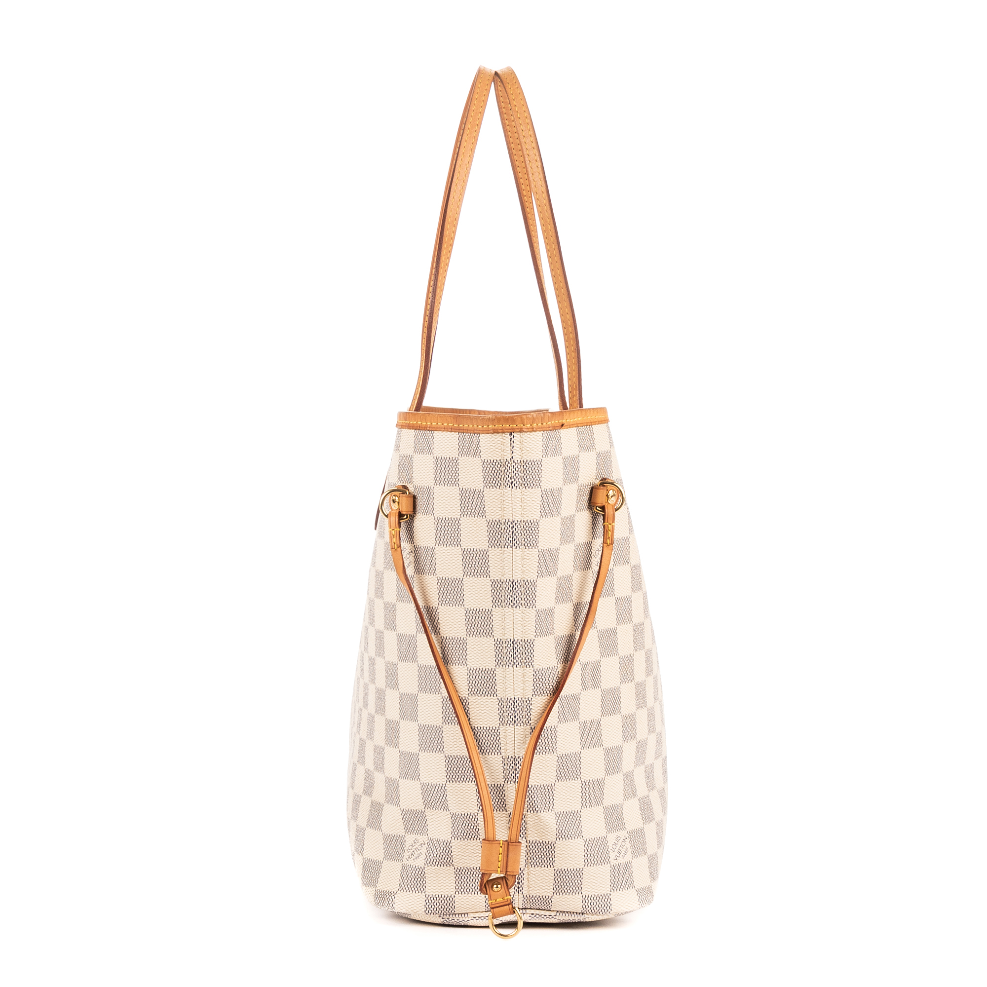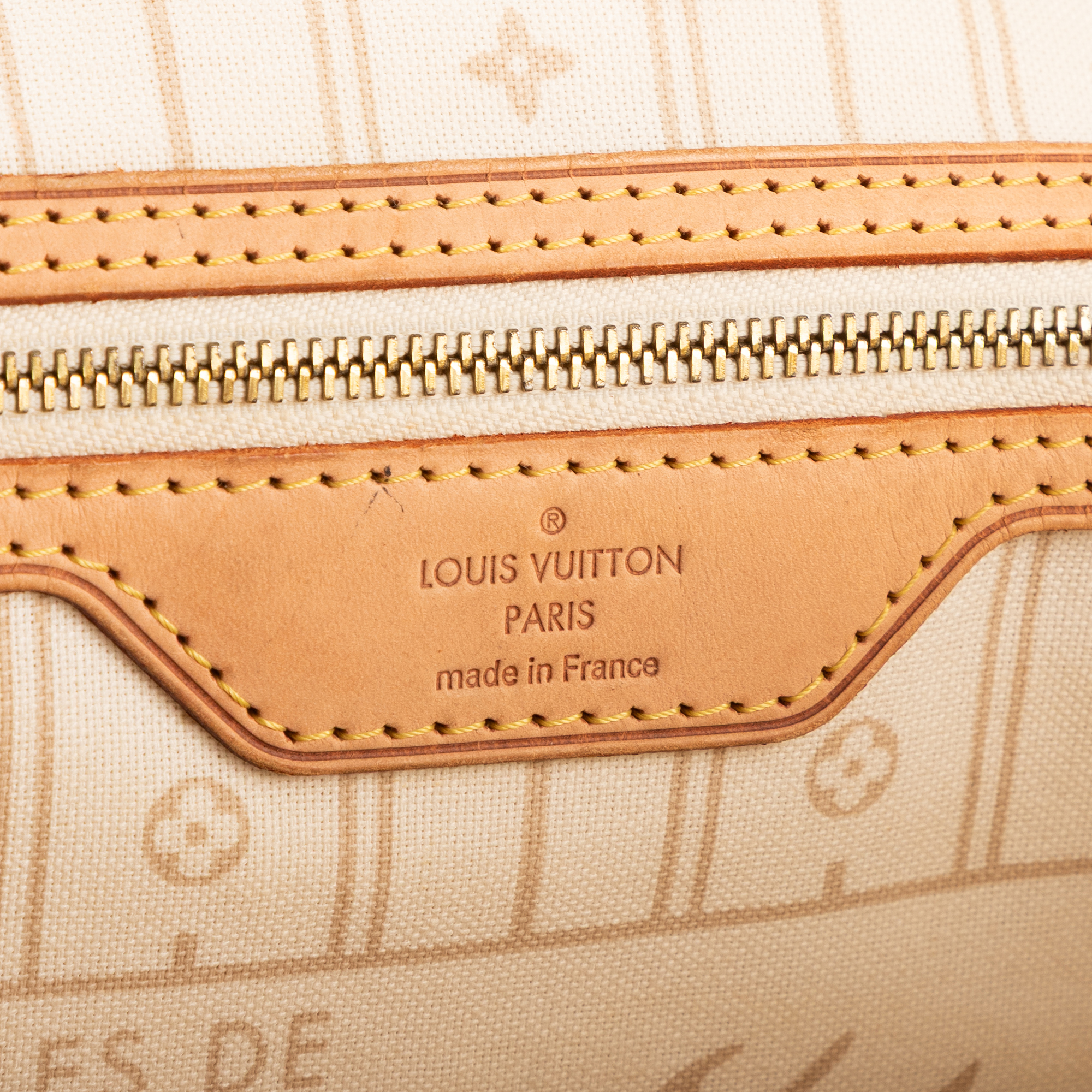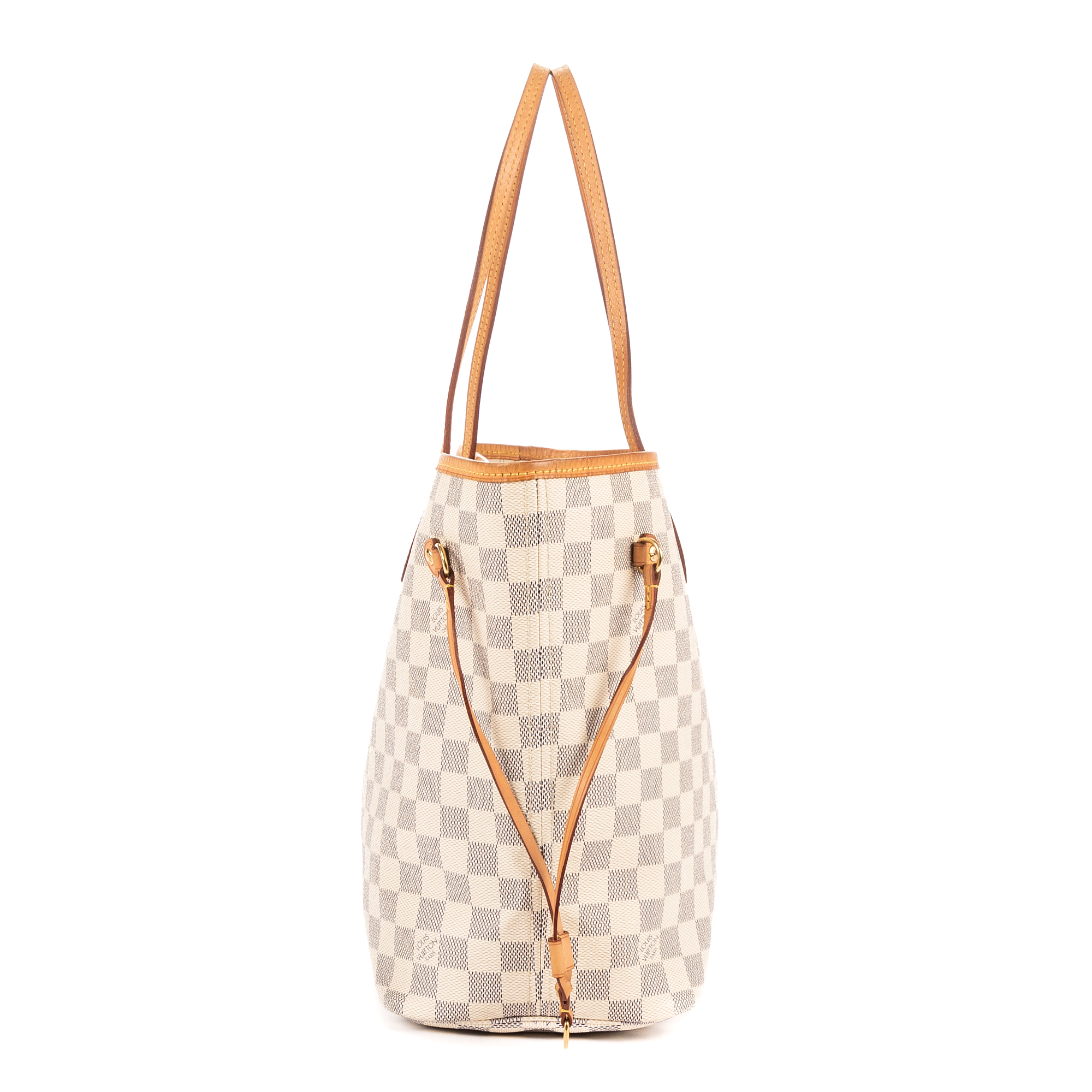 Louis Vuitton Sac à bandoulière Neverfull MM en White et Cuivre d’Or. Le produit est en Excellent état (A).