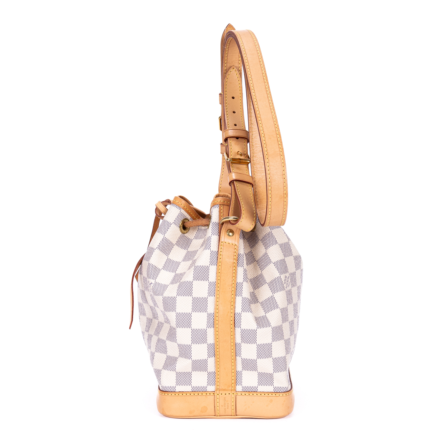 Louis Vuitton Sac à bandoulière Noe BB en Ivory et Cuivre d’Or. Le produit est en Excellent état (A).