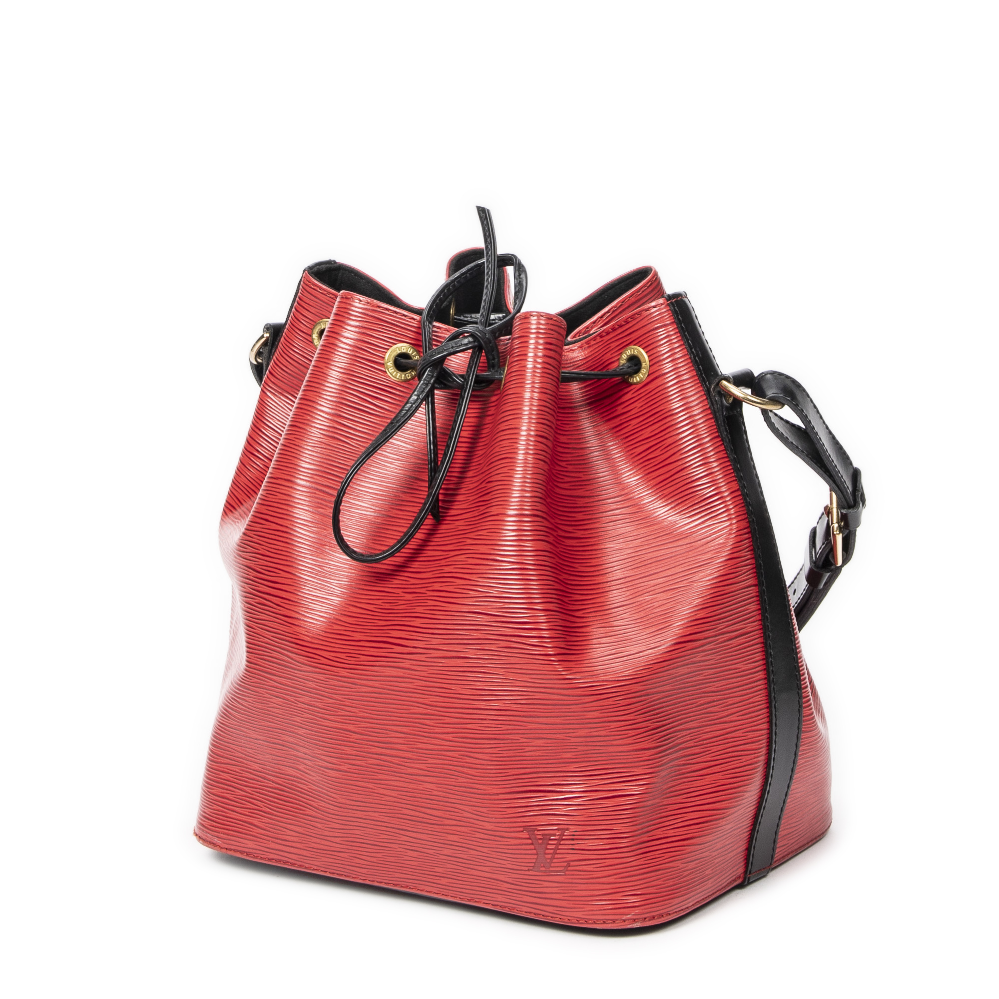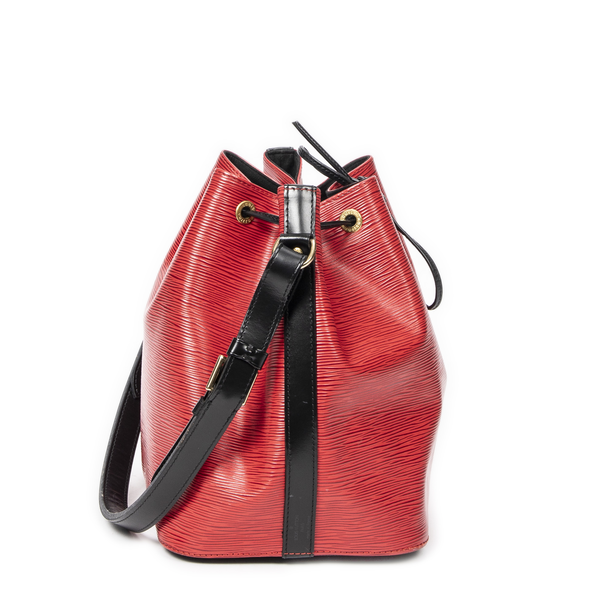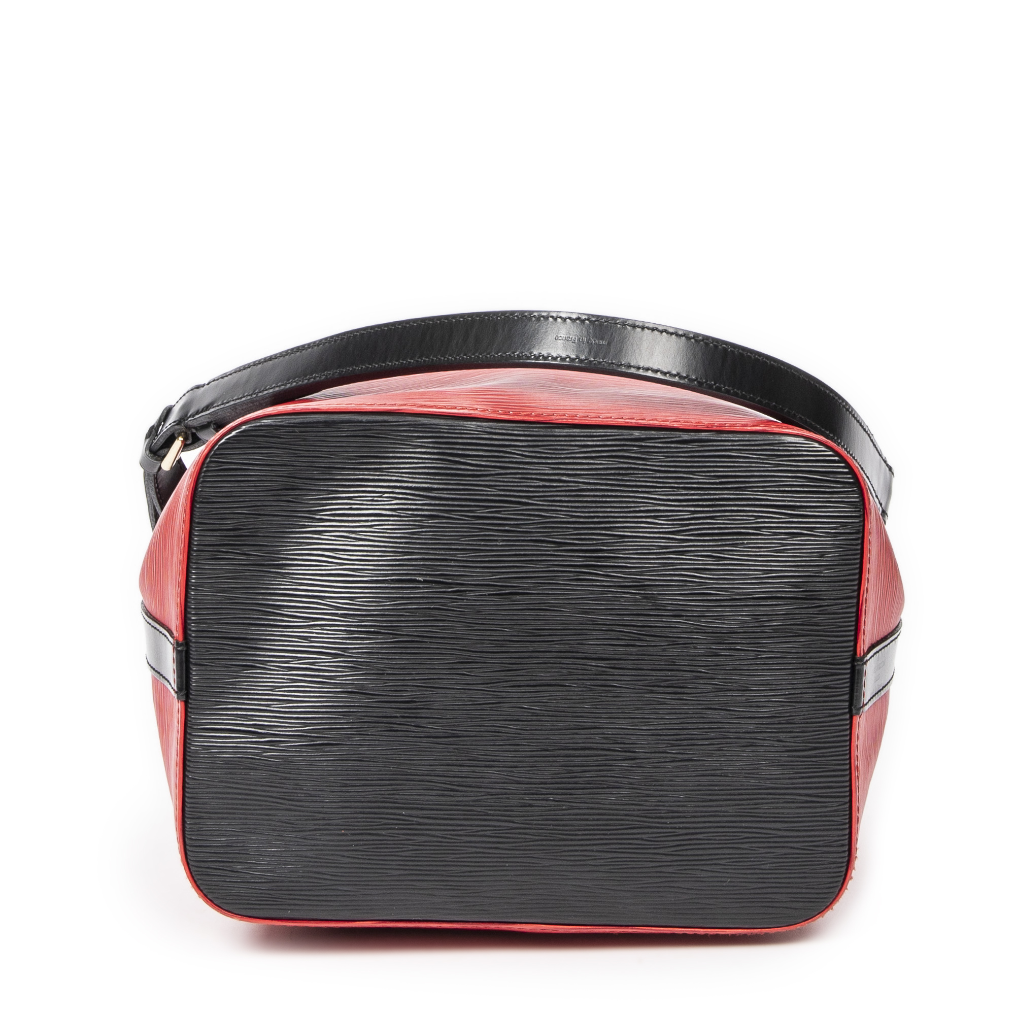 Louis Vuitton Sac à bandoulière Noe Bicolor PM en Rouge/Noir et Laiton doré. Le produit est en Excellent état (A).