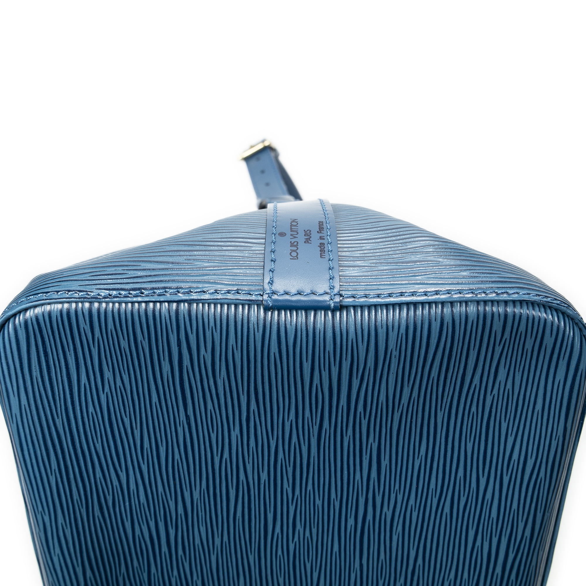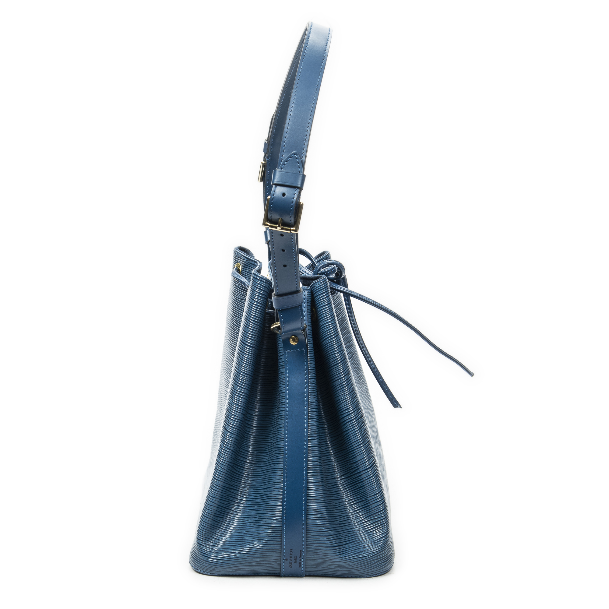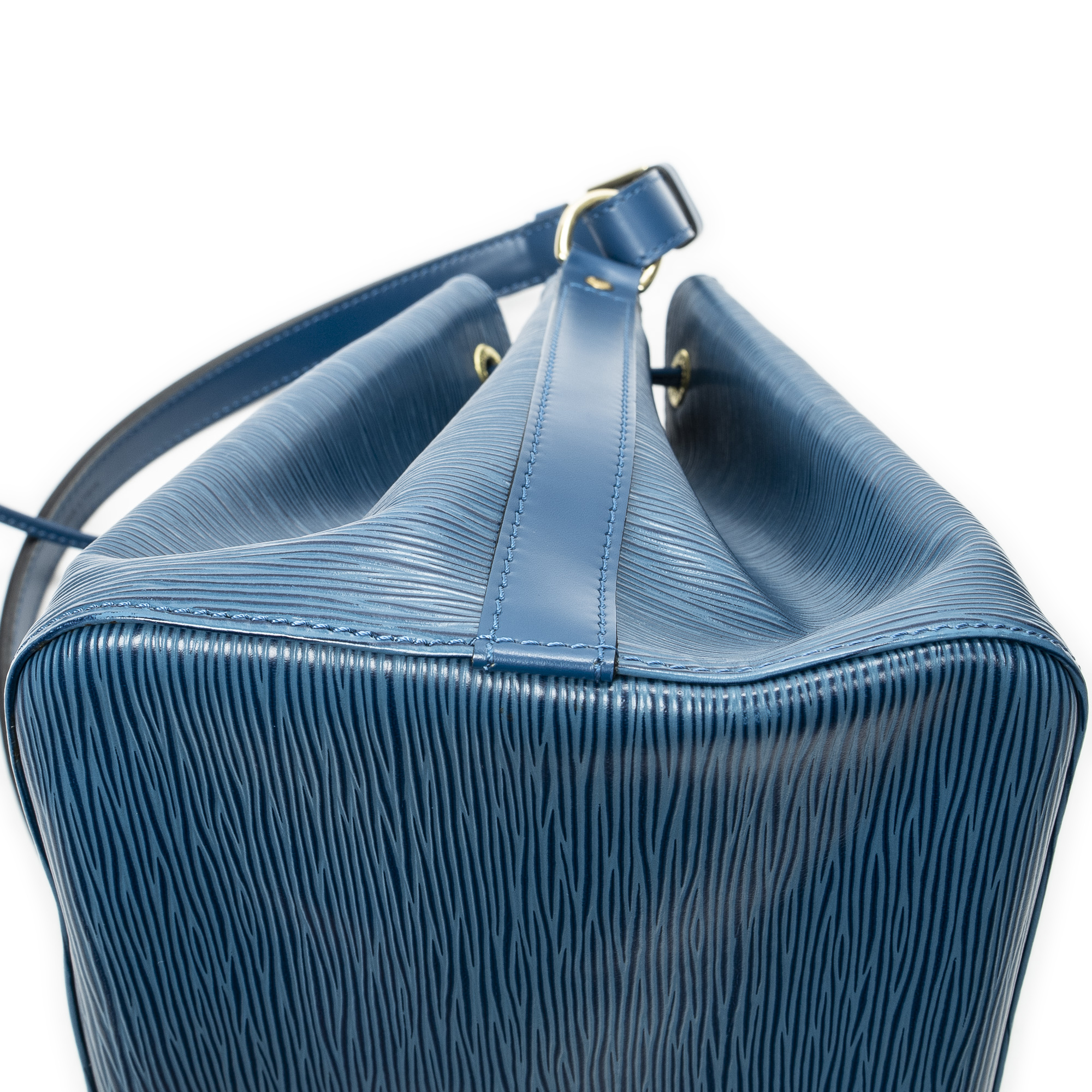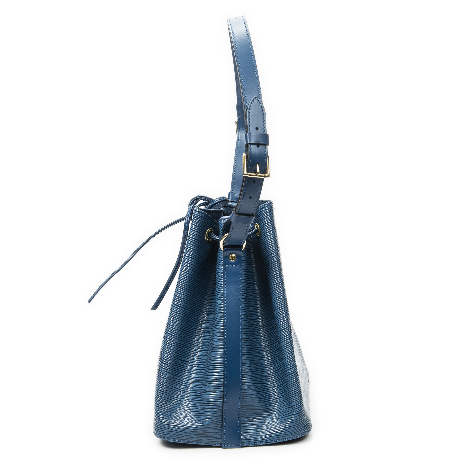 Louis Vuitton sac à bandoulière Noe PM en Blue et laiton doré. Le produit est en Excellent état (A).