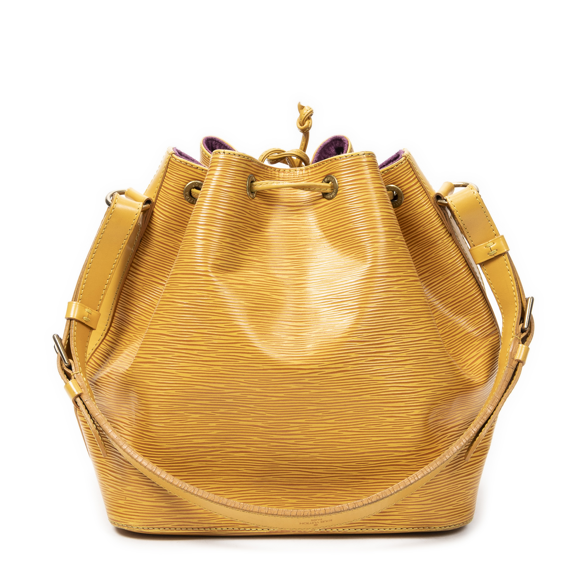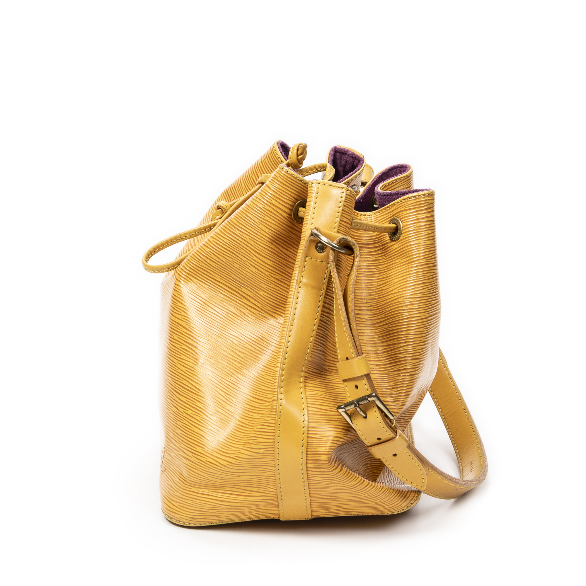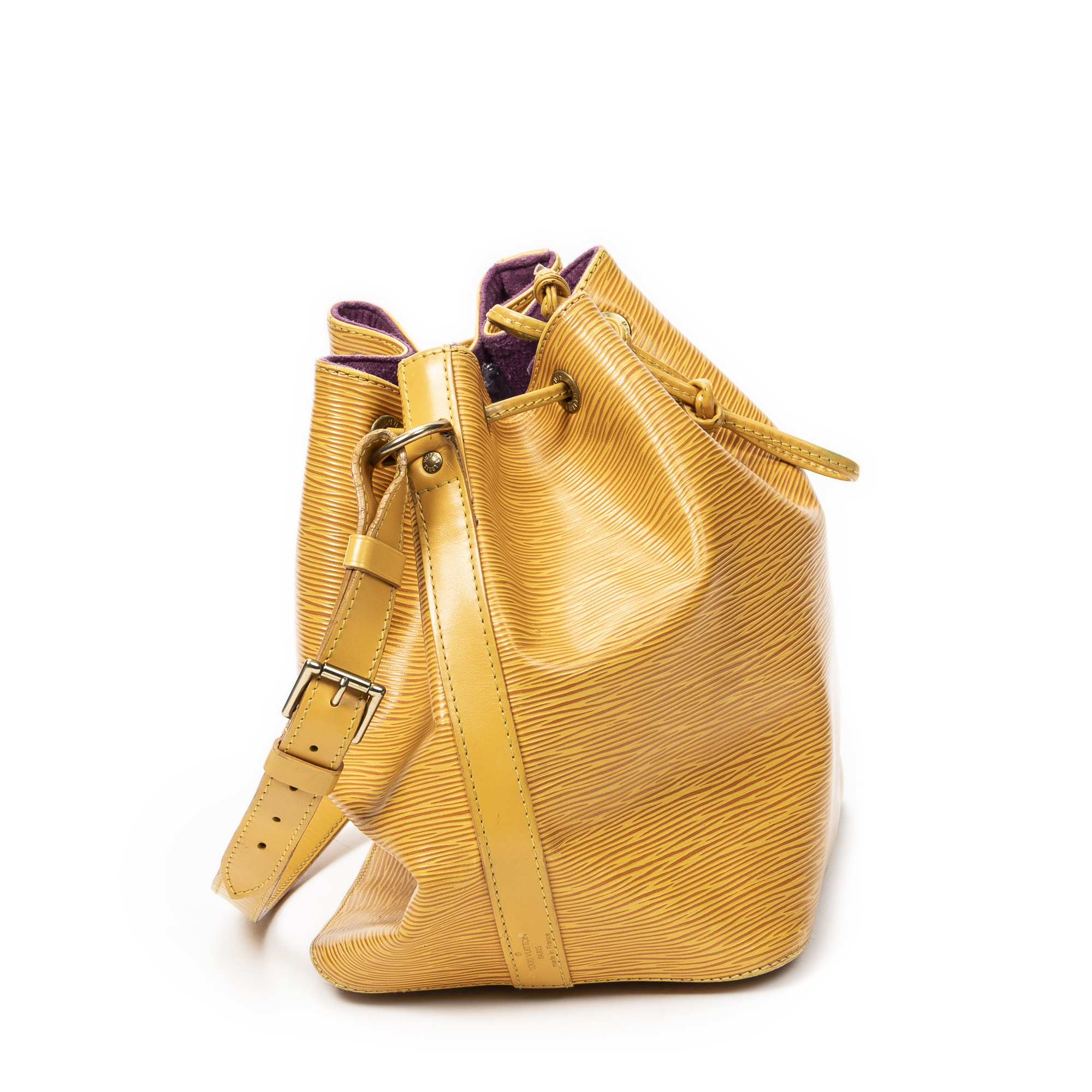 Louis Vuitton Sac à bandoulière Noe PM en Jaune et Cuivre d’Or. Le produit est en Très Bon état (AB).