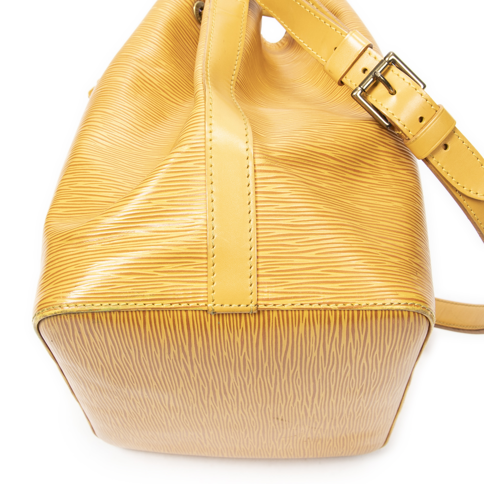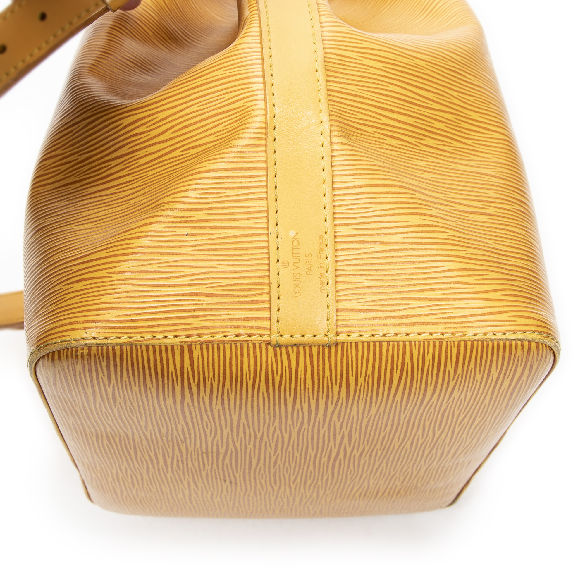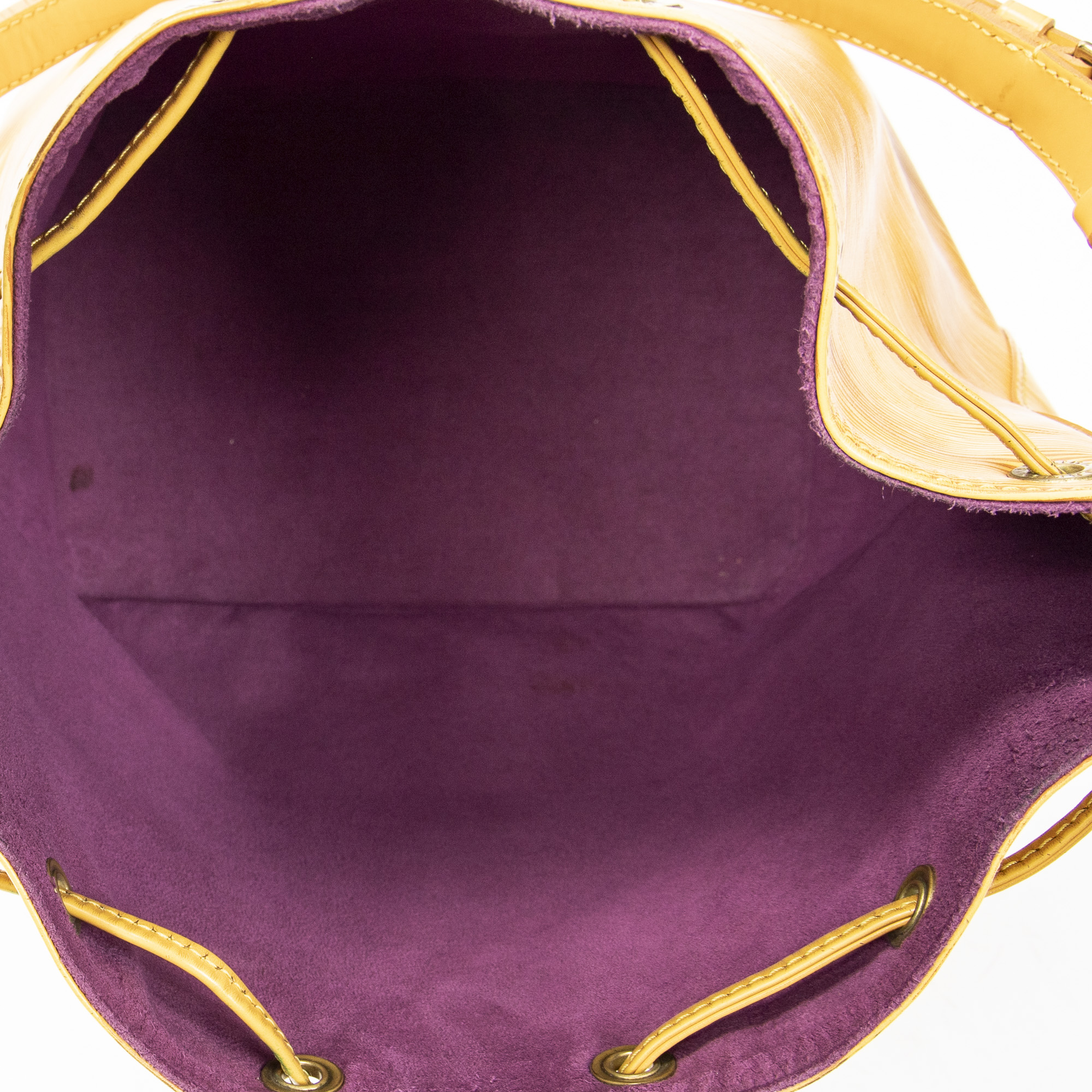 Louis Vuitton Sac à bandoulière Noe PM en Jaune et Cuivre d’Or. Le produit est en Très Bon état (AB).