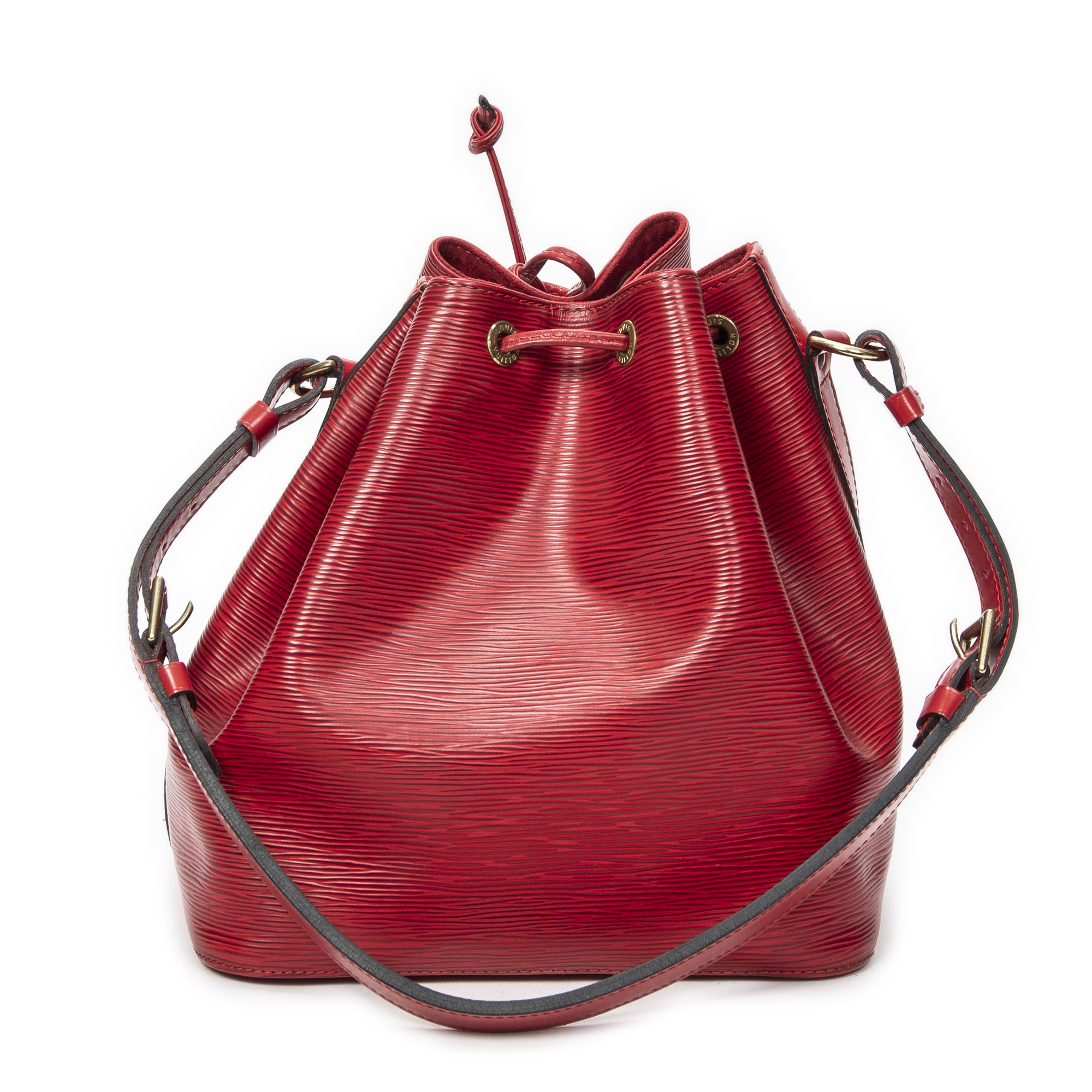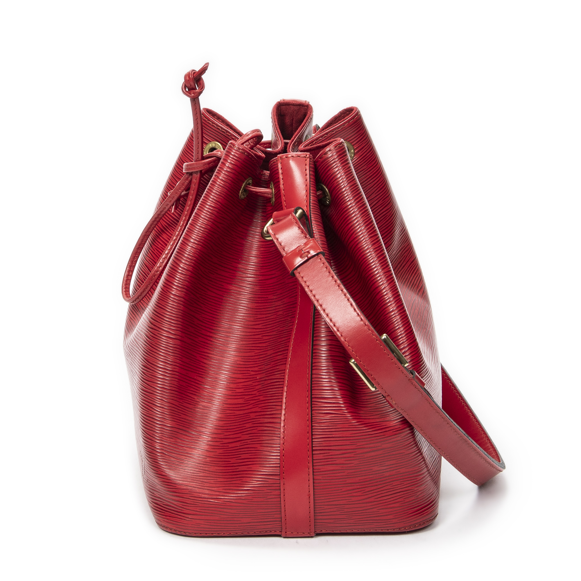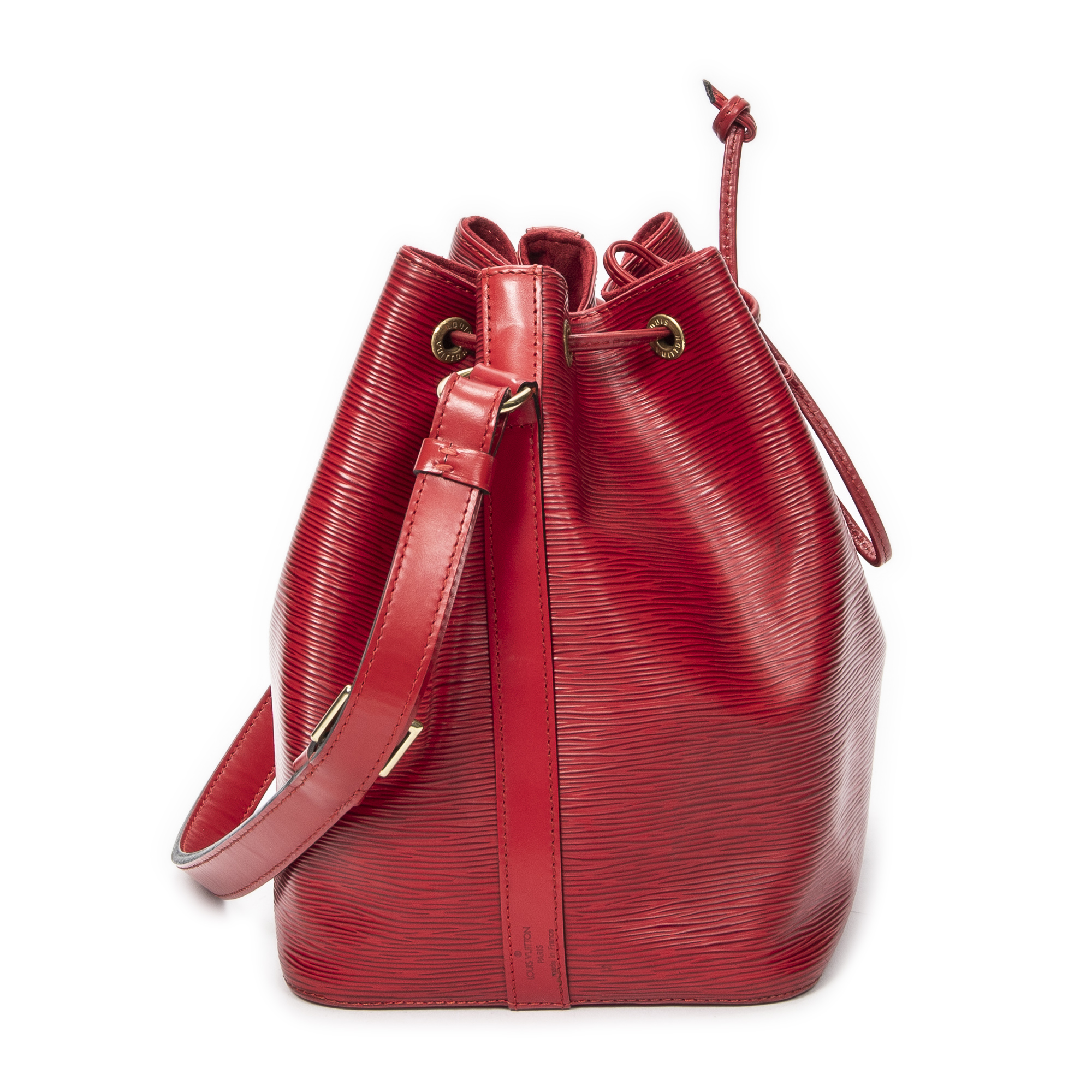 Louis Vuitton Sac à bandoulière Noe PM en Red et Cuivre d’Or. Le produit est en Excellent état (A).