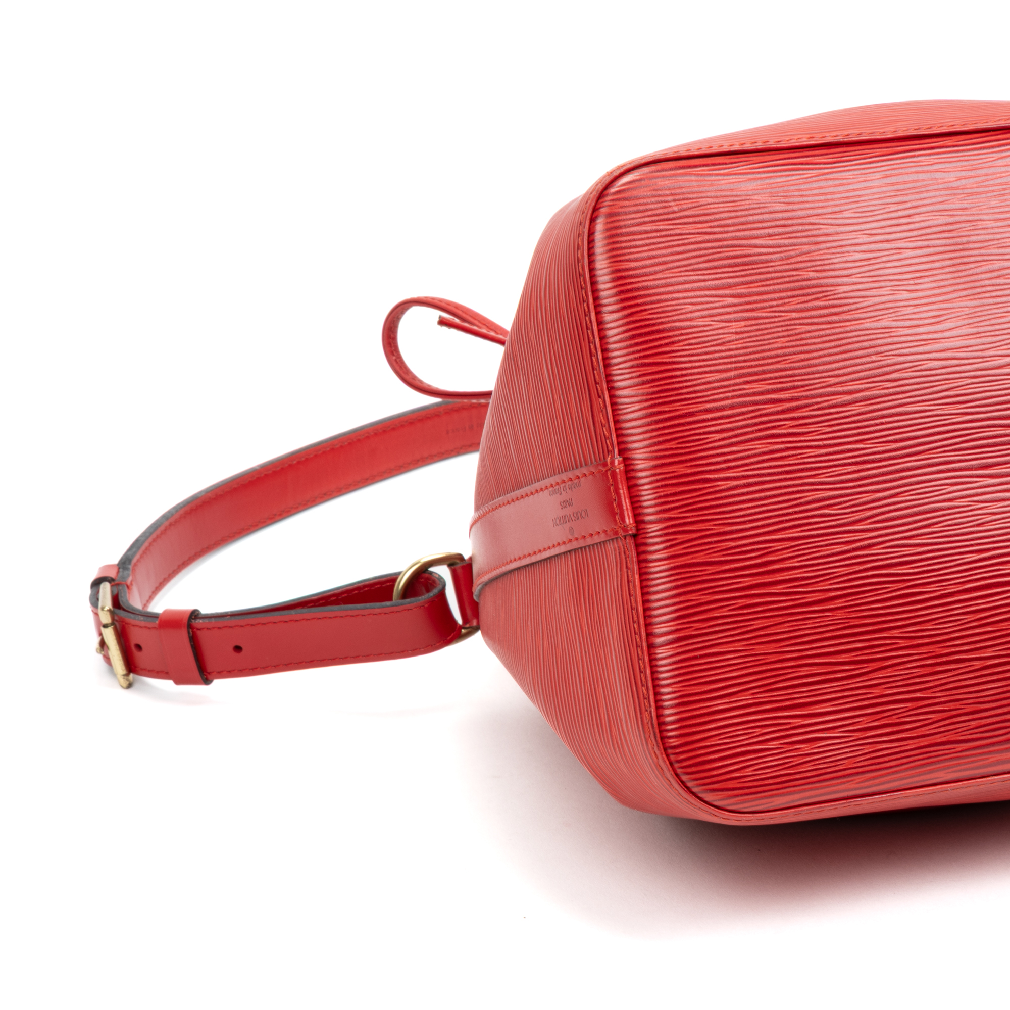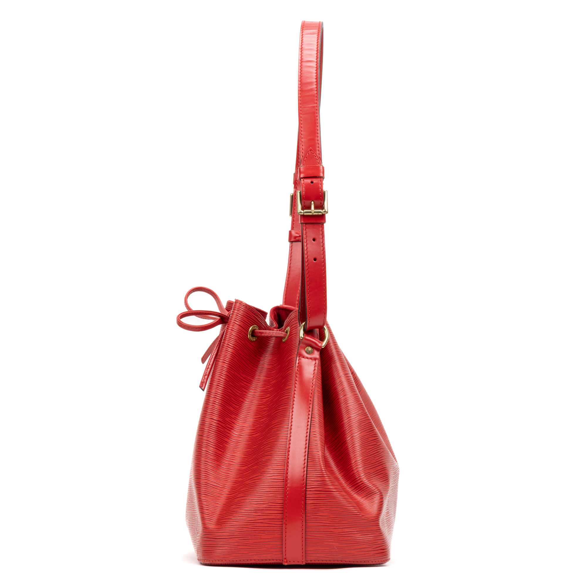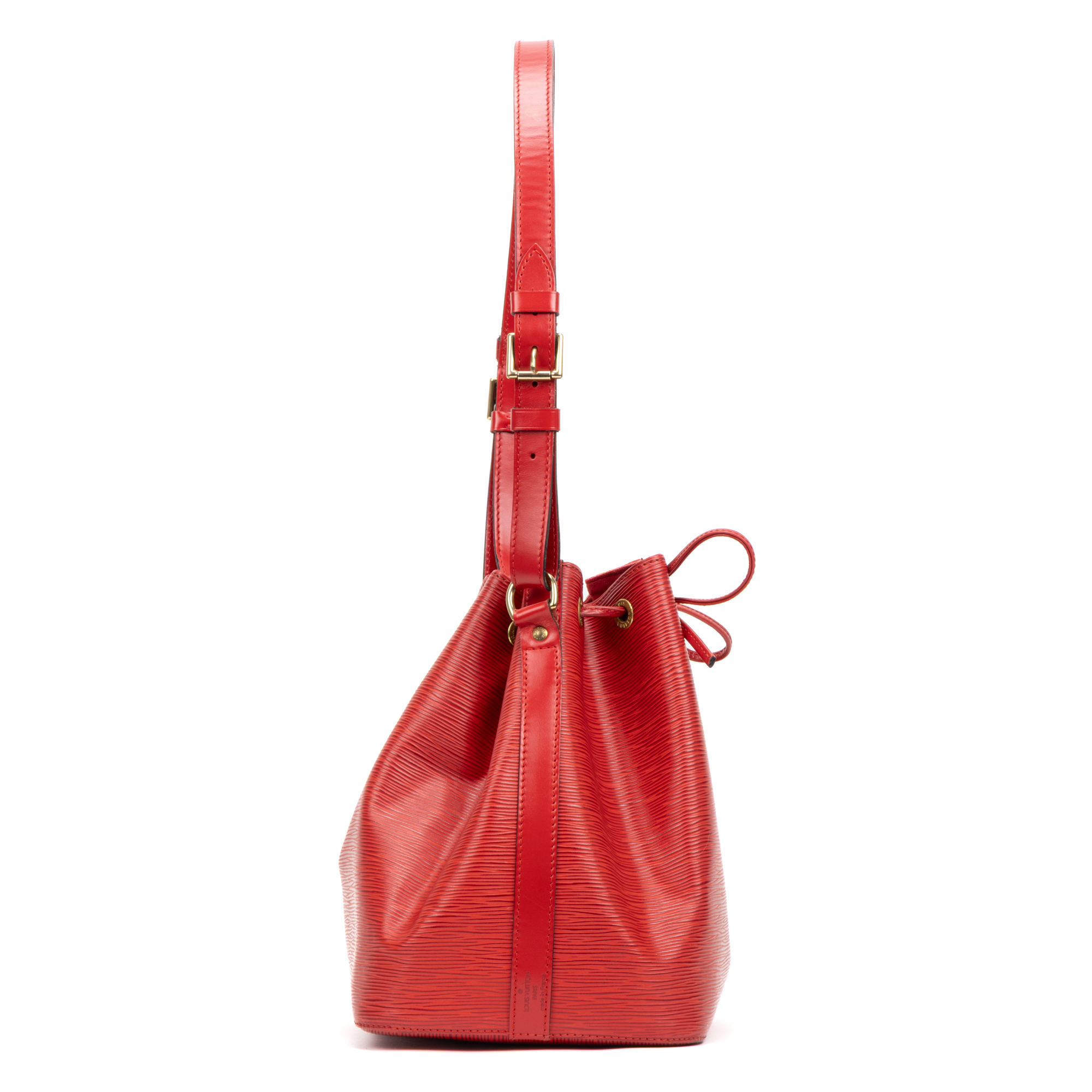 Louis Vuitton Sac à bandoulière Noe PM en Red et Cuivre d’Or. Le produit est en Excellent état (A).