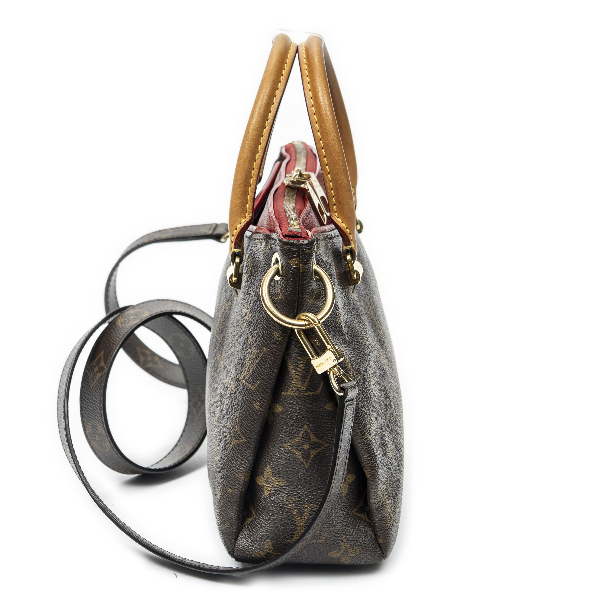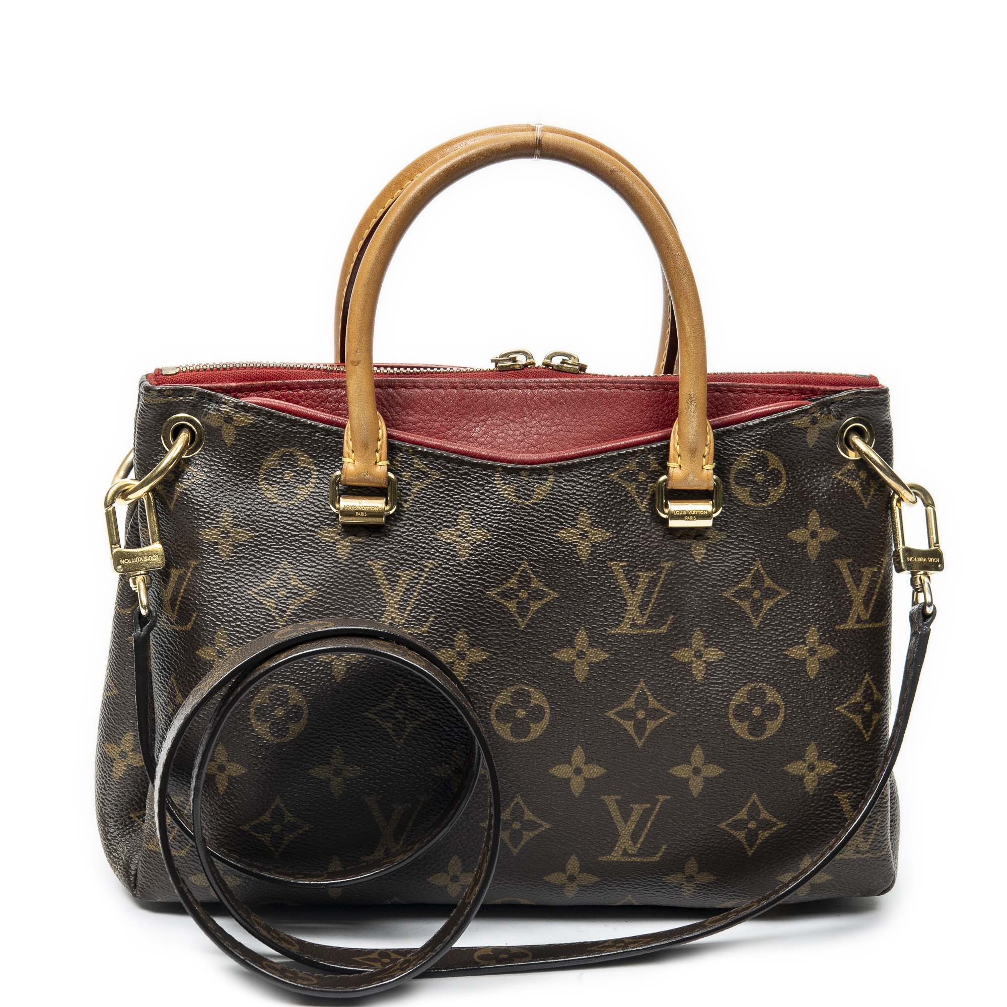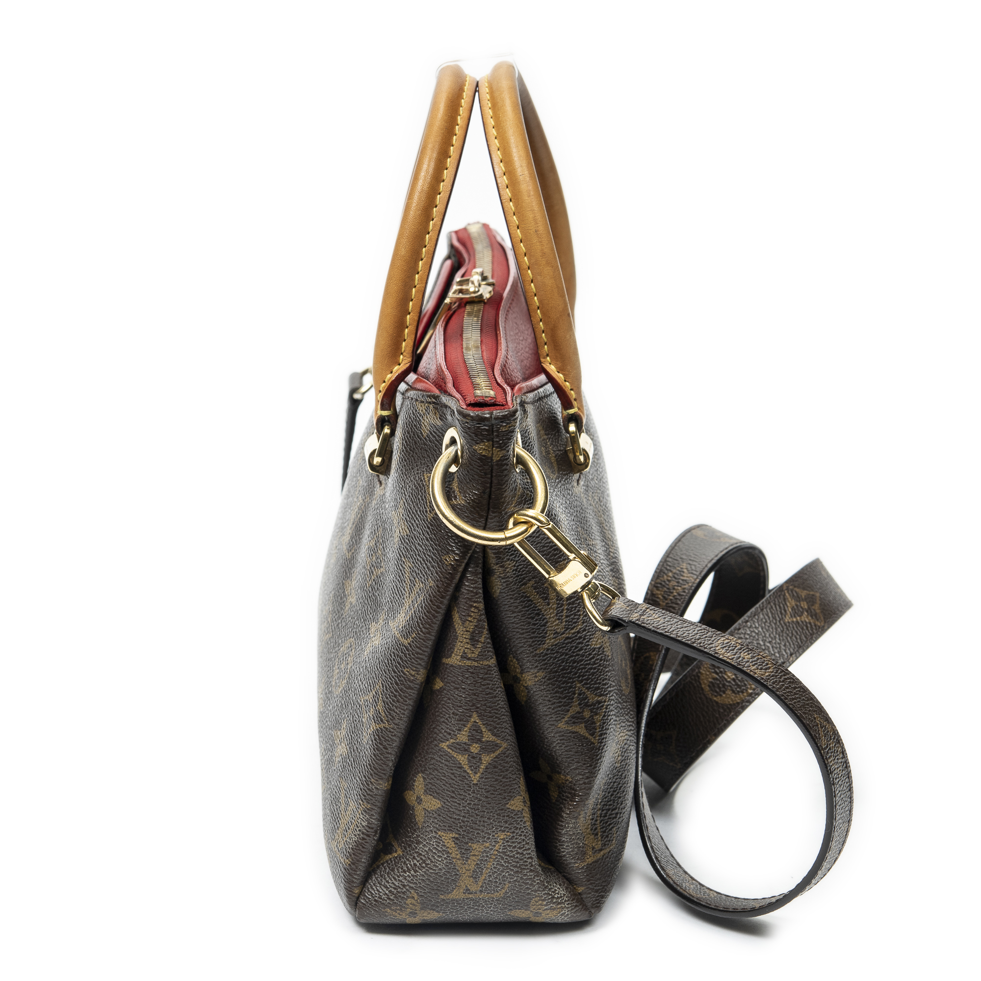 Louis Vuitton Sac à bandoulière Pallas PM en Marron/Rouge et Cuivre d’Or. Le produit est en Très Bon état (AB).