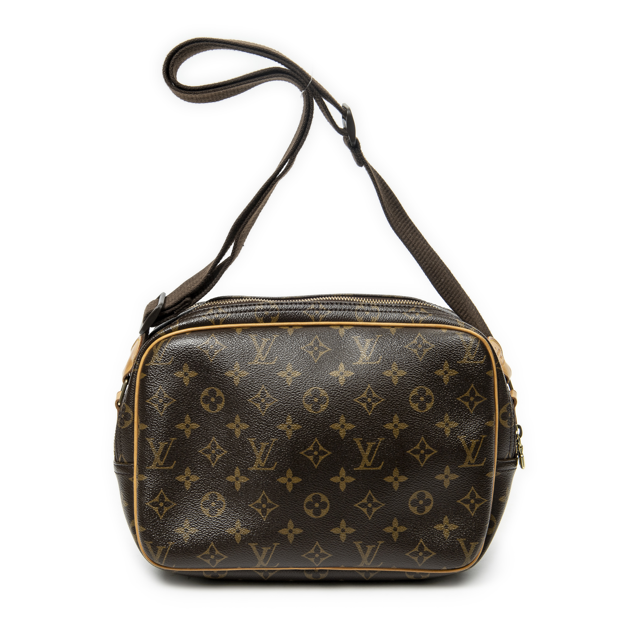 Louis Vuitton sac à bandoulière Reporter PM en brun et laiton doré. Le produit est en Excellent état (A).