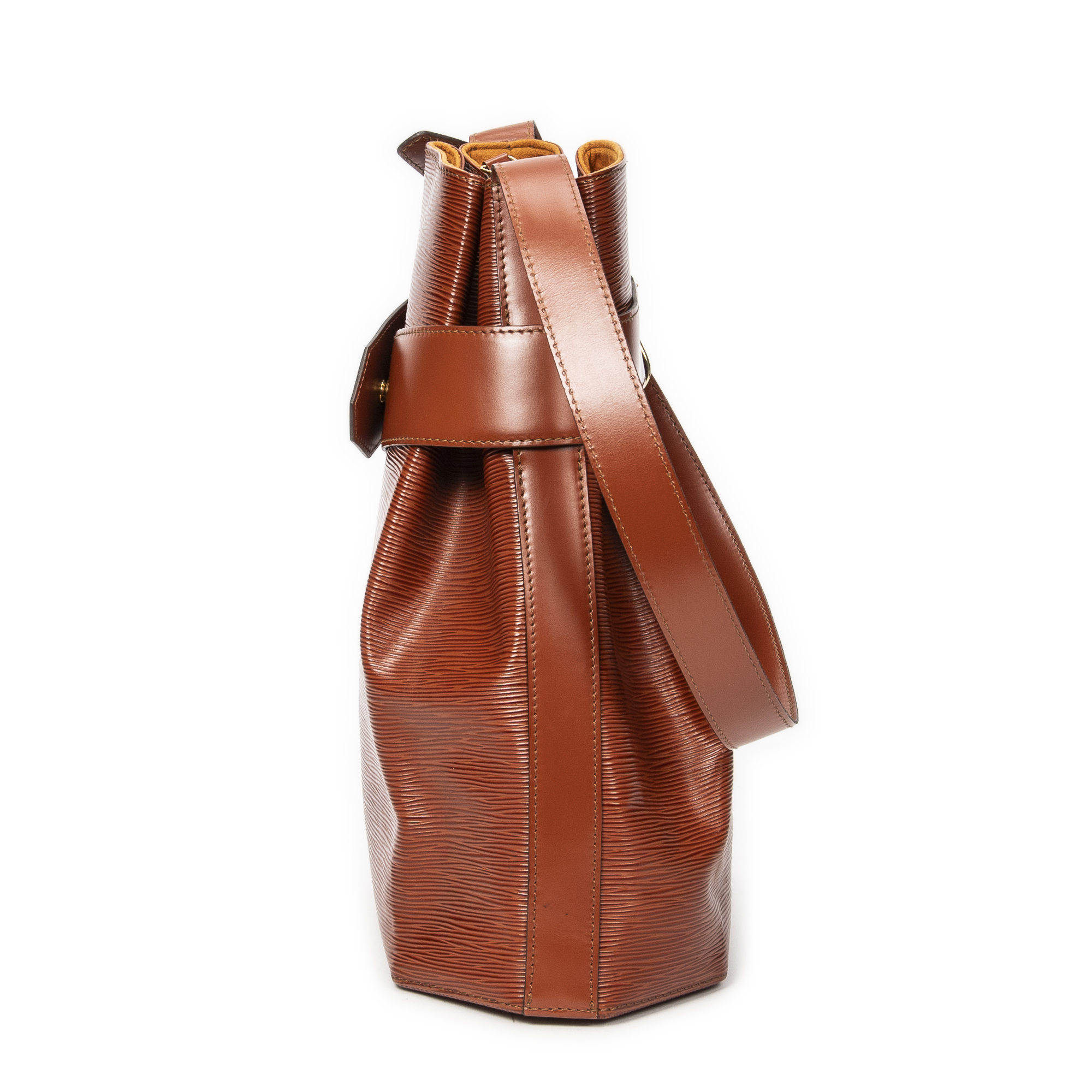 Louis Vuitton Sac à bandoulière Sac D’Epaule GM en Tan et Laiton doré. Le produit est en Excellent état (A).