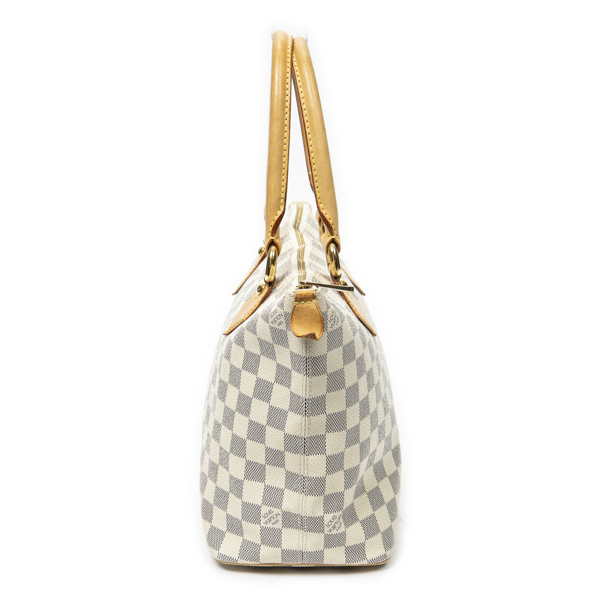 Louis Vuitton Sac à bandoulière Saleya PM en Ivory et Cuivre d’Or. Le produit est en Excellent état (A).