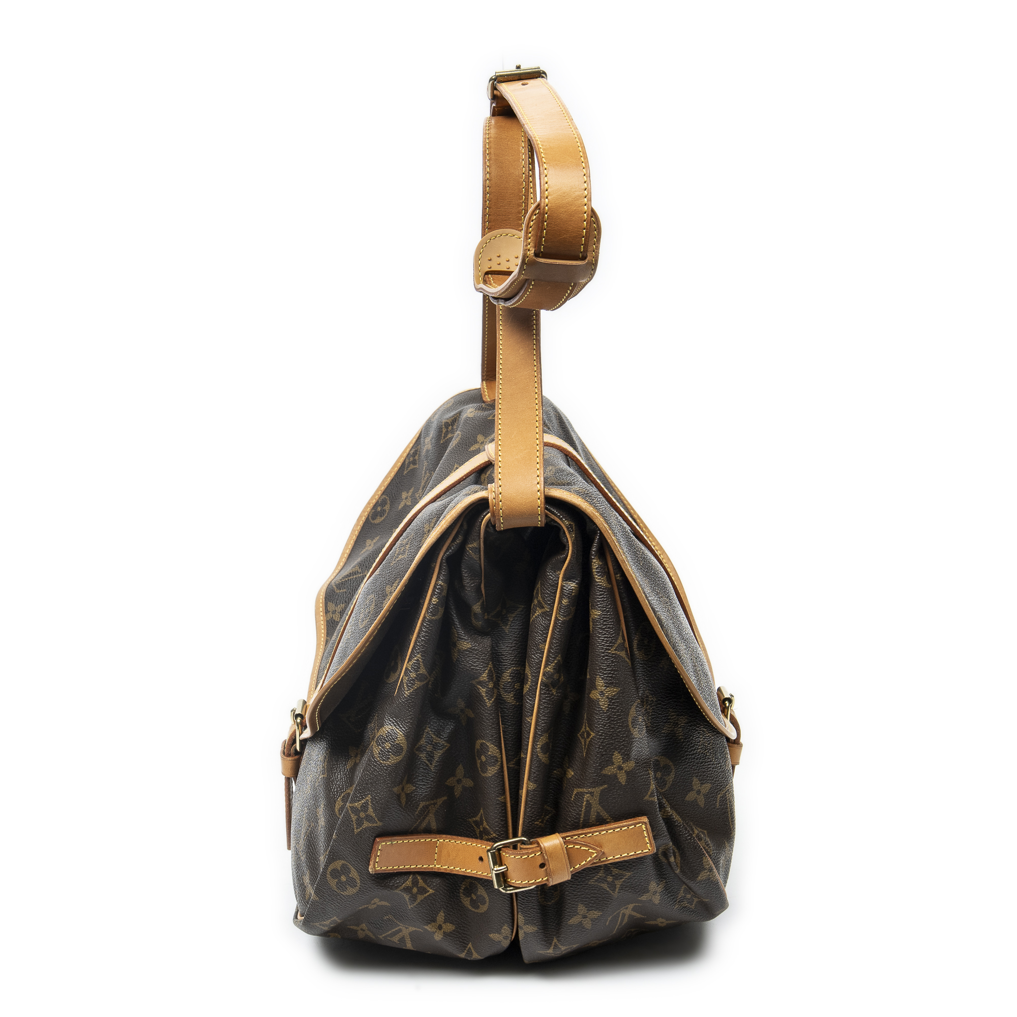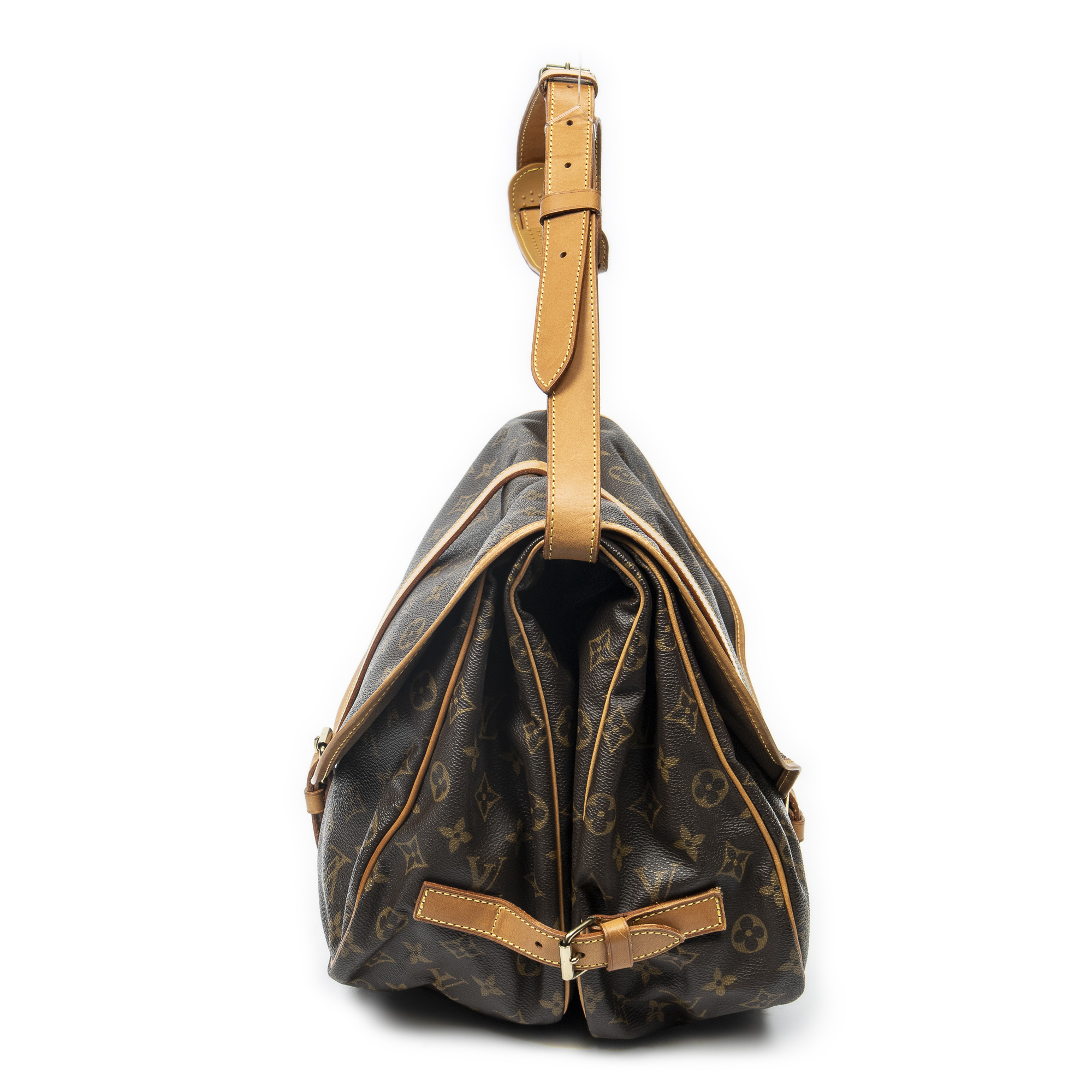 Louis Vuitton Sac à bandoulière Saumur GM en Brown et Cuivre d’Or. Le produit est en Très Bon état (AB).