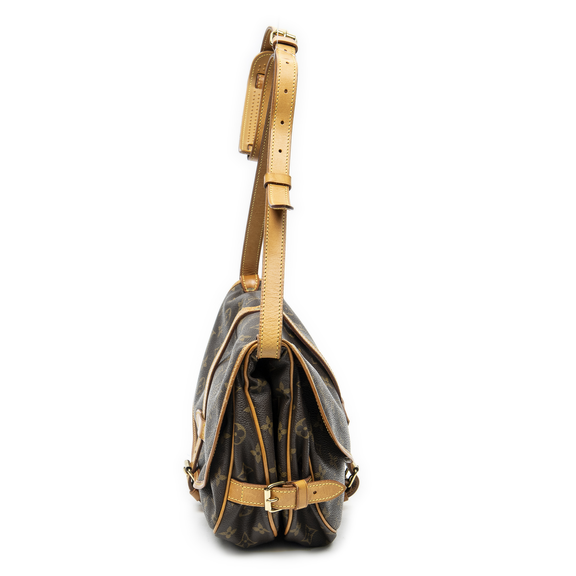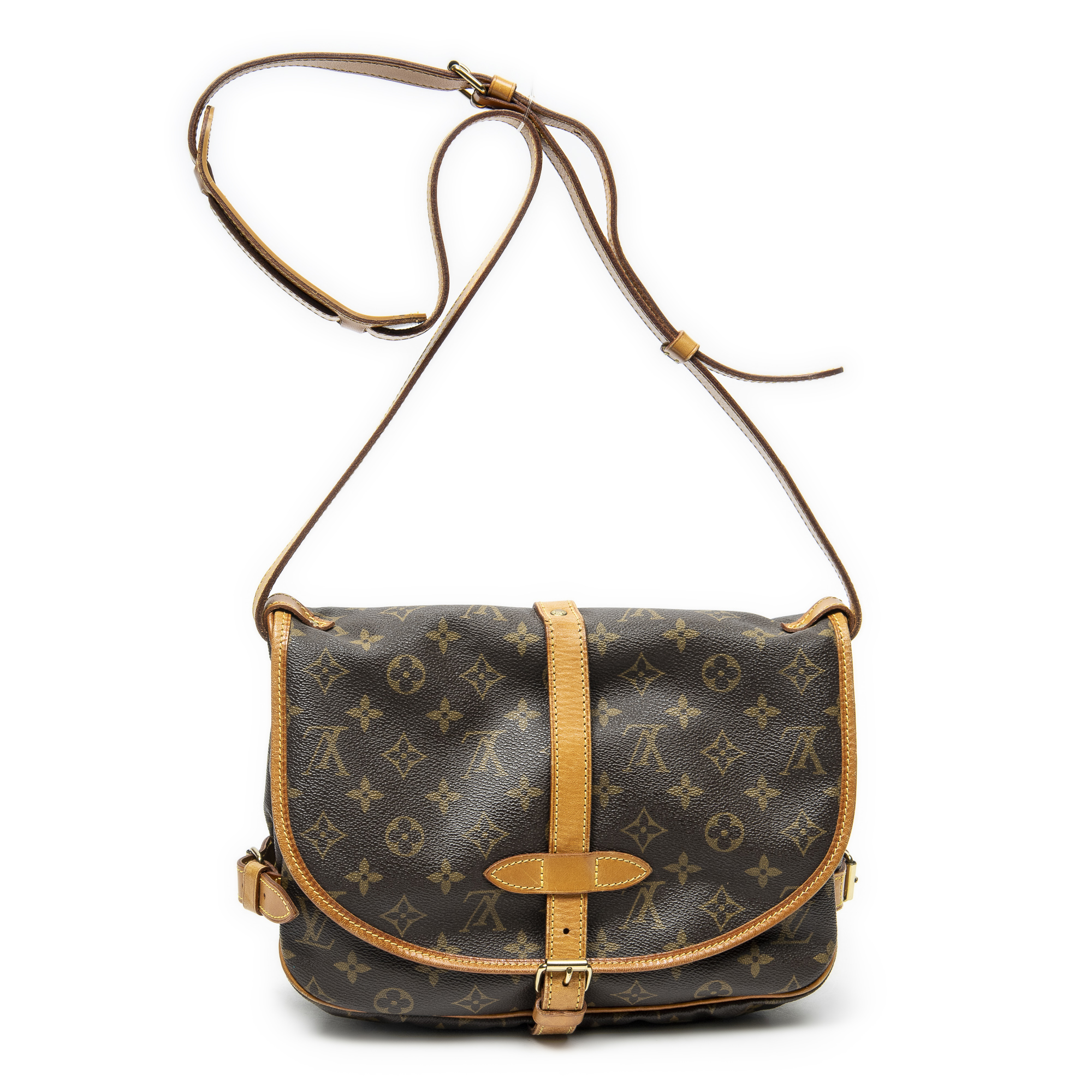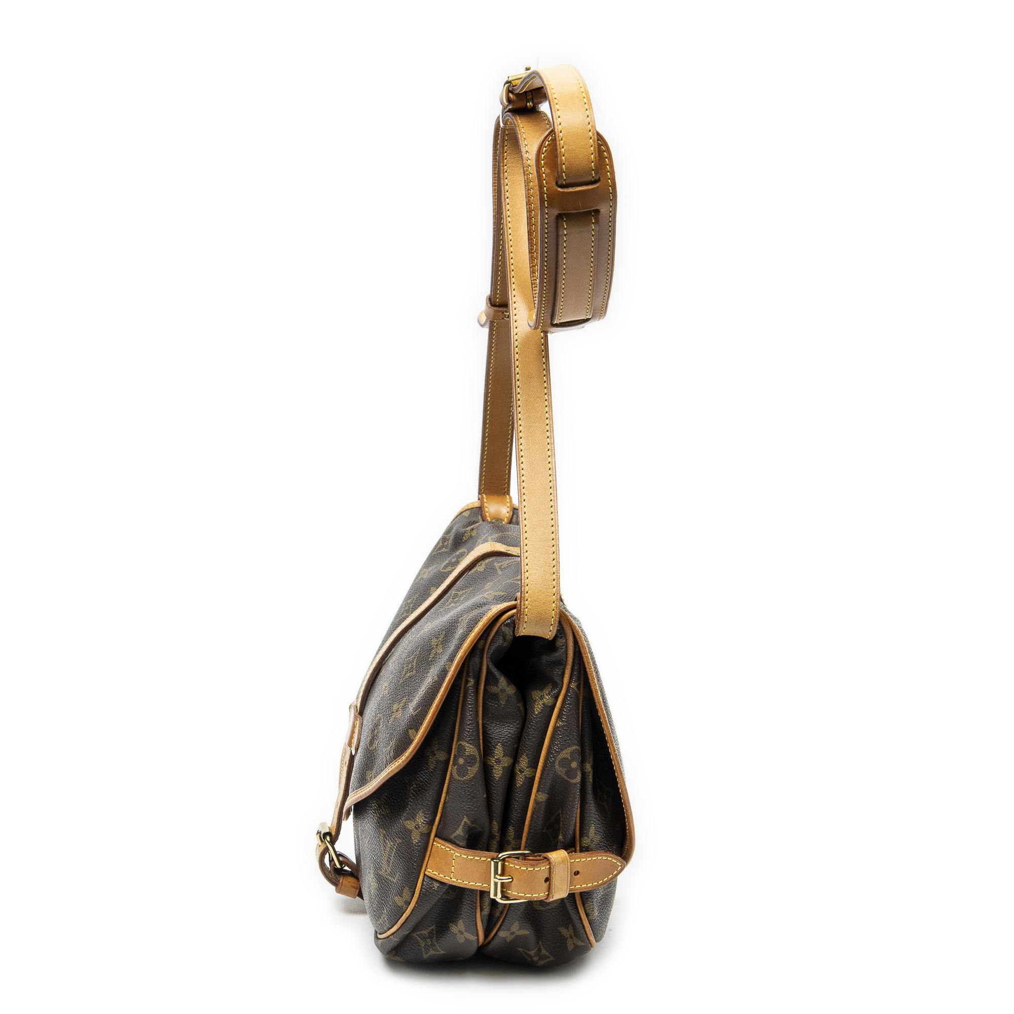 Louis Vuitton Sac à bandoulière Saumur MM en Brown et Cuivre d’Or. Le produit est en Très Bon état (AB).