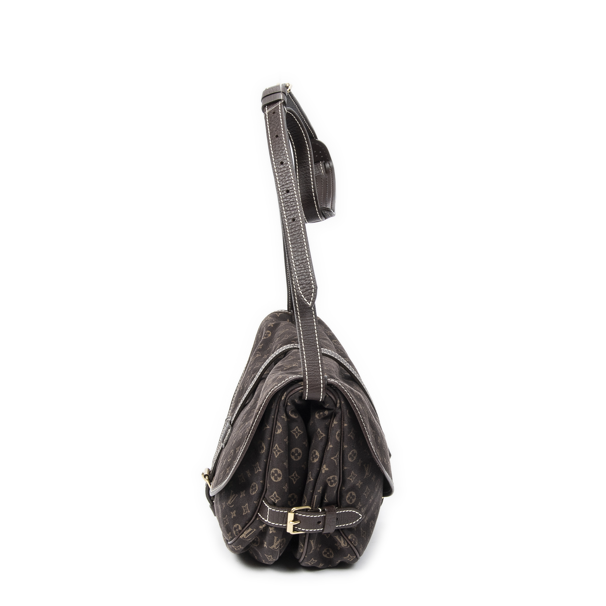 Louis Vuitton Sac à bandoulière Saumur MM en Marron foncé et Cuivre d’Or. Le produit est en Très Bon état (AB).