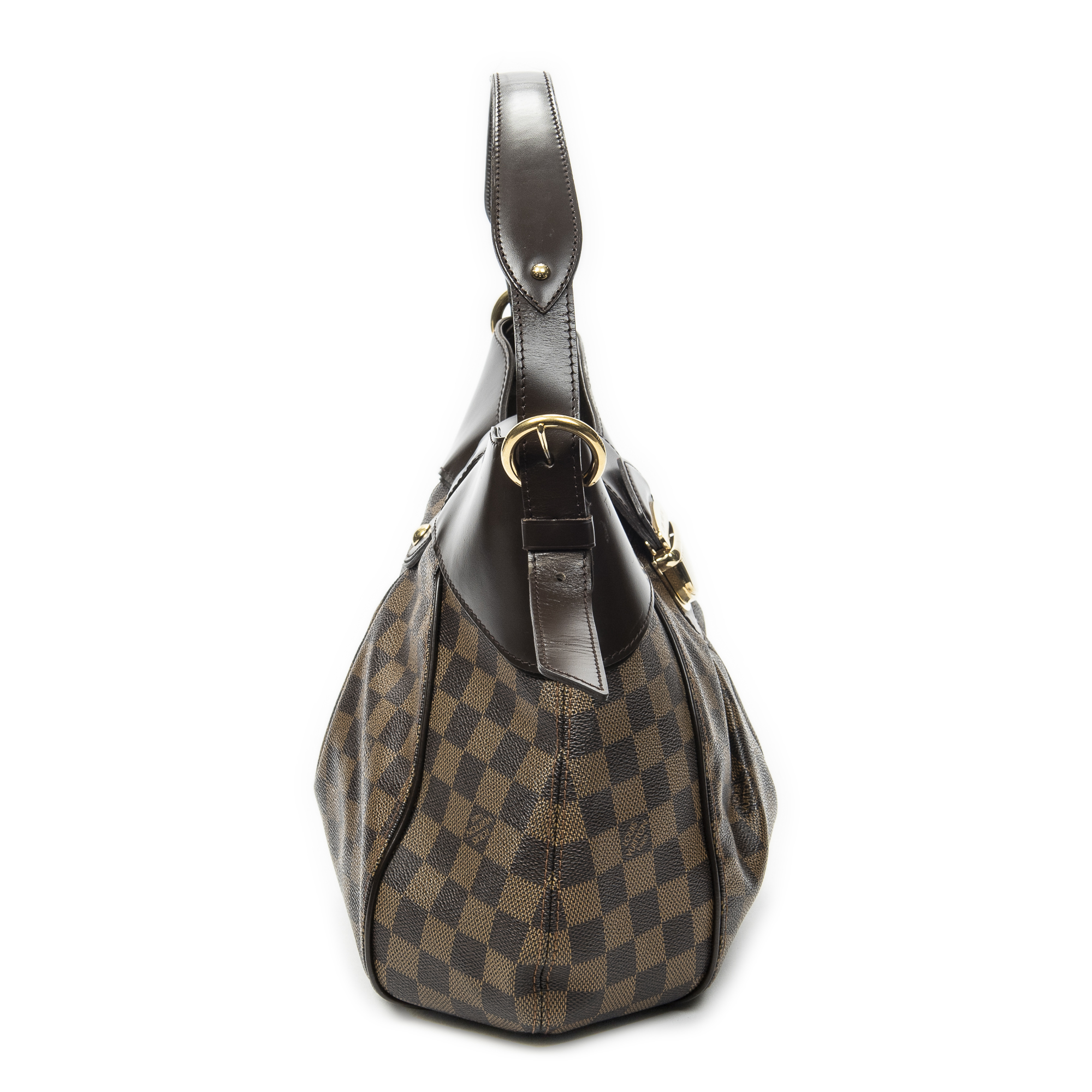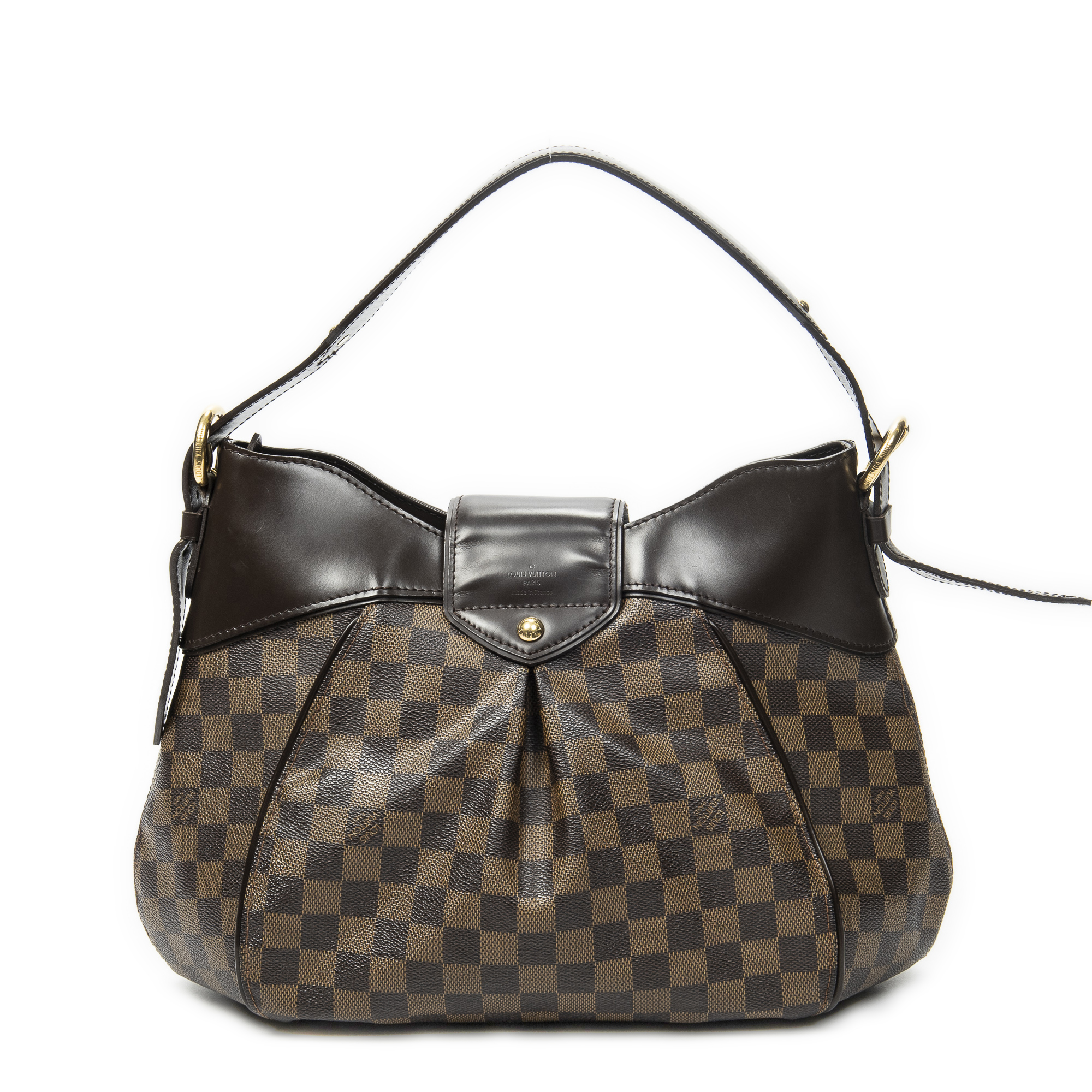 Louis Vuitton sac à bandoulière Sistina MM en brun et laiton doré. Le produit est en Excellent état (A).