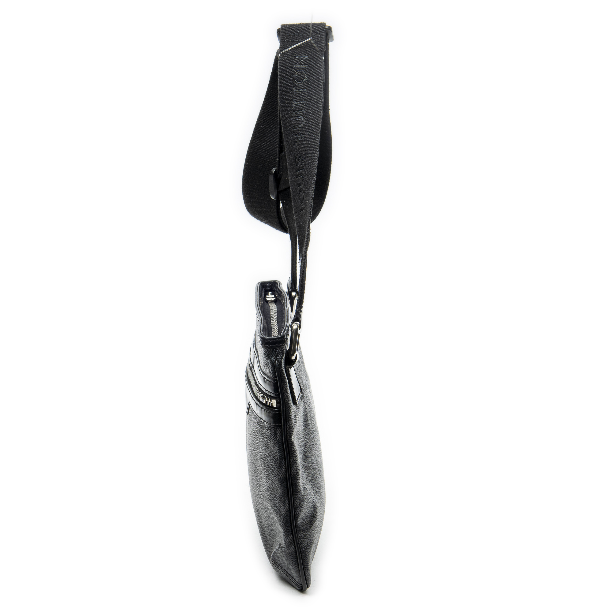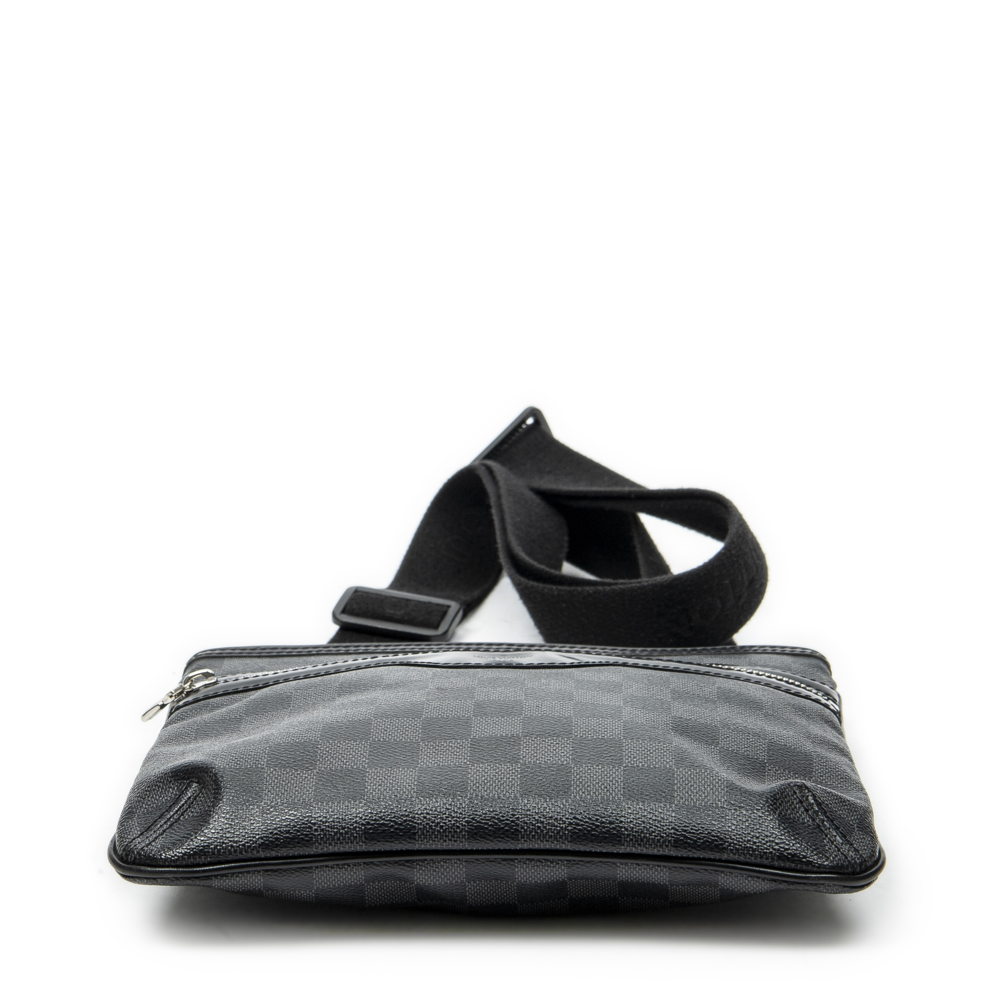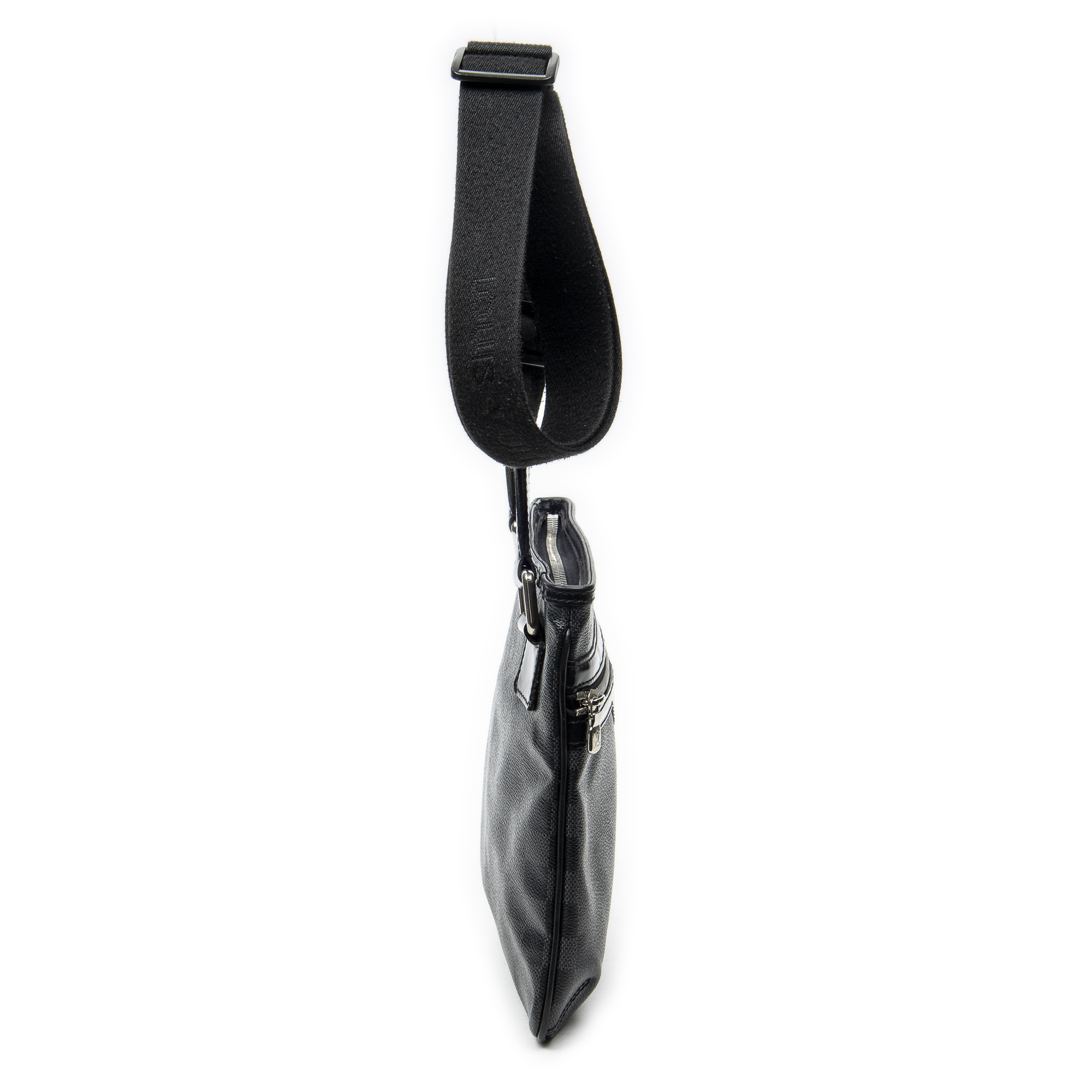 Louis Vuitton Sac à bandoulière Thomas en Noir/Gris et Laiton d’argent. Le produit est en Excellent état (A).