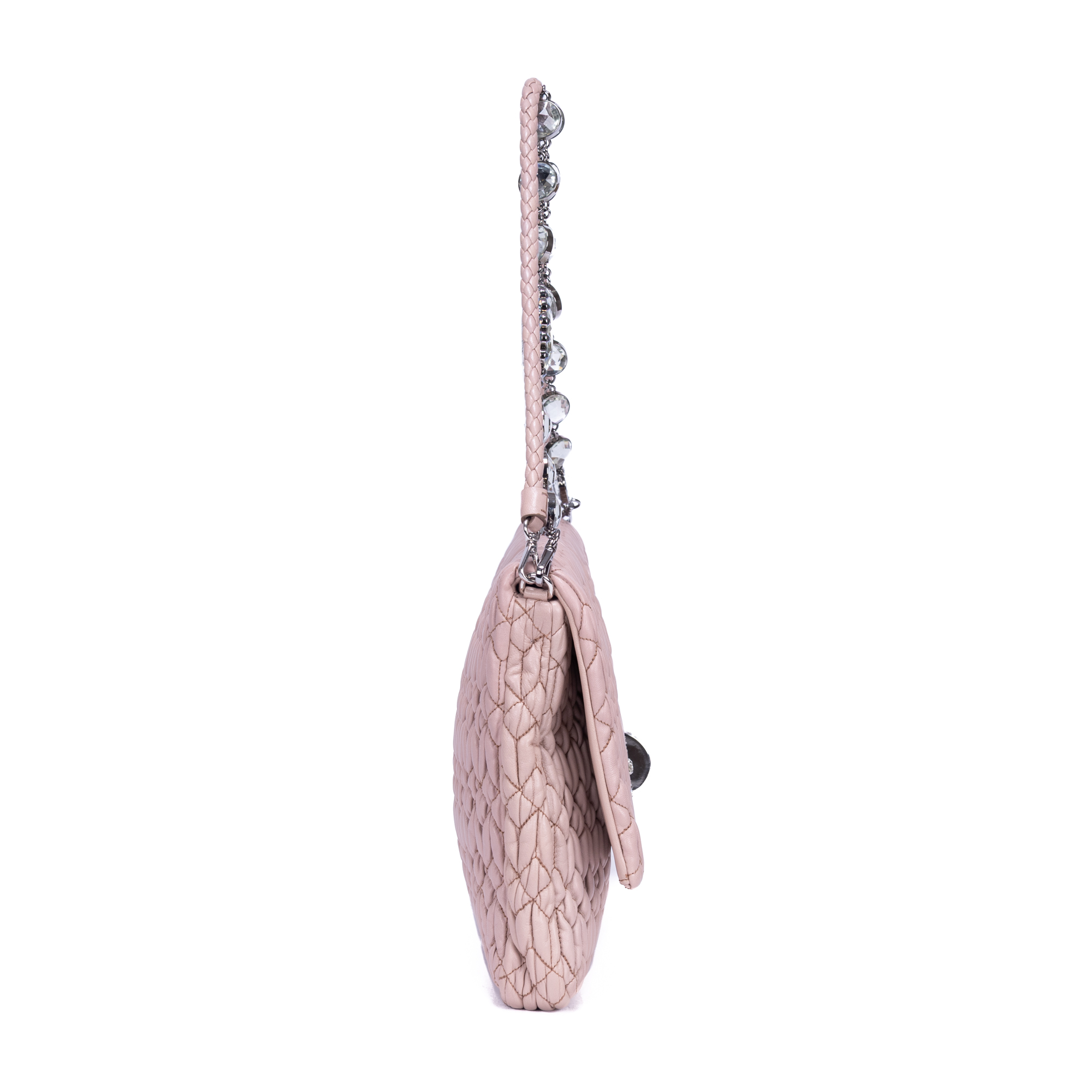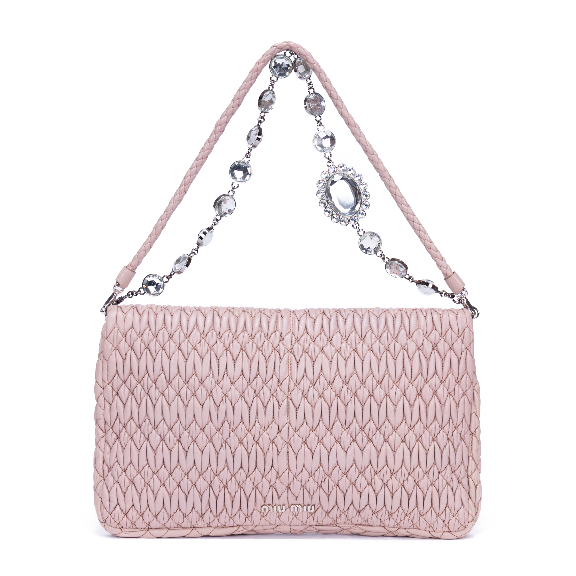 Miu Miu Sac à bandoulière Crystal Cloque en Rose et Argent. Le produit est en Excellent état (A).