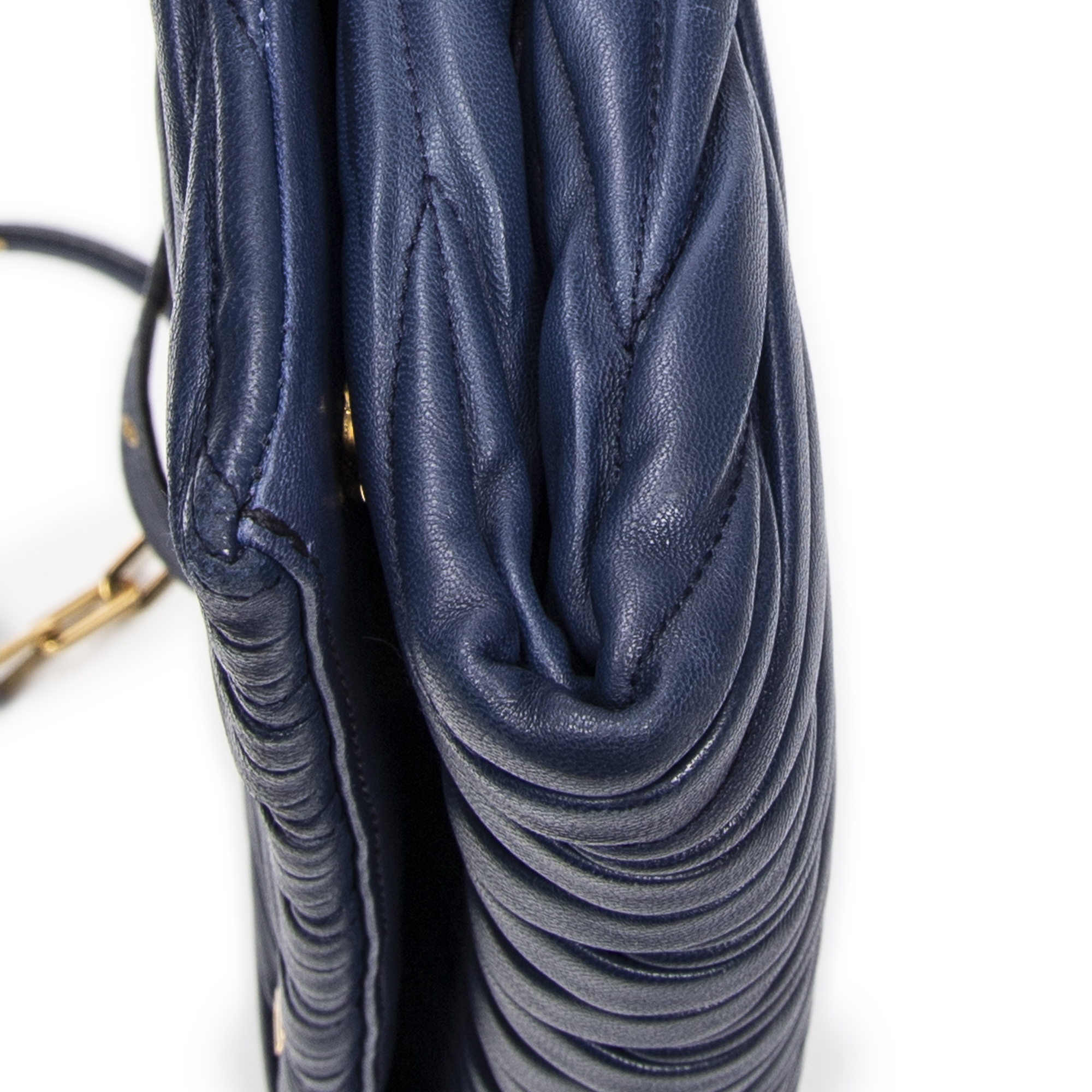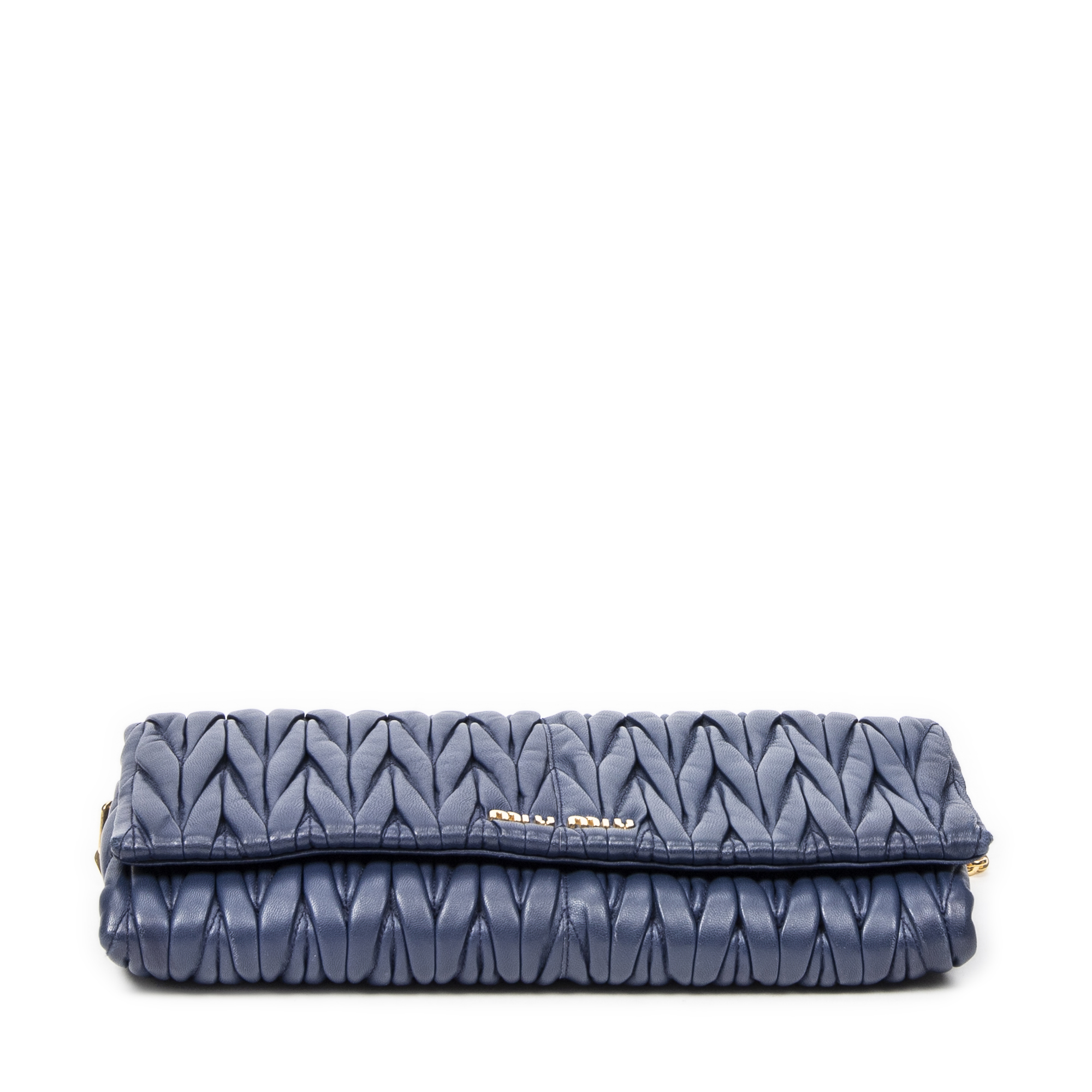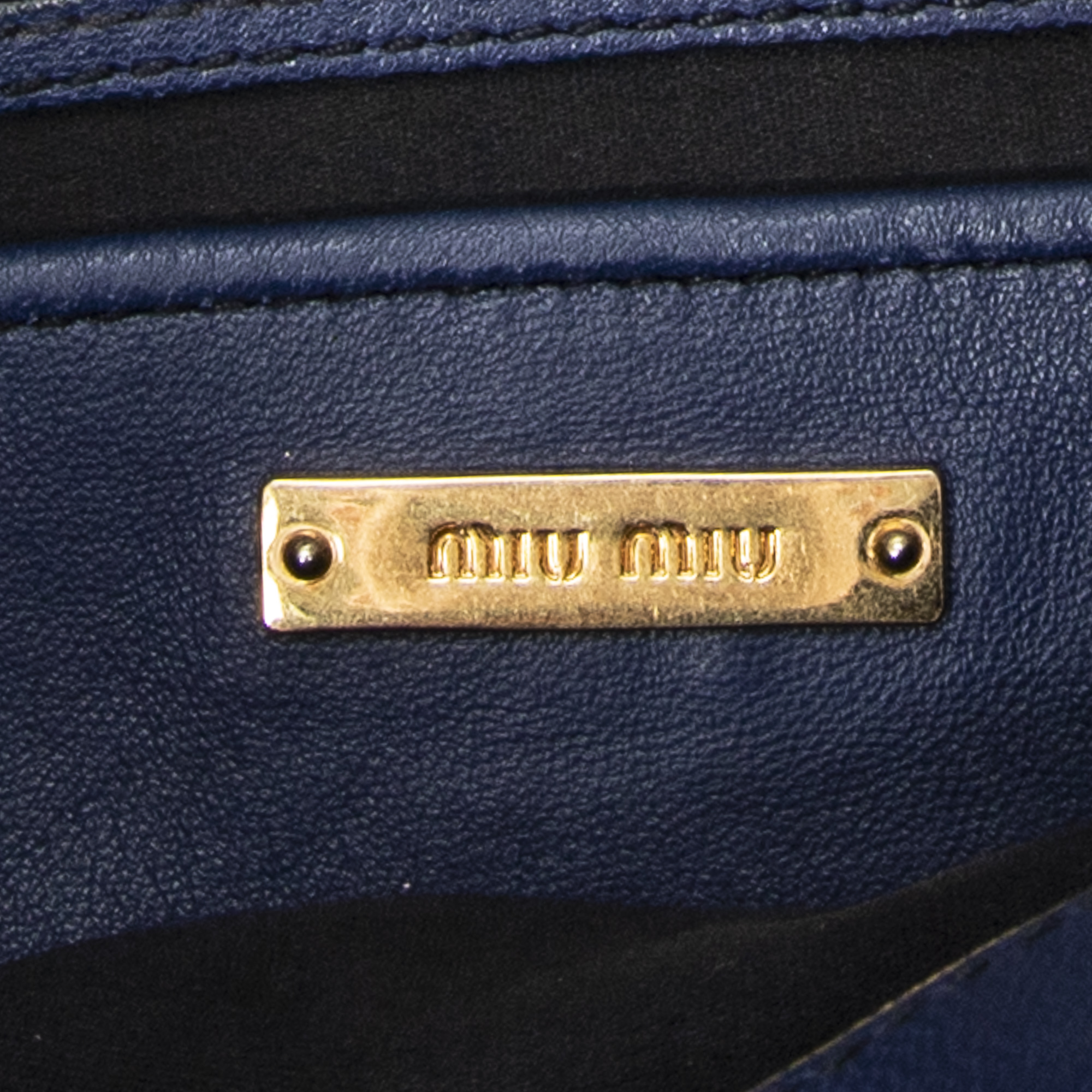 Miu Miu Sac à bandoulière Flap Chain Clutch en Marine et Gold. Le produit est en Excellent état (A).