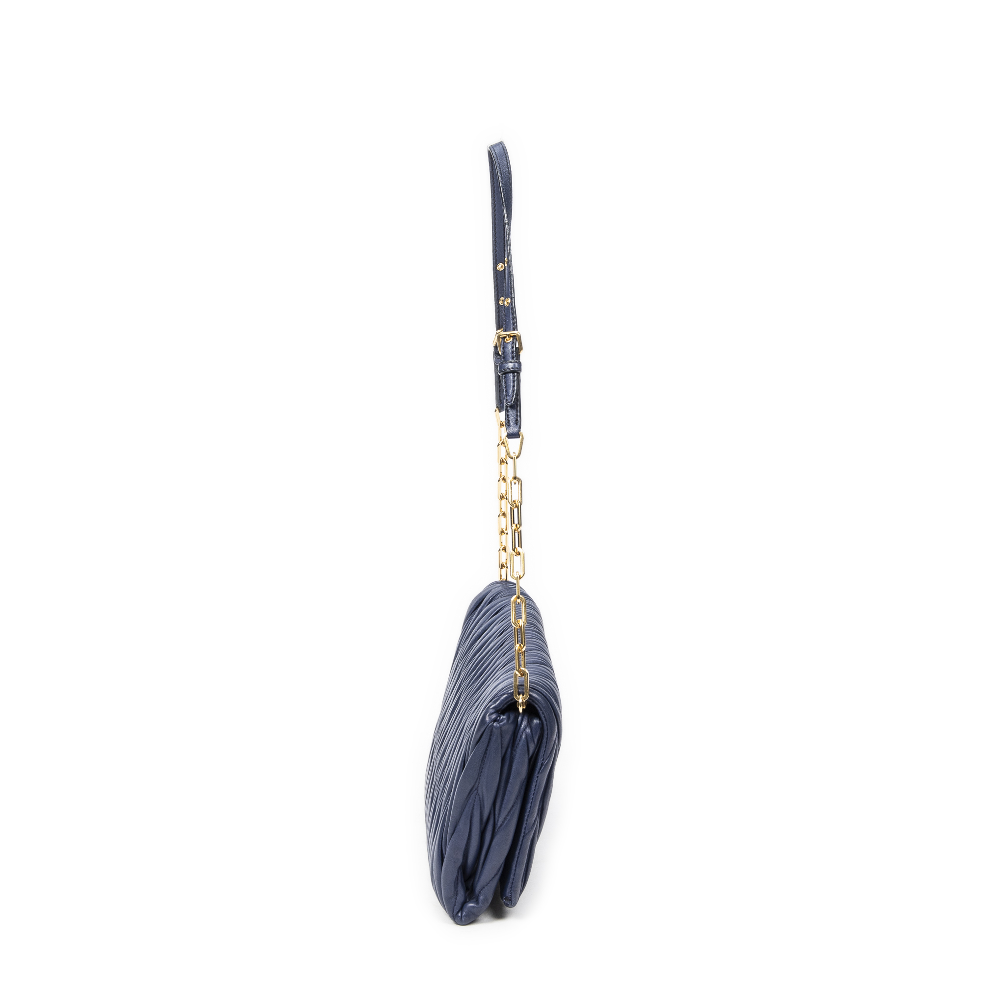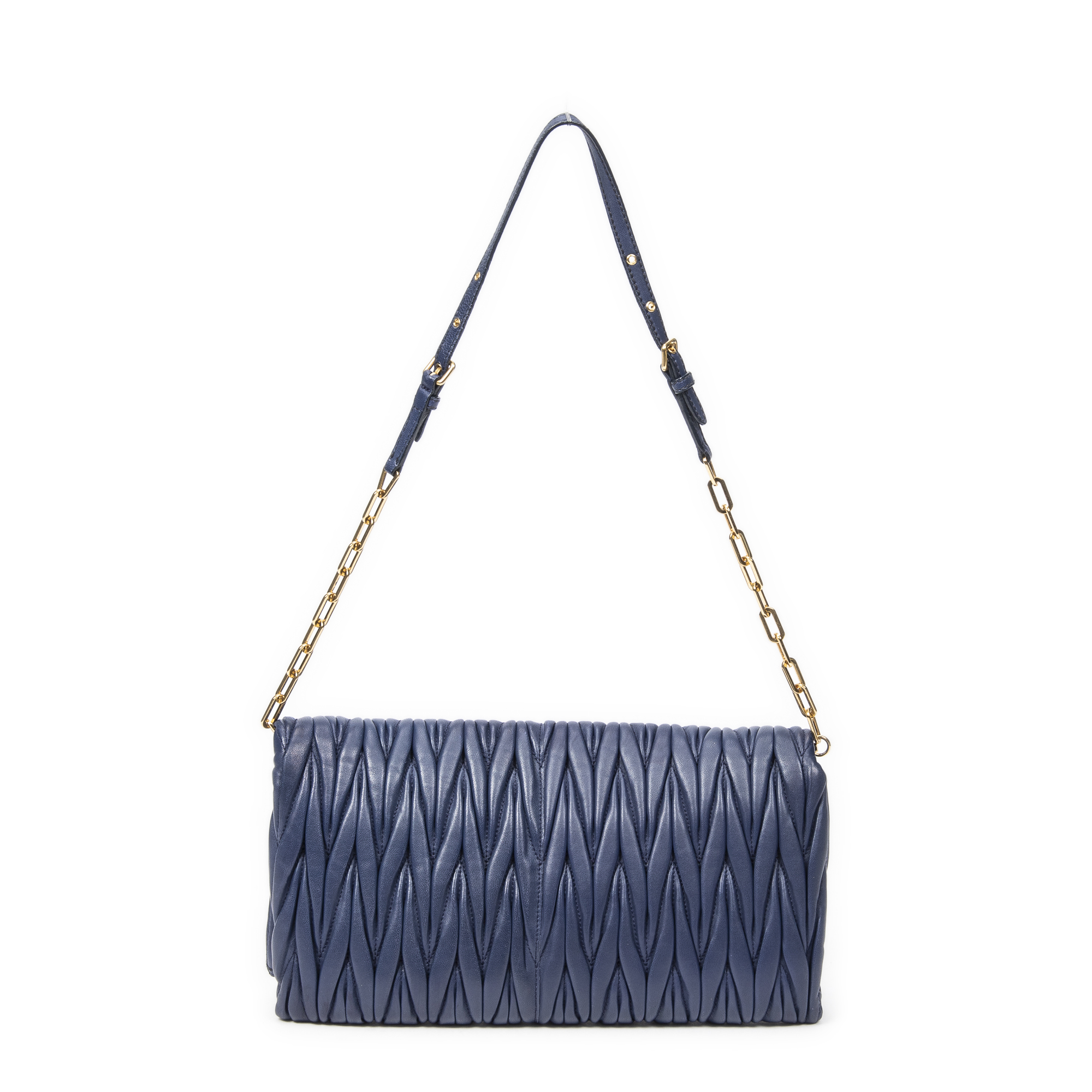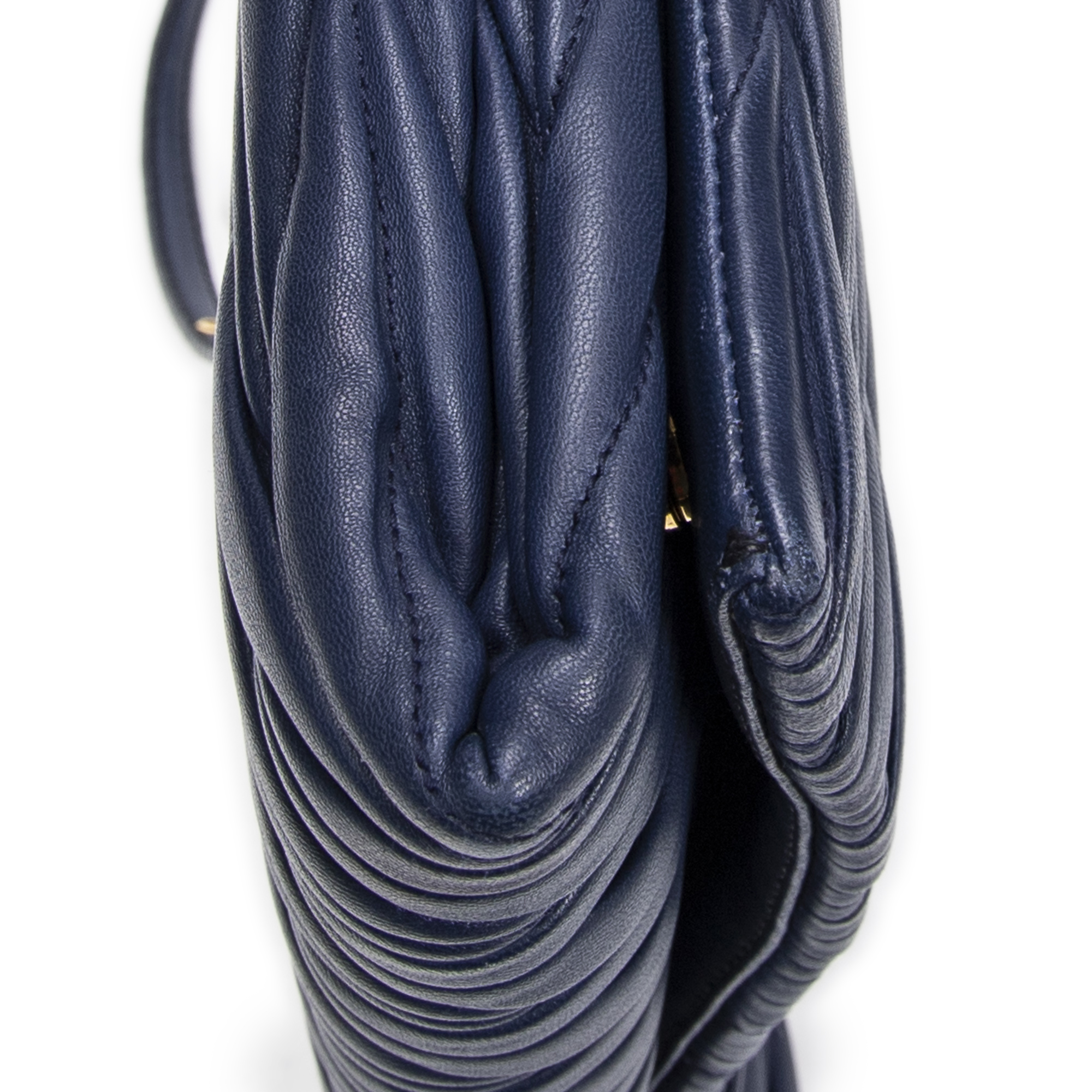 Miu Miu Sac à bandoulière Flap Chain Clutch en Marine et Gold. Le produit est en Excellent état (A).
