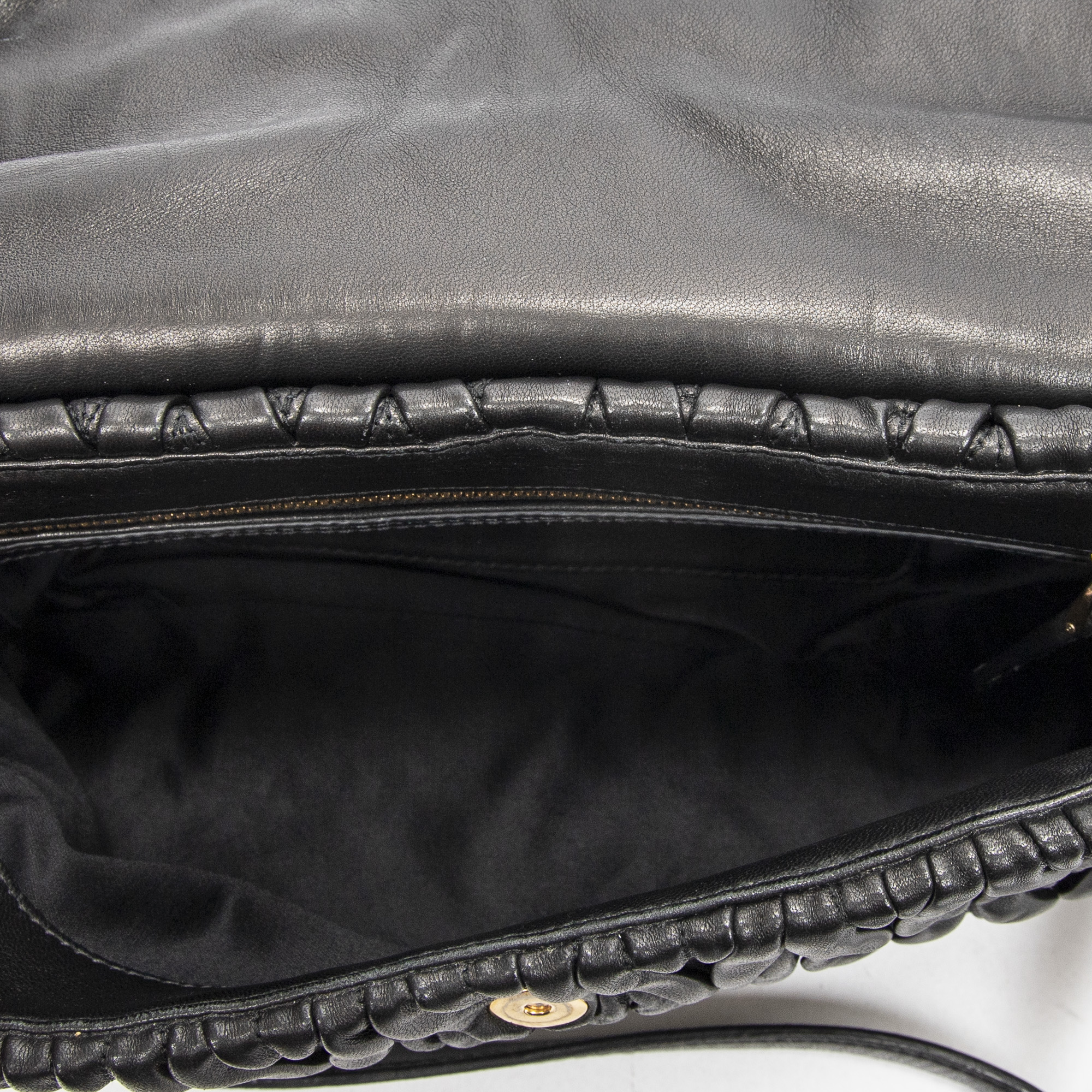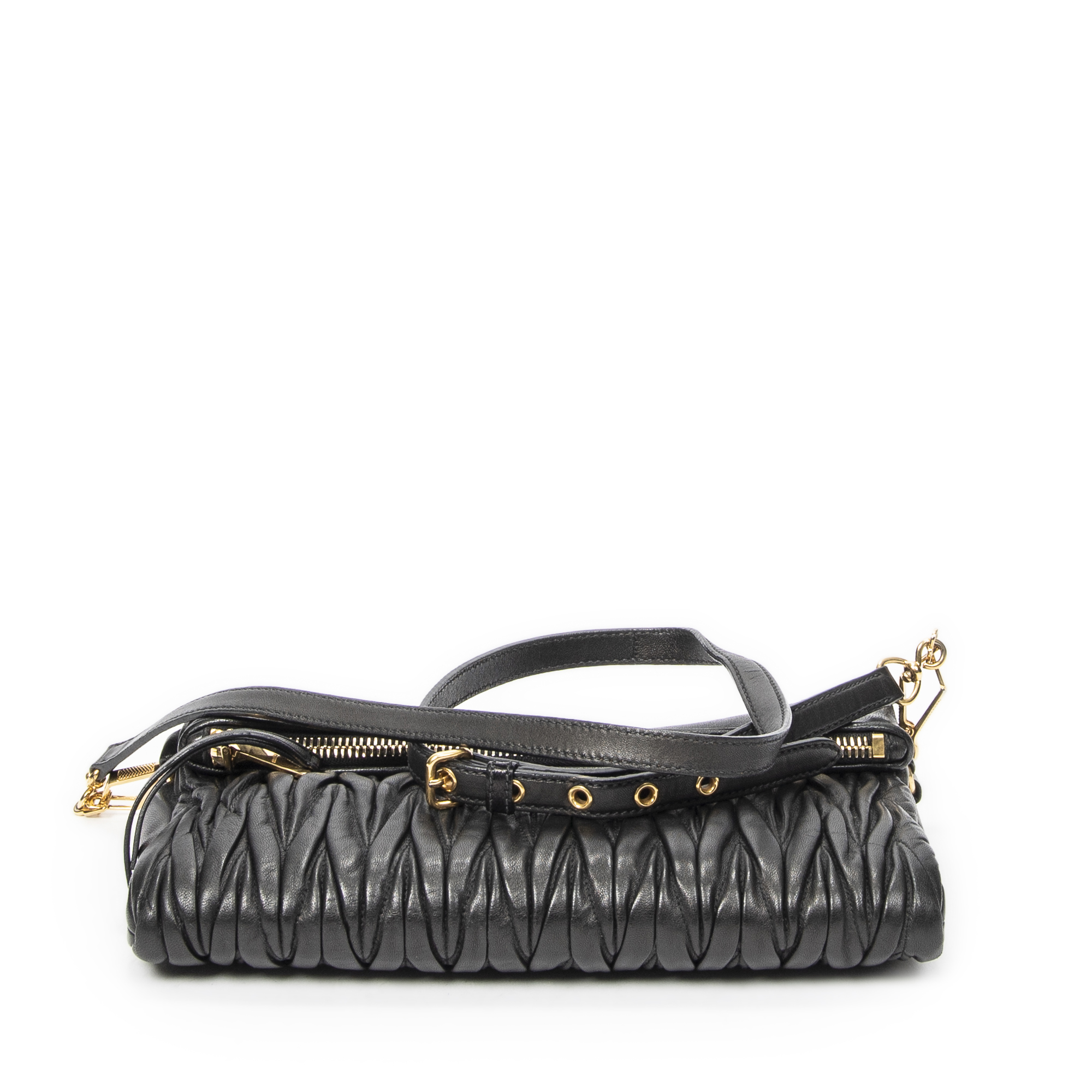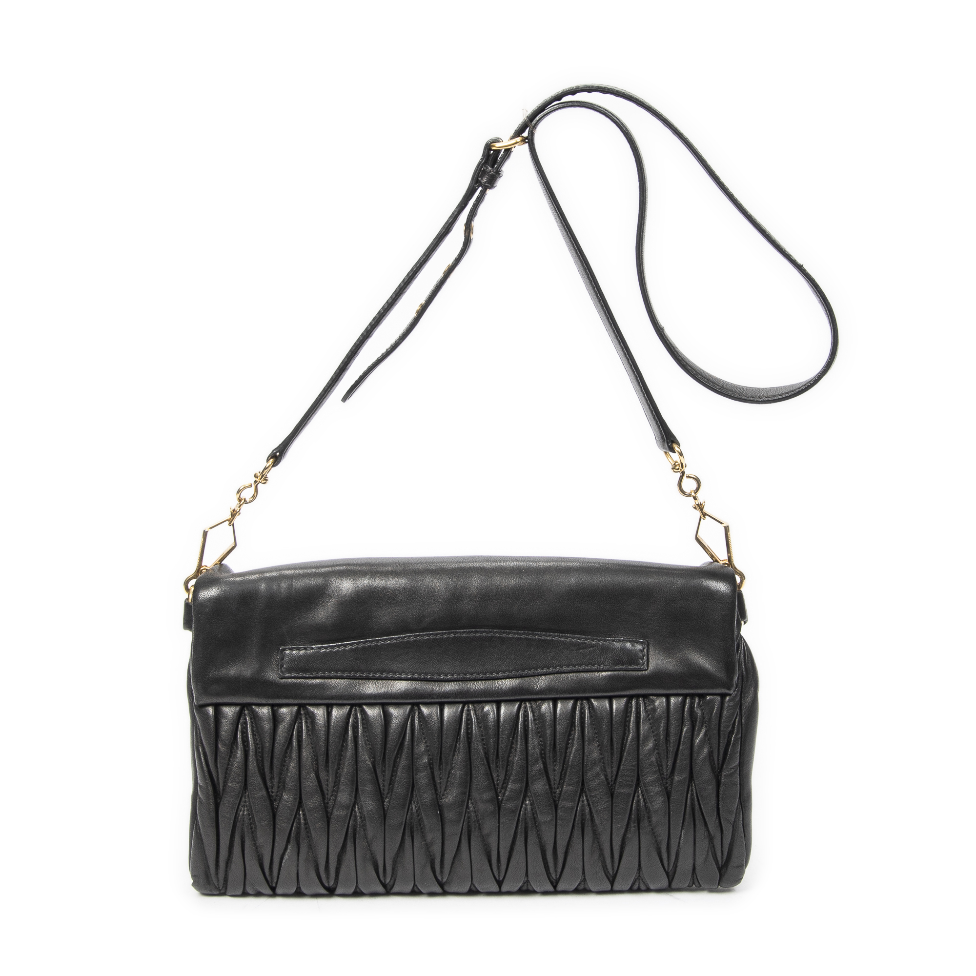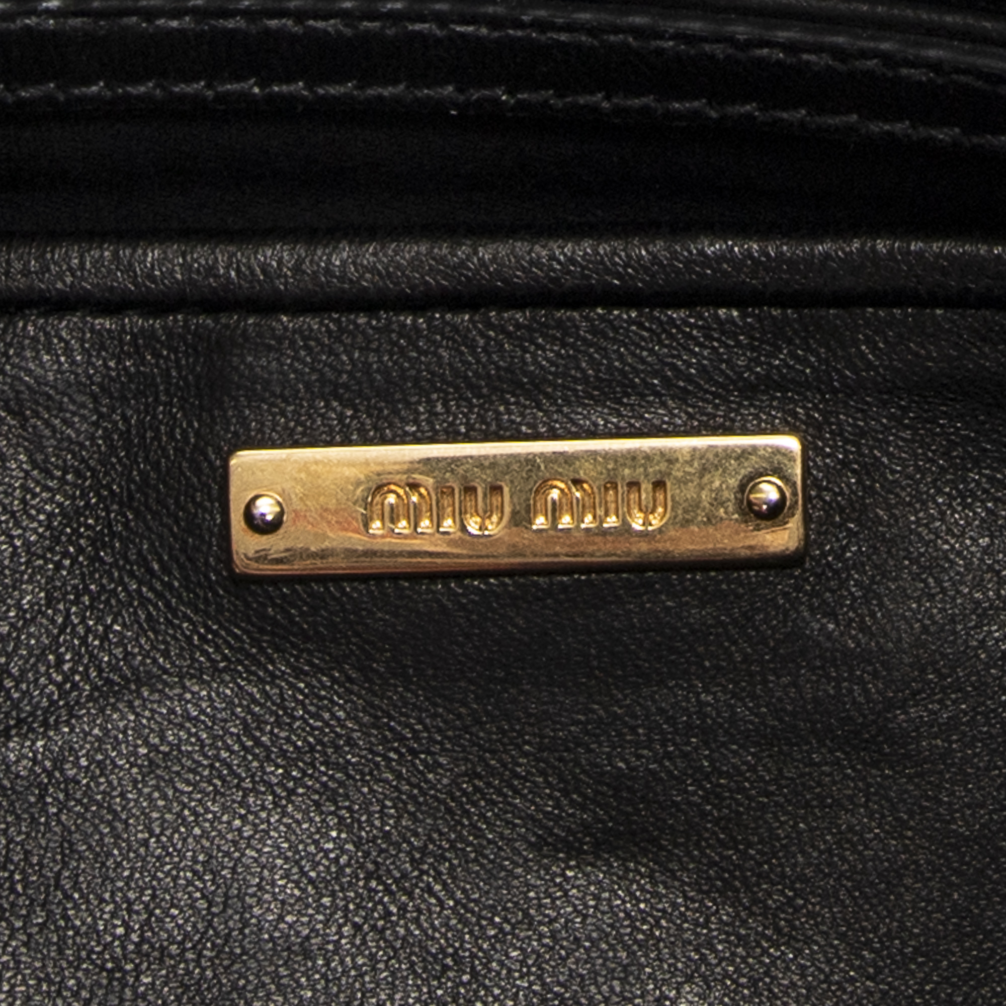 Miu Miu Sac à bandoulière Foldover Zip Crossbody en Black et Gold. Le produit est en Excellent état (A).