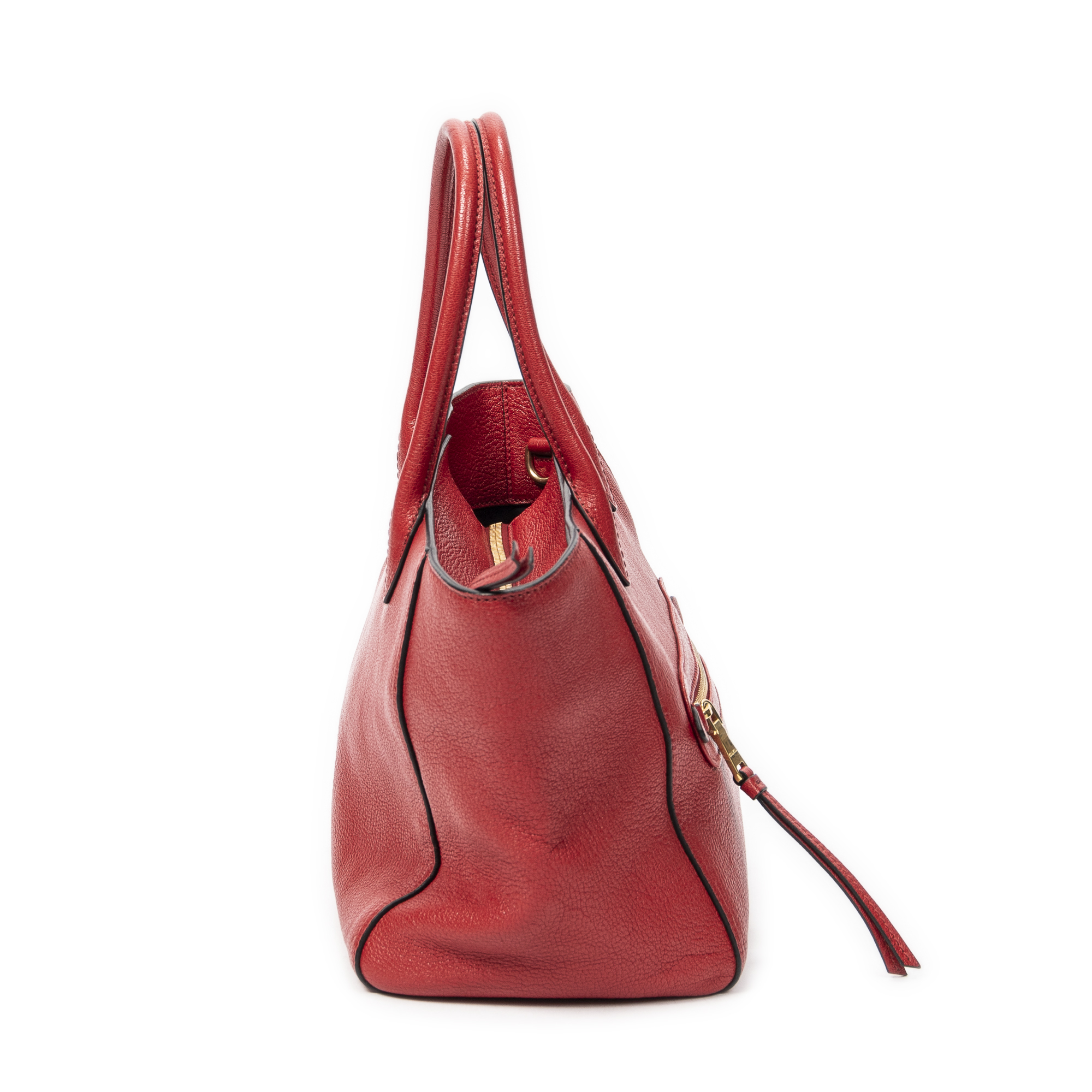 Miu Miu Sac à bandoulière Front Zip Convertible Tote en Red et Gold. Le produit est en Excellent état (A).