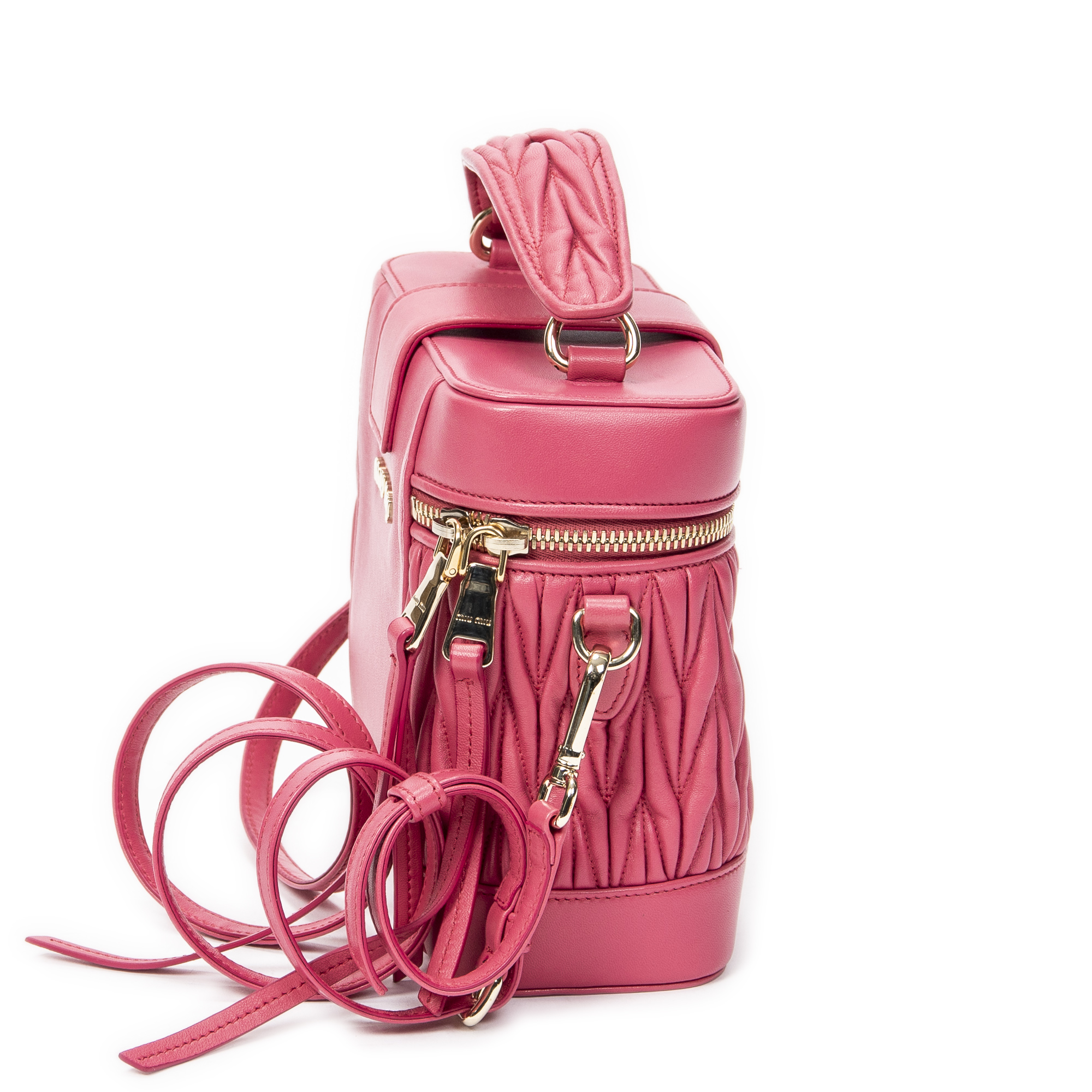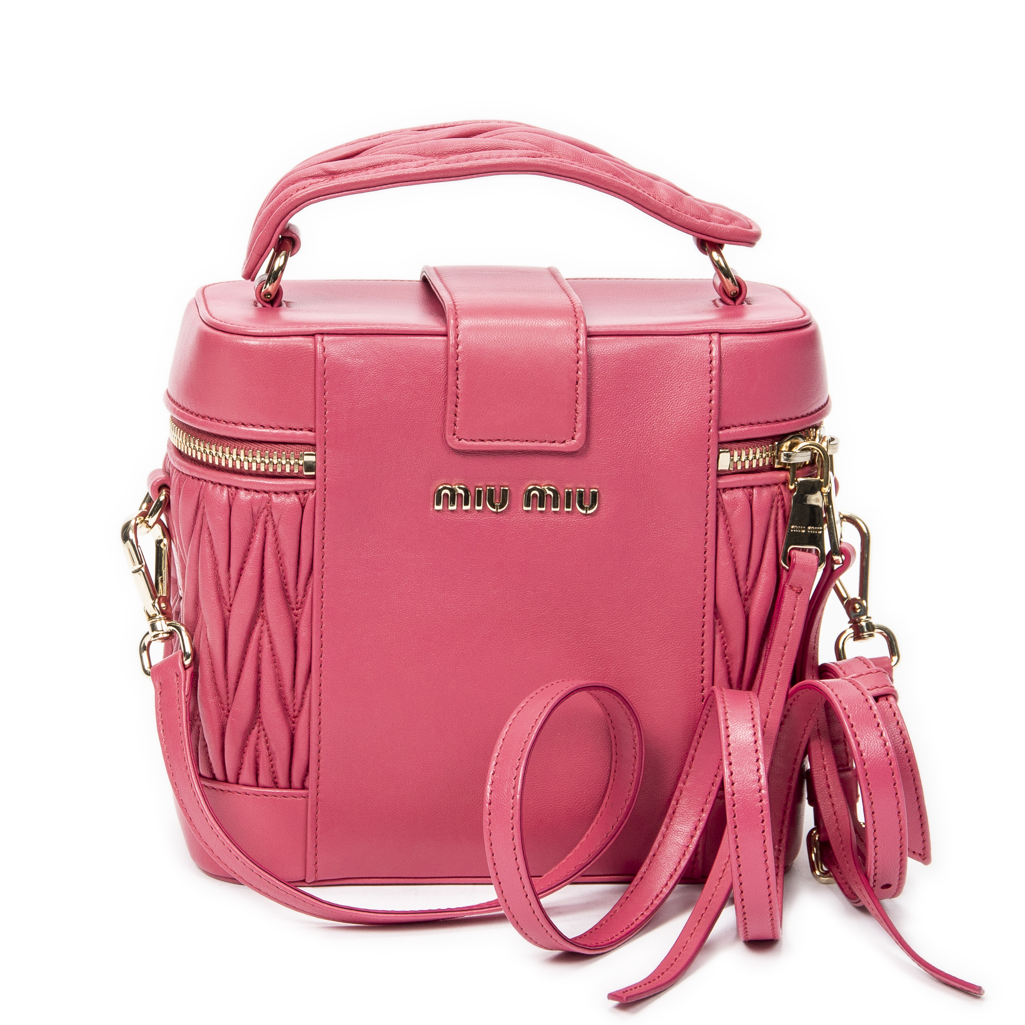 Miu Miu Sac à bandoulière Push Lock Vanity Top Handle en Rose et Gold. Le produit est en Excellent état (A).