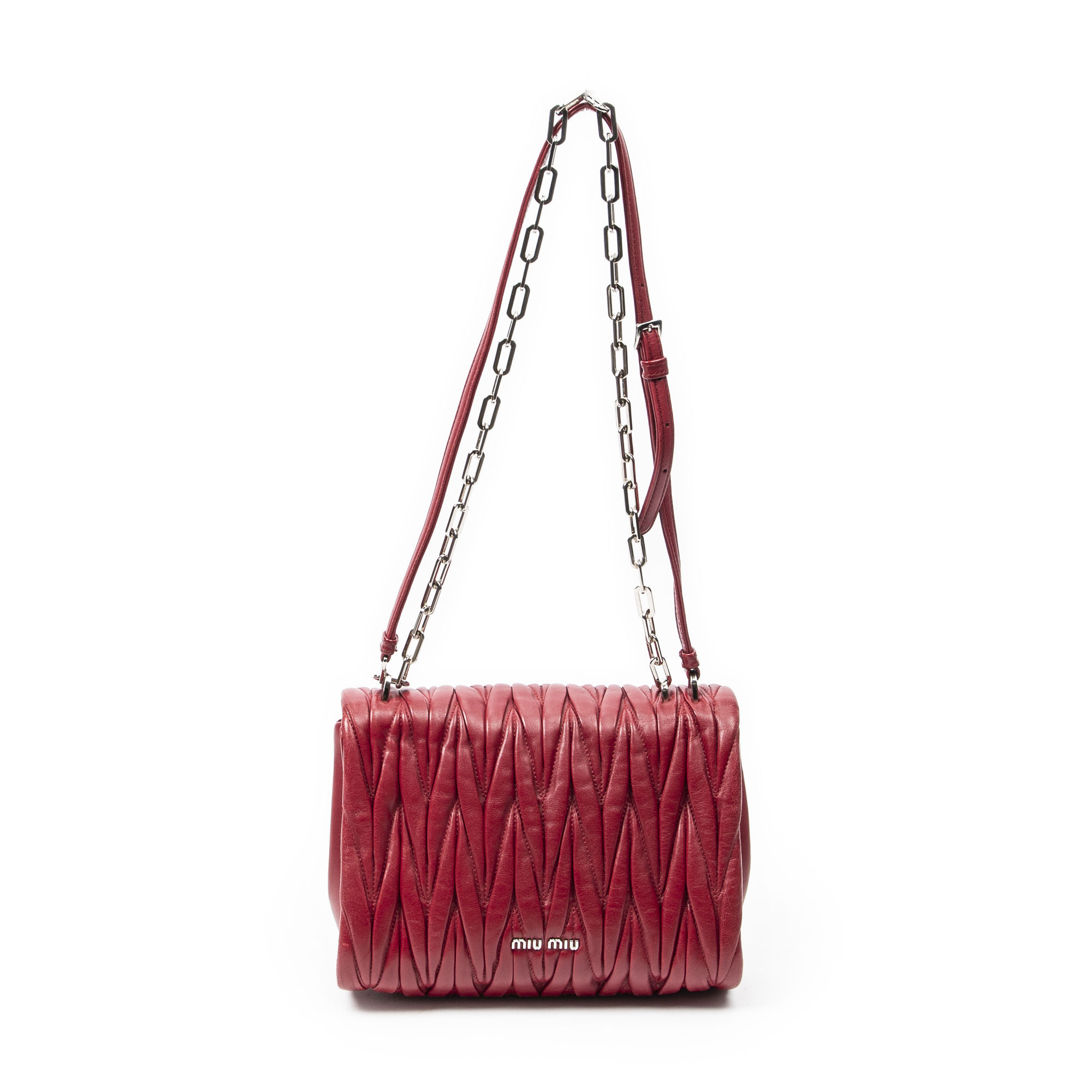 Miu Miu Sac à bandoulière Pushlock Chain Flap en Rouge et Argent. Le produit est en Très Bon état (AB).