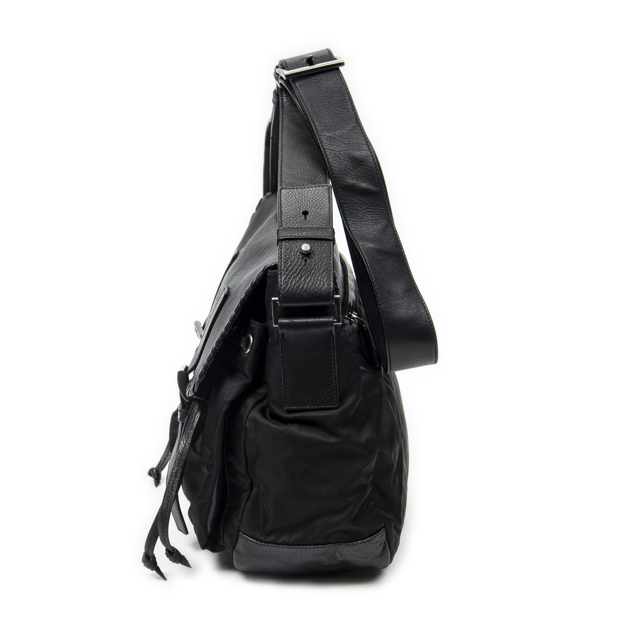 Prada Sac à bandoulière Buckle Flap Messenger en Black et Argent. Le produit est en Excellent état (A).