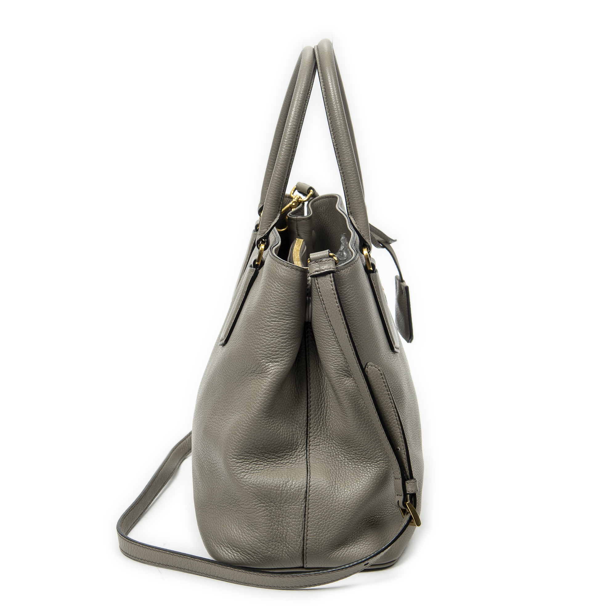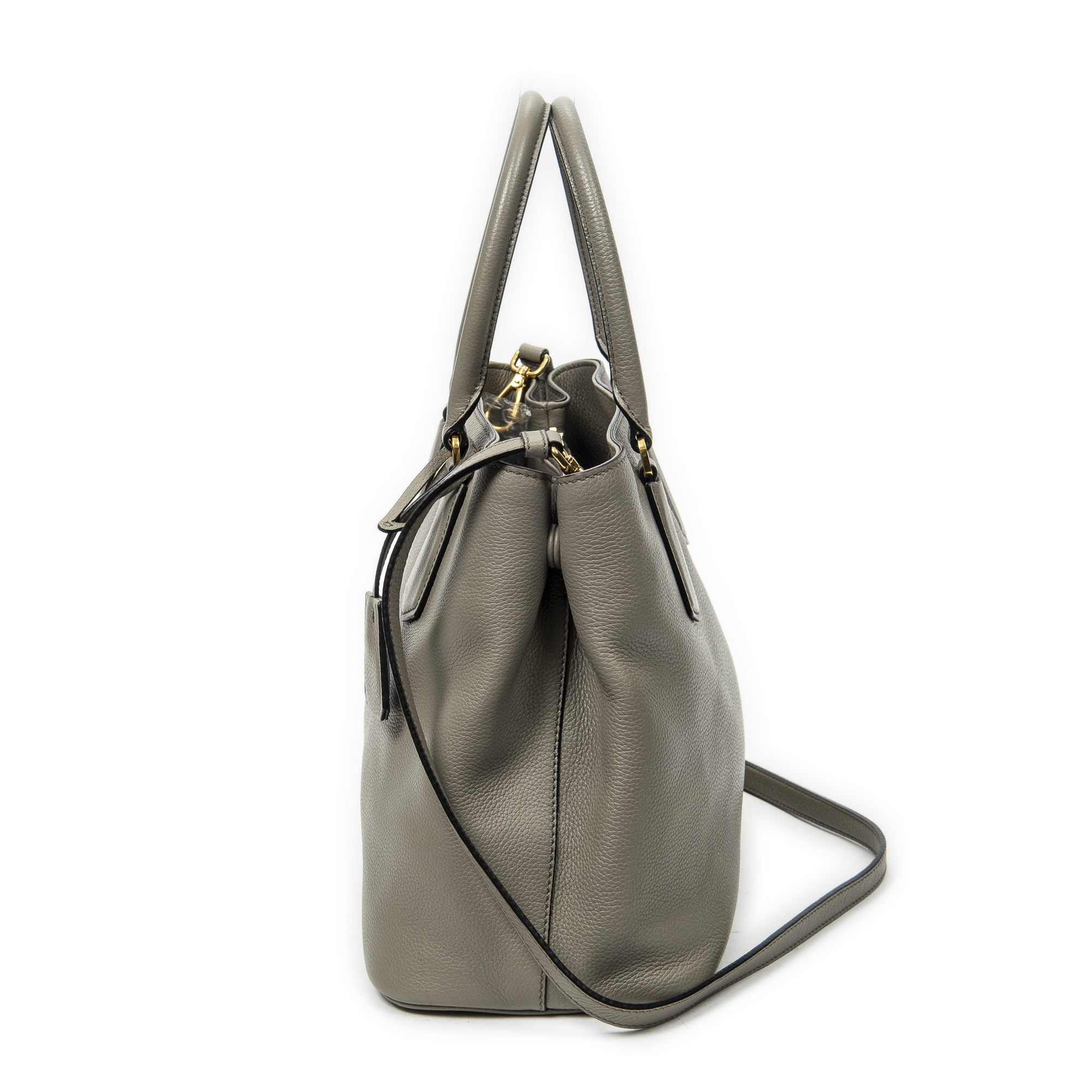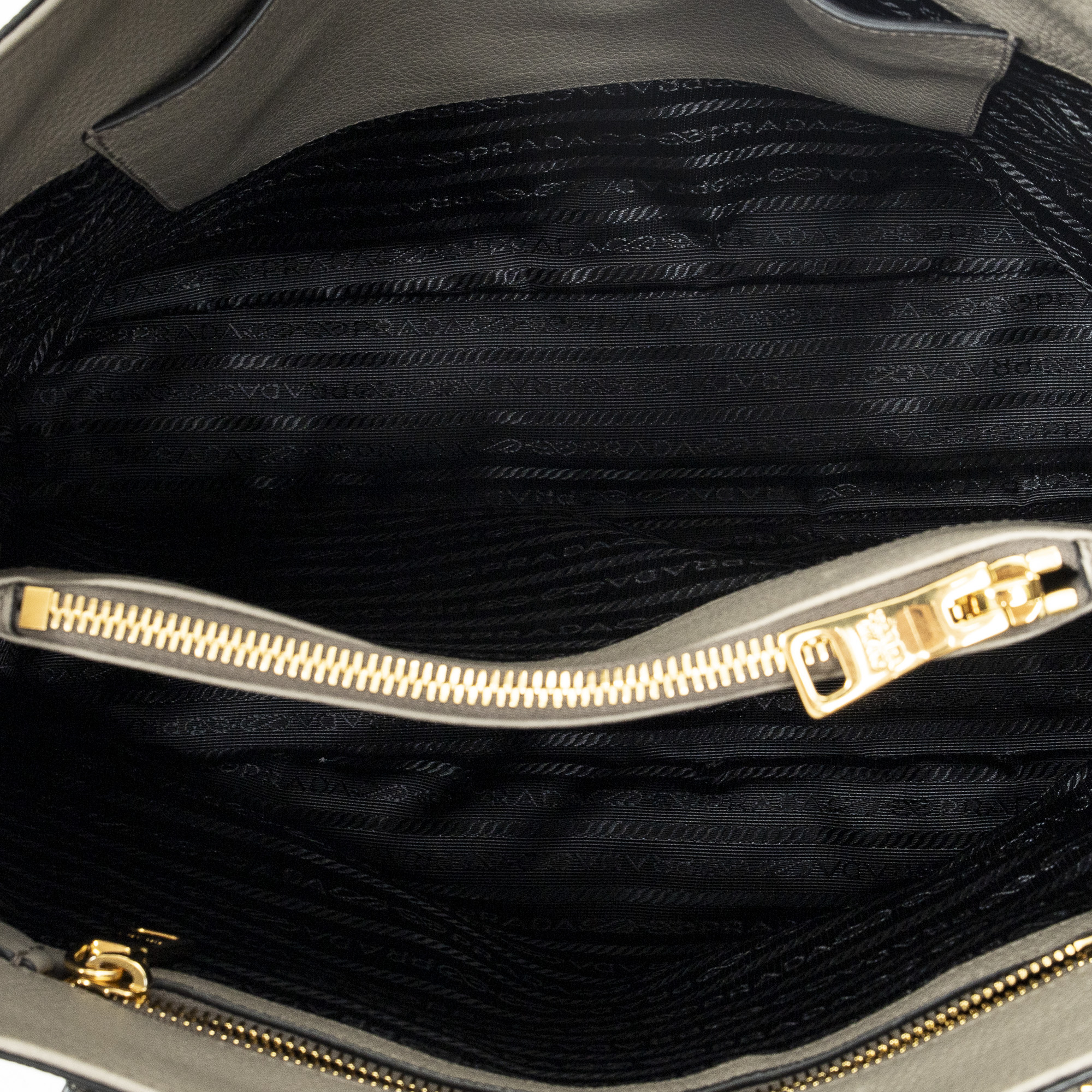 Prada sac à bandoulière Convertible Open Tote en gris et or. Le produit est en Parfait état (AA).