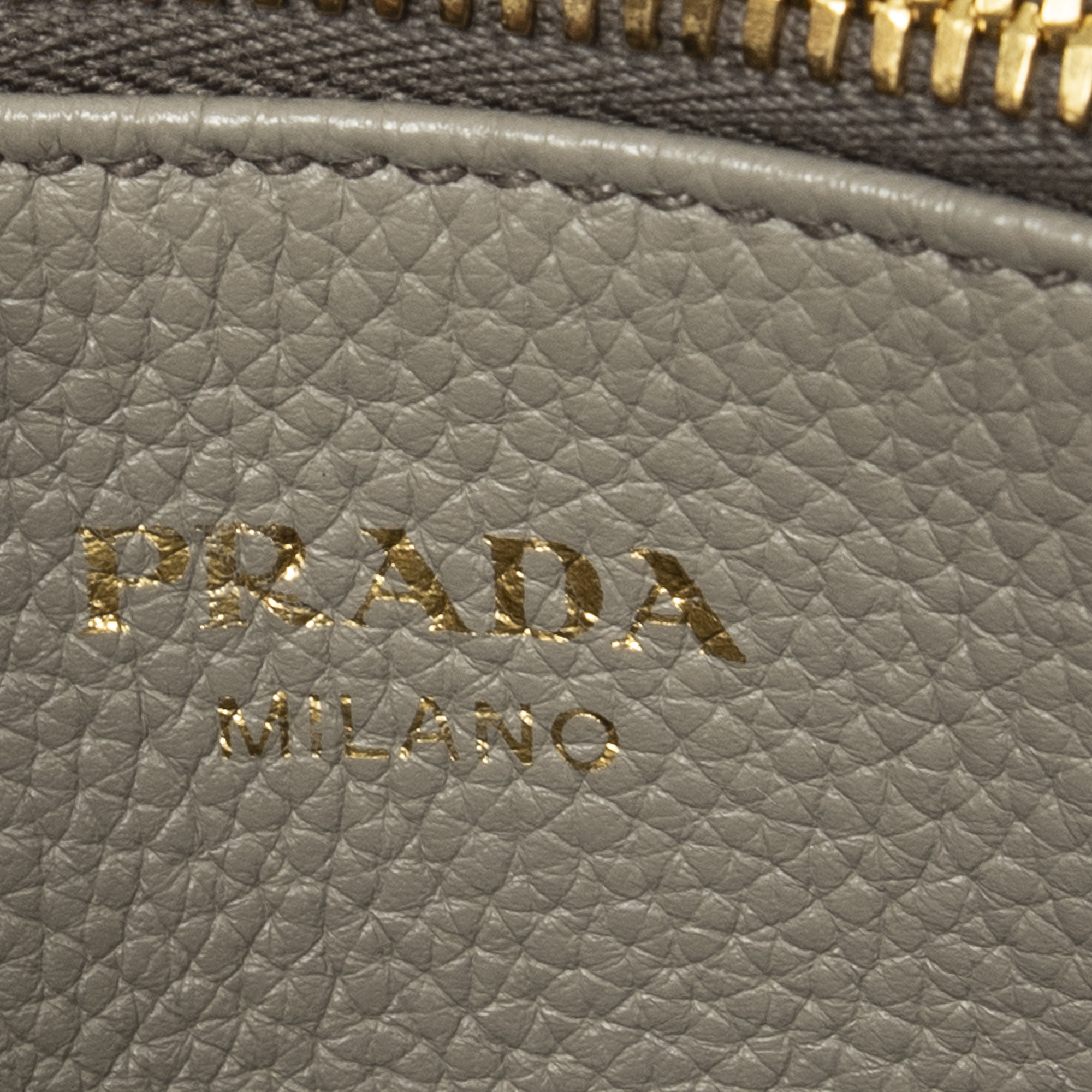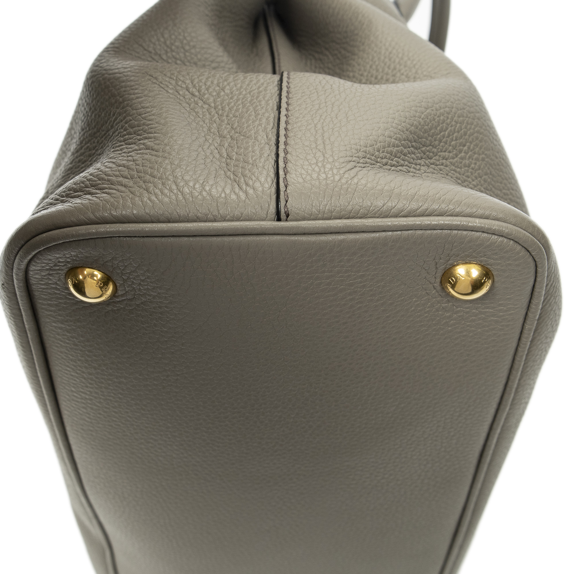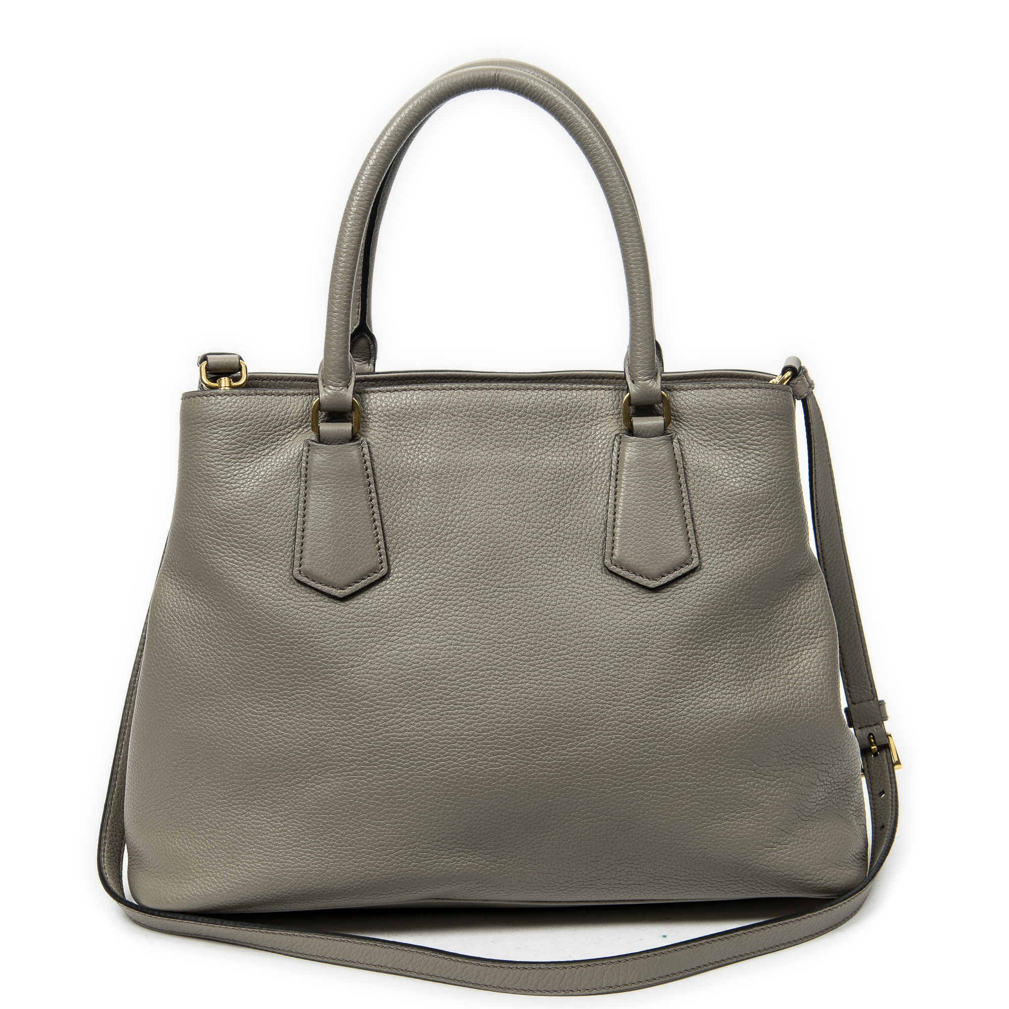 Prada sac à bandoulière Convertible Open Tote en gris et or. Le produit est en Parfait état (AA).