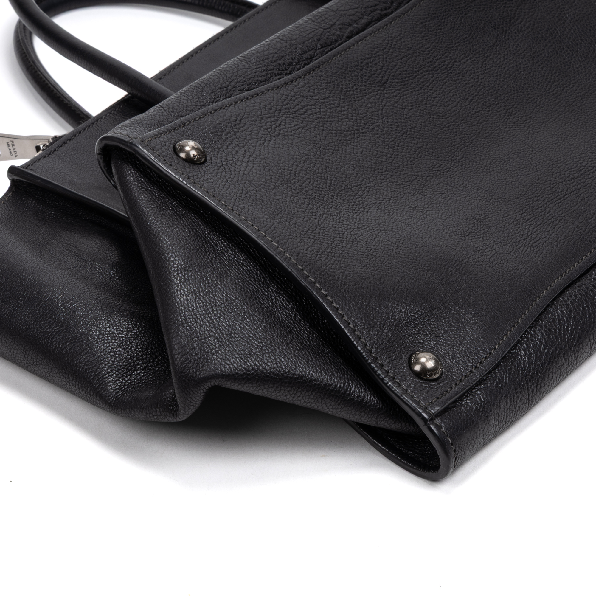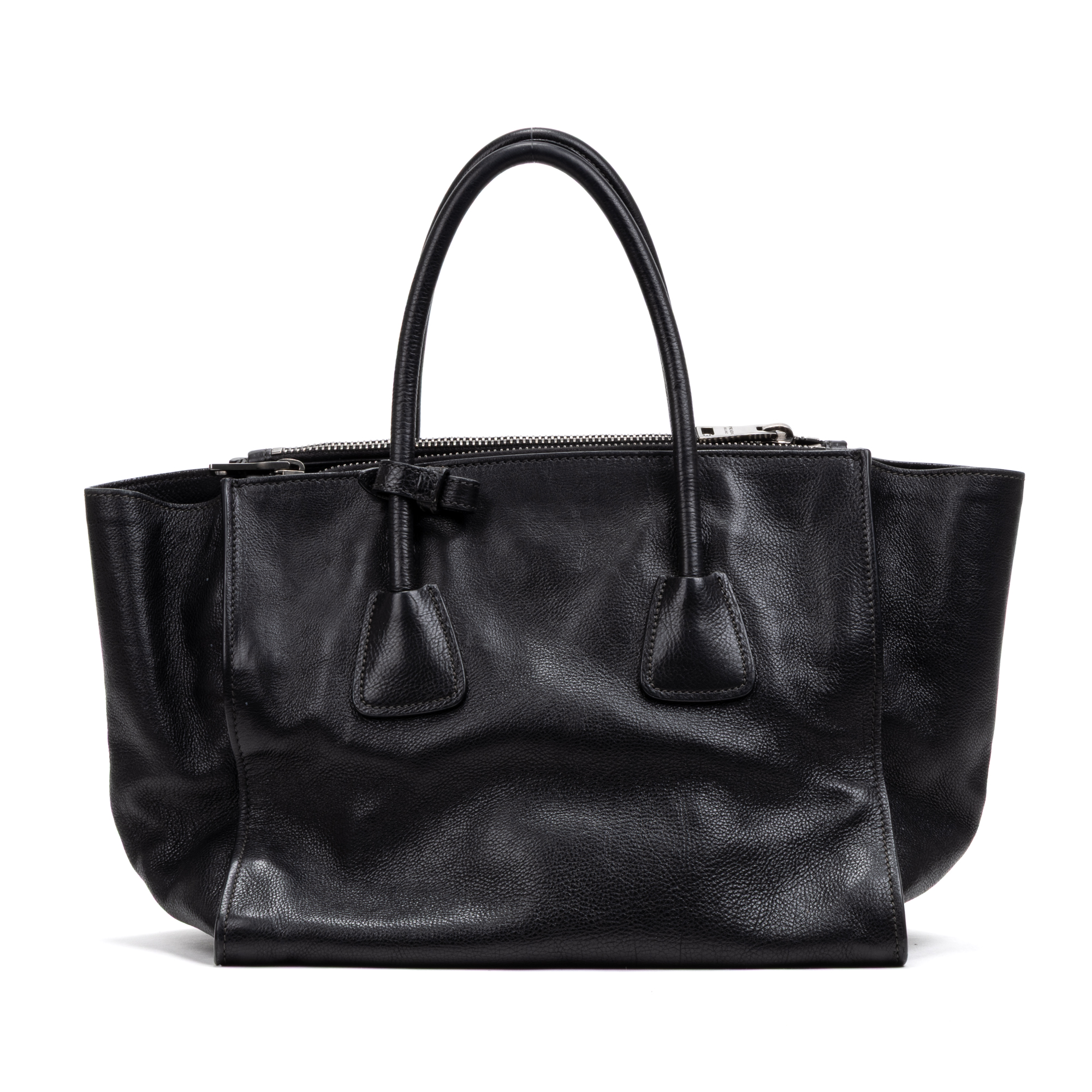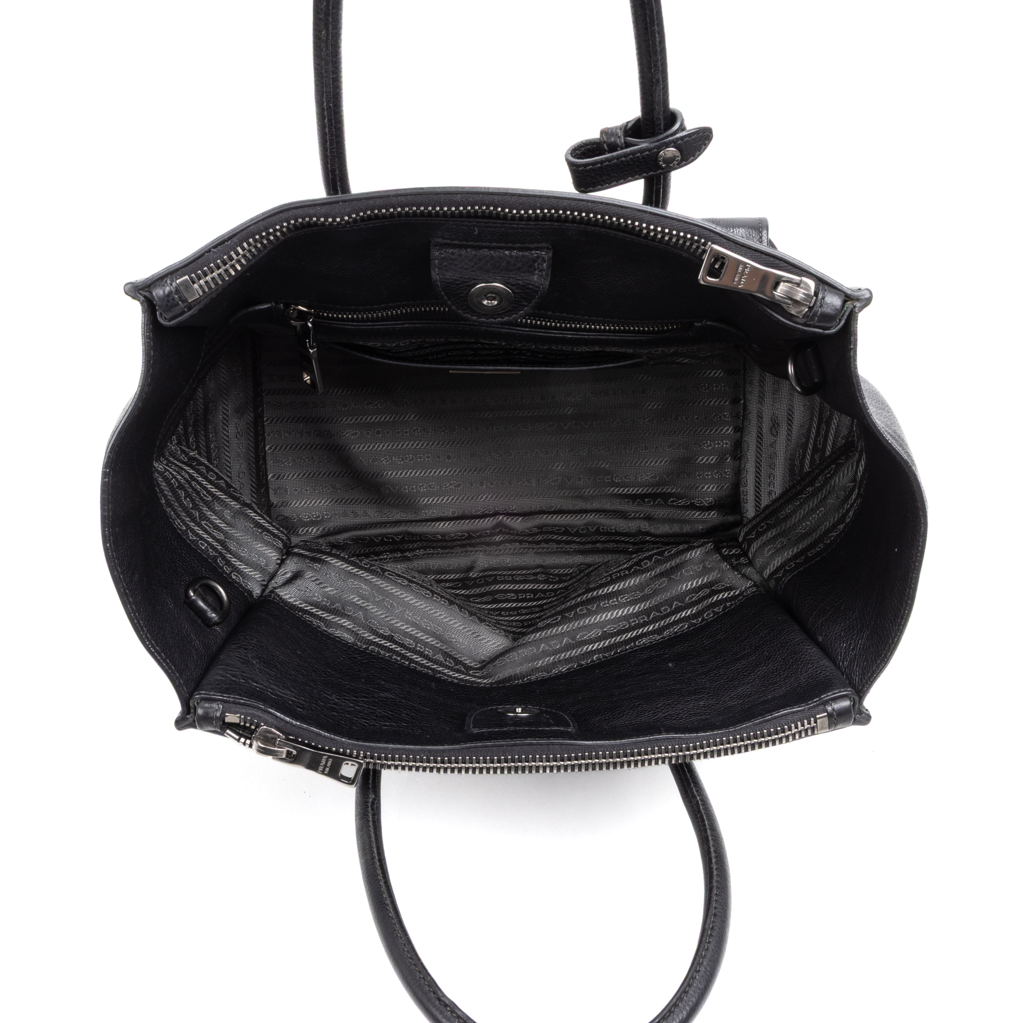 Prada Sac à bandoulière Crossbody Double Zipper Shopping Cabas en Black et Argent. Le produit est en Excellent état (A).