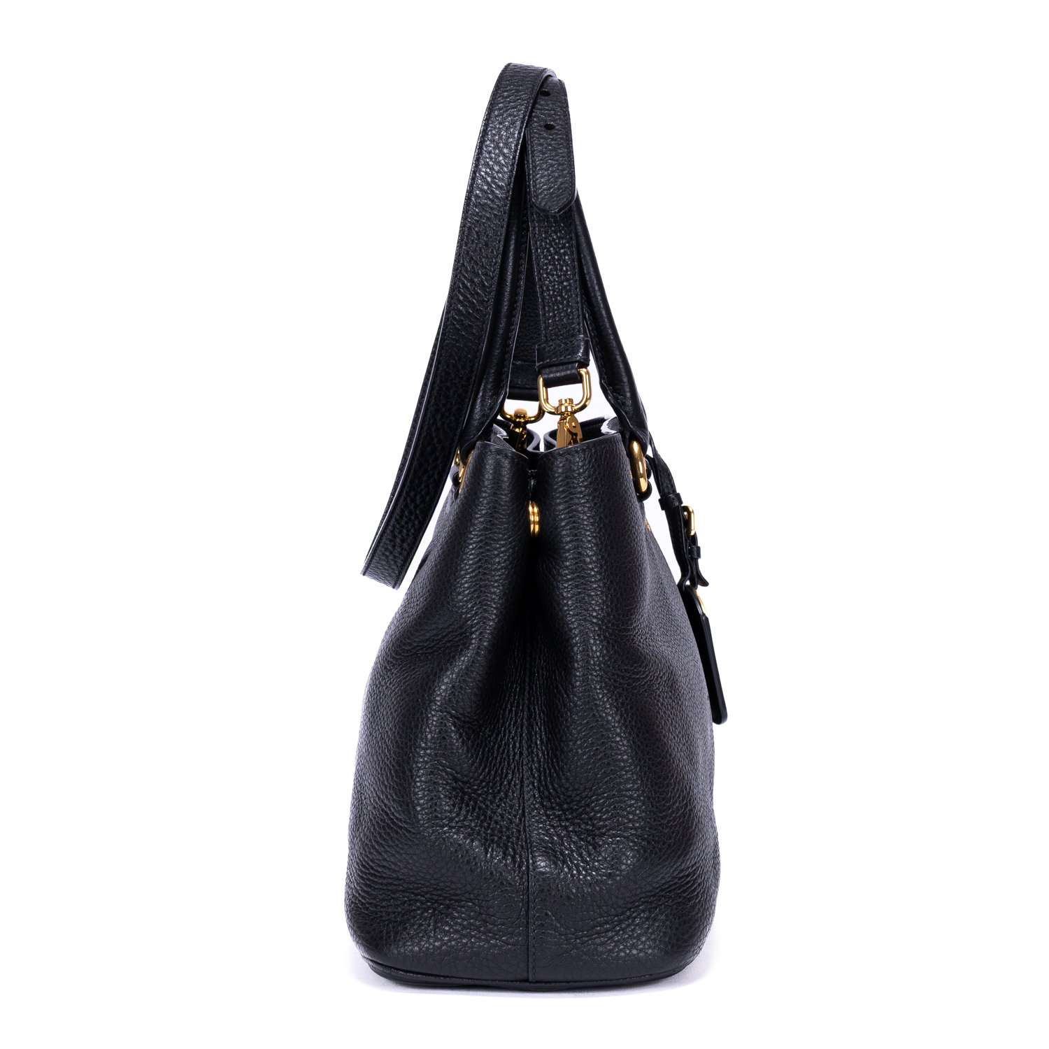 Prada Sac à bandoulière Crossbody Tote en Black et Gold. Le produit est en Excellent état (A).