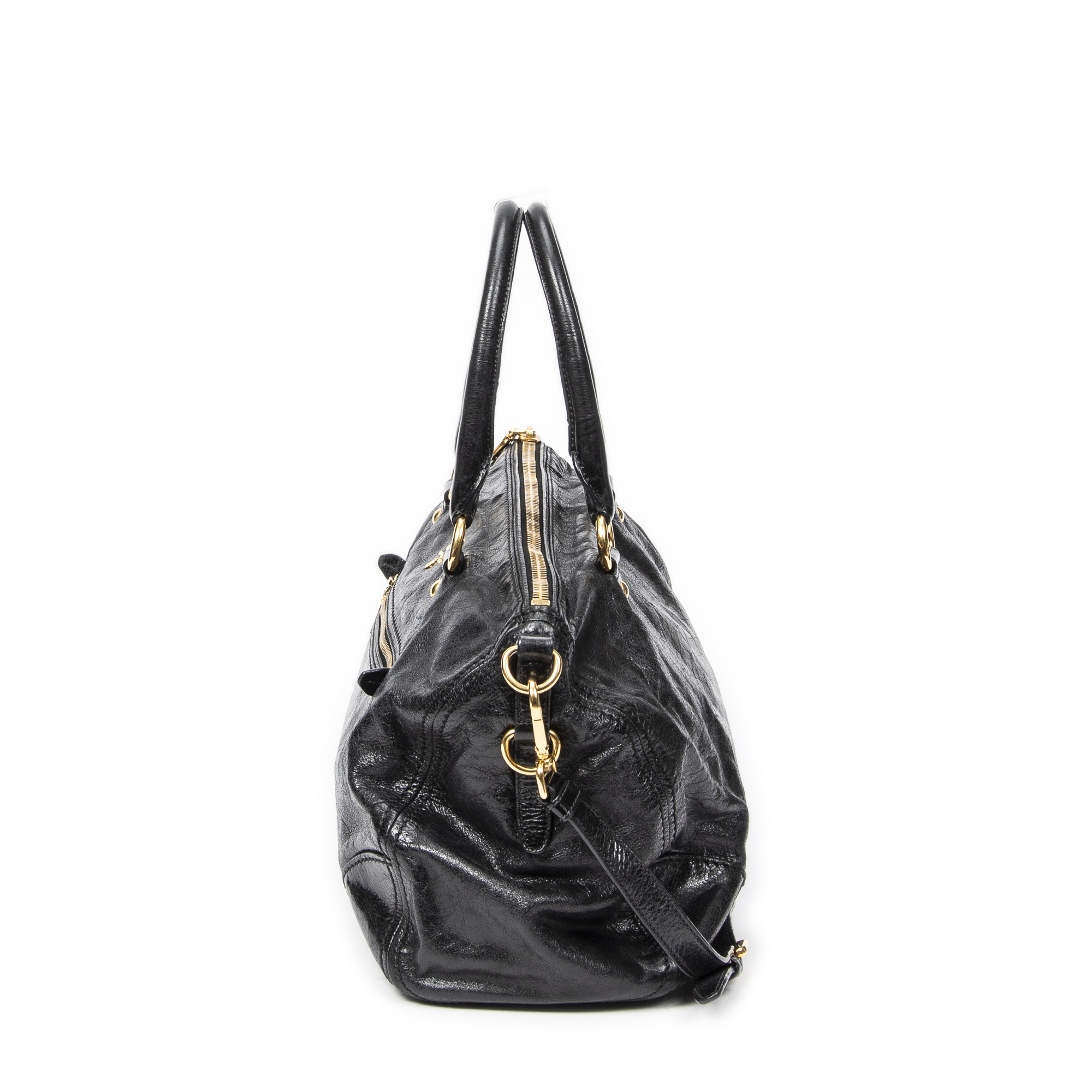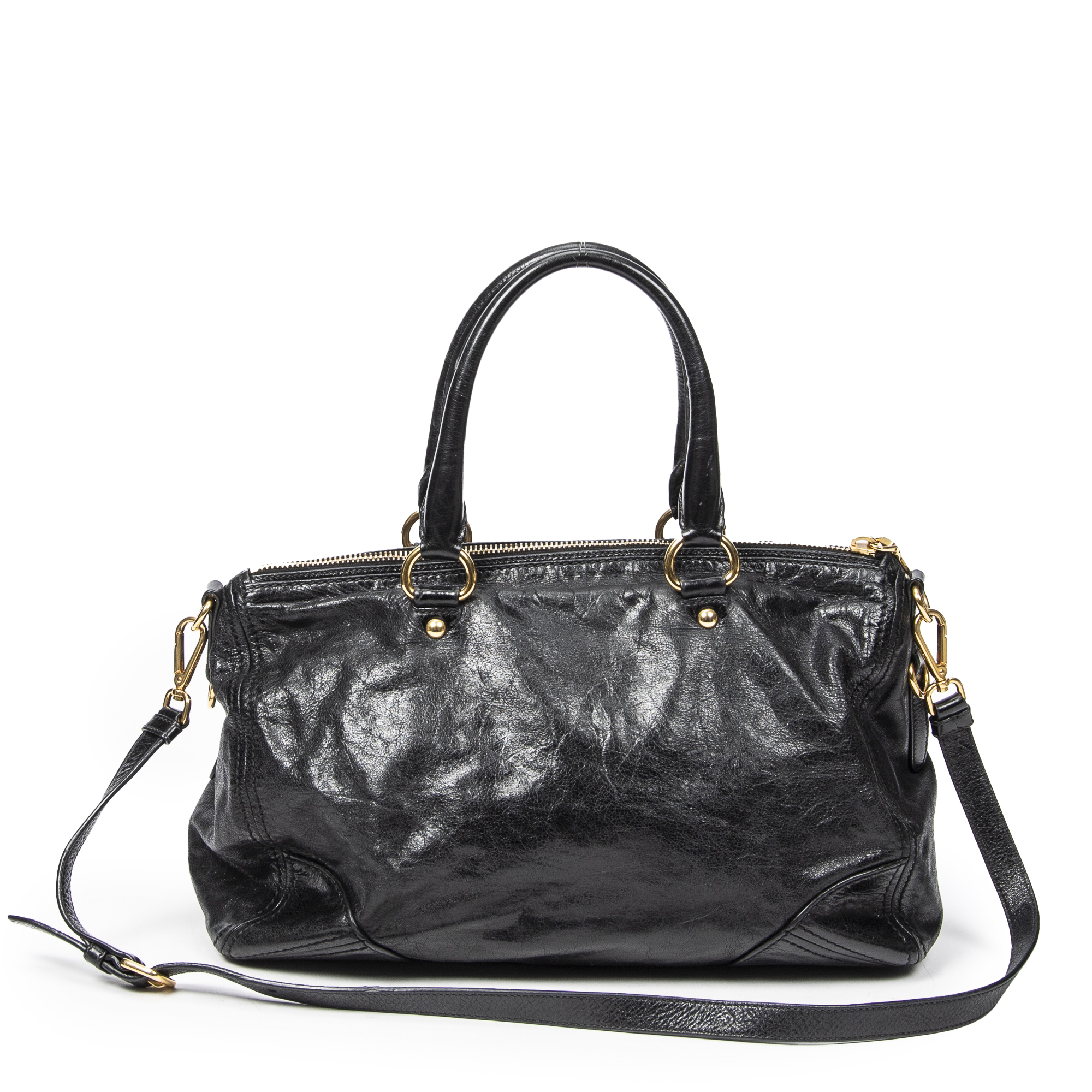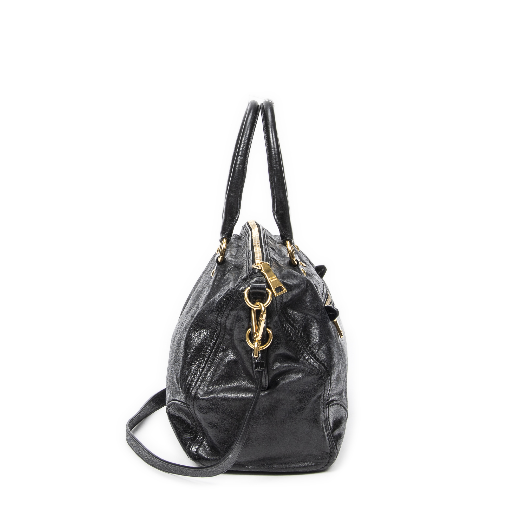 Prada Sac à bandoulière East West Bauletto Bag en Black et Gold. Le produit est en Excellent état (A).