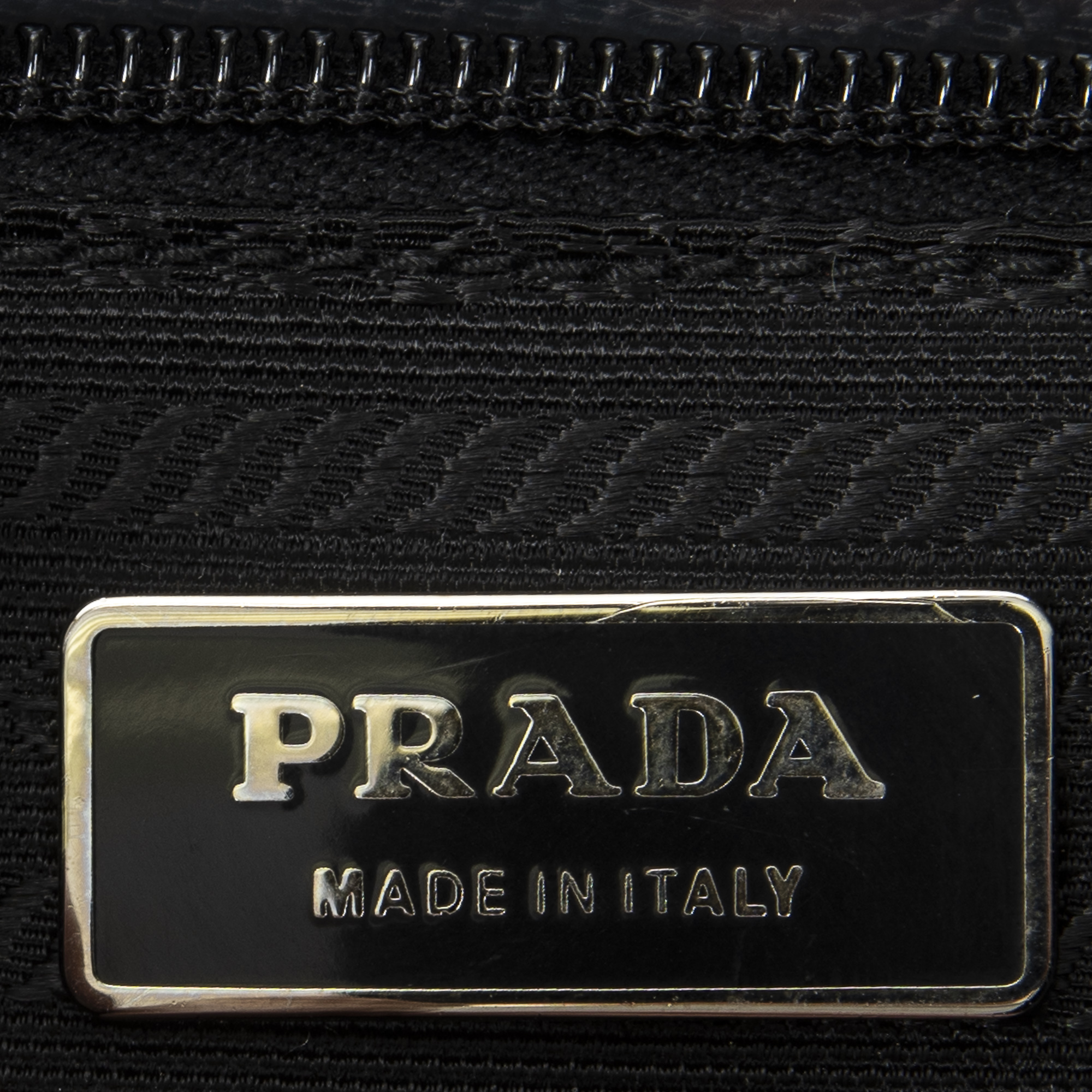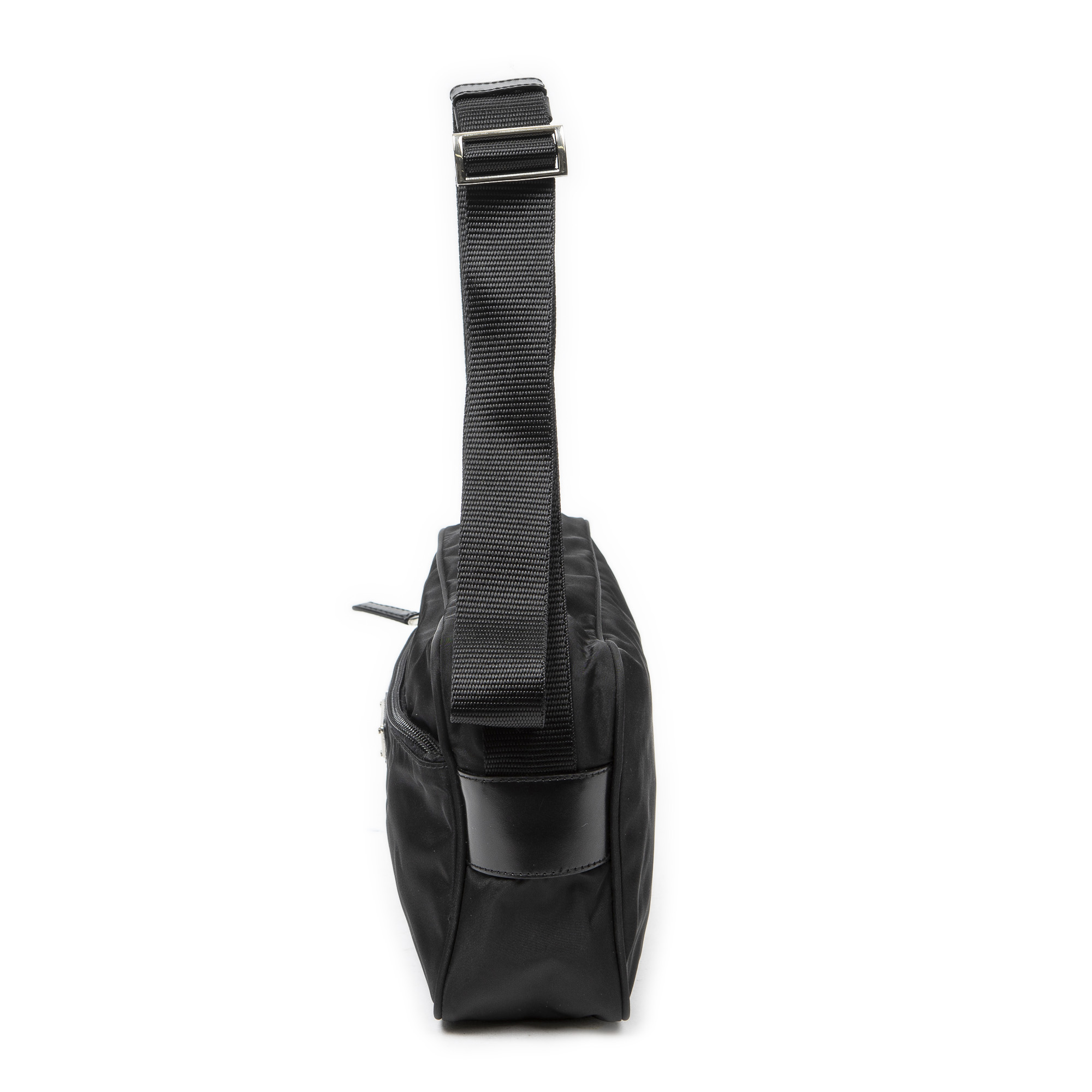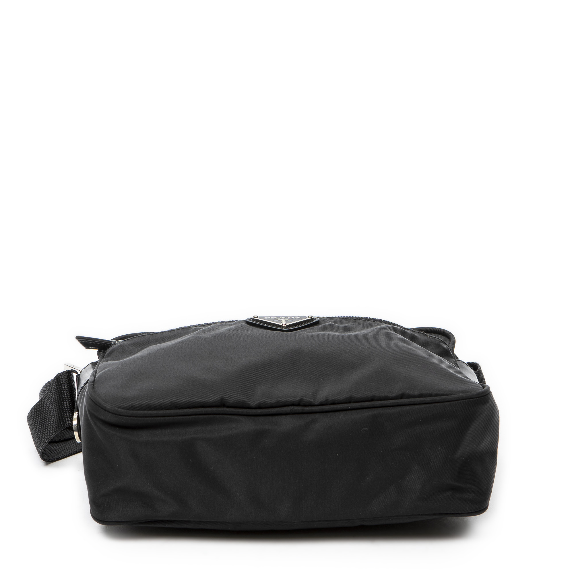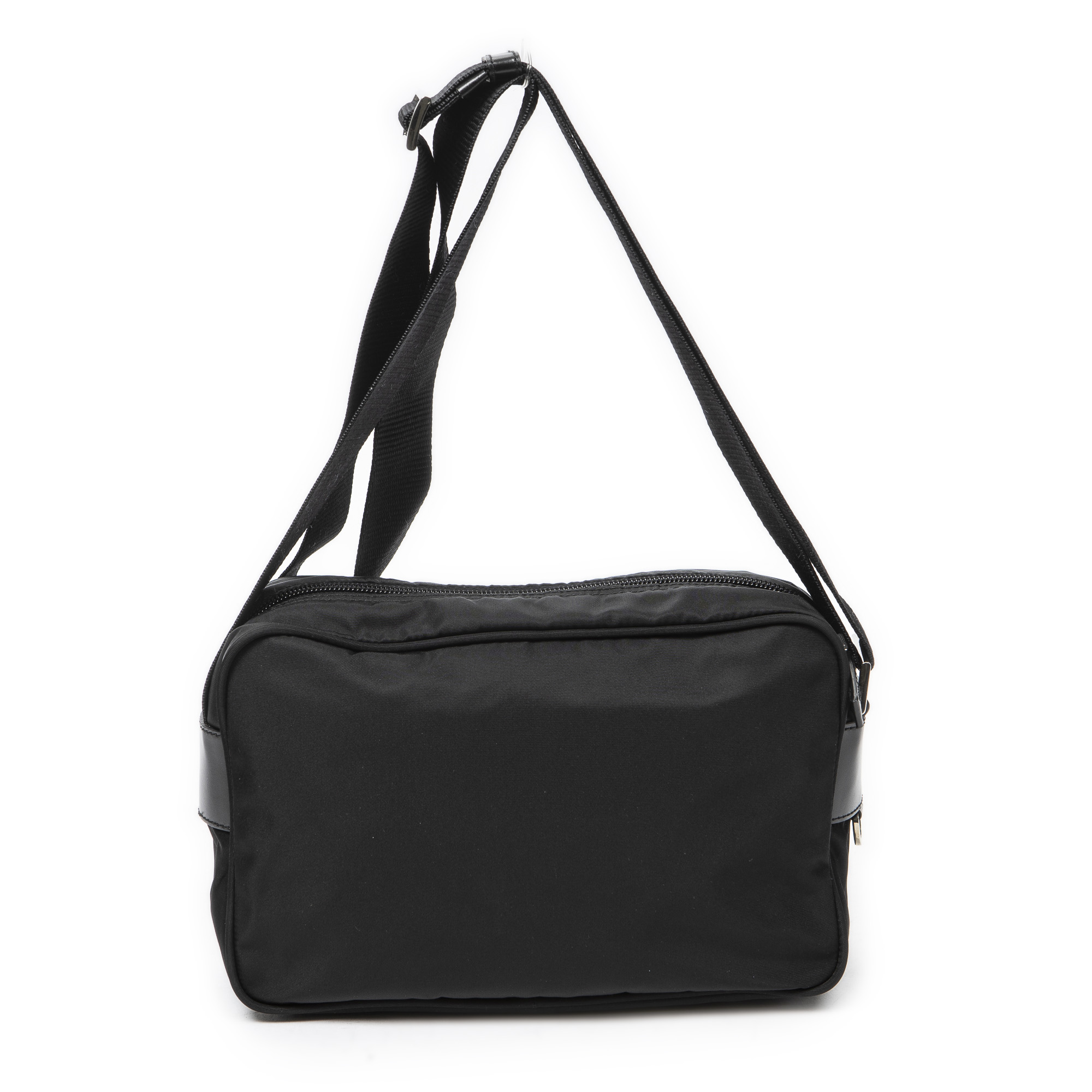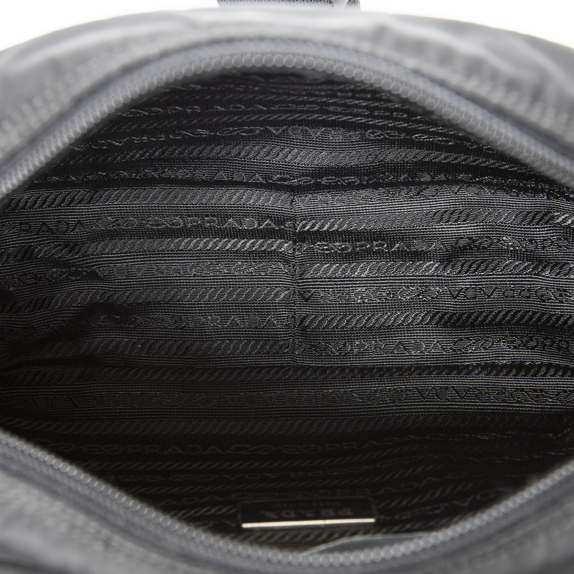 Prada Sac à bandoulière Front Zip Camera Crossbody en Noir et Argent. Le produit est en Parfait état (AA).
