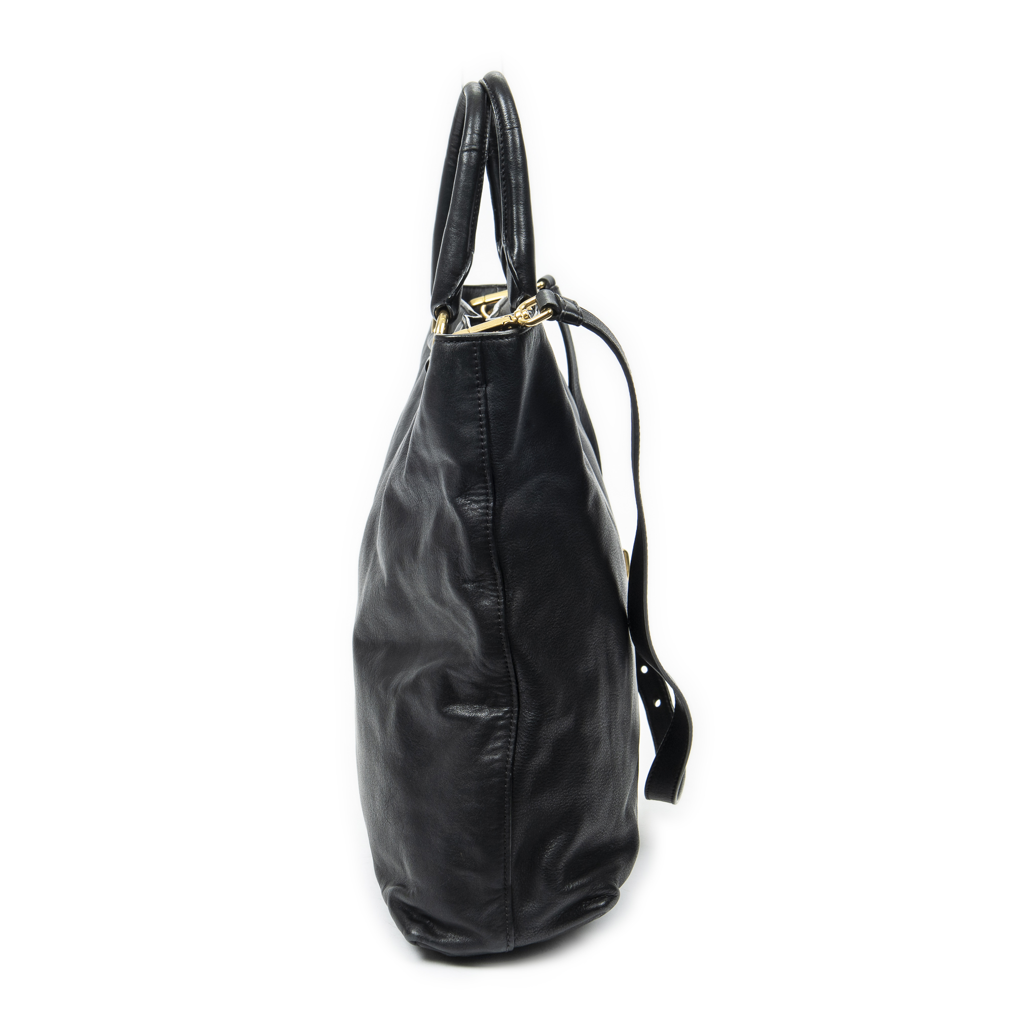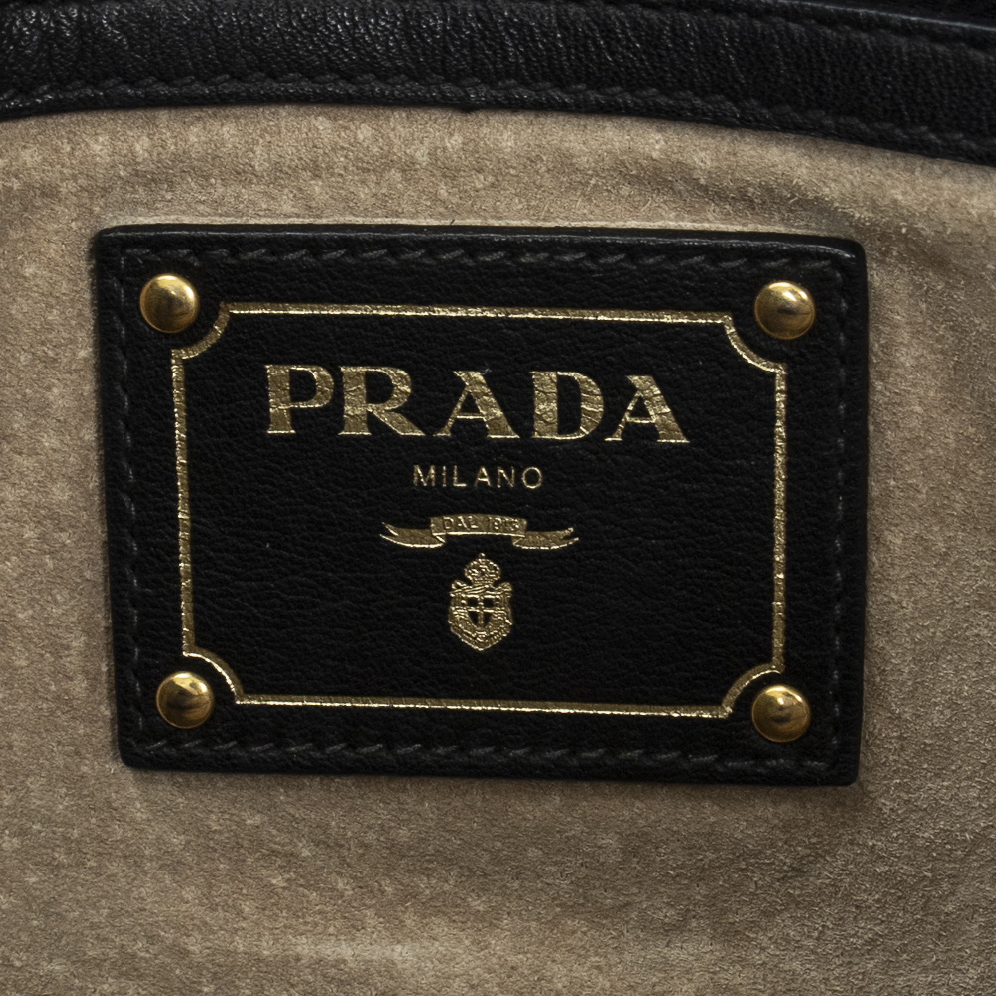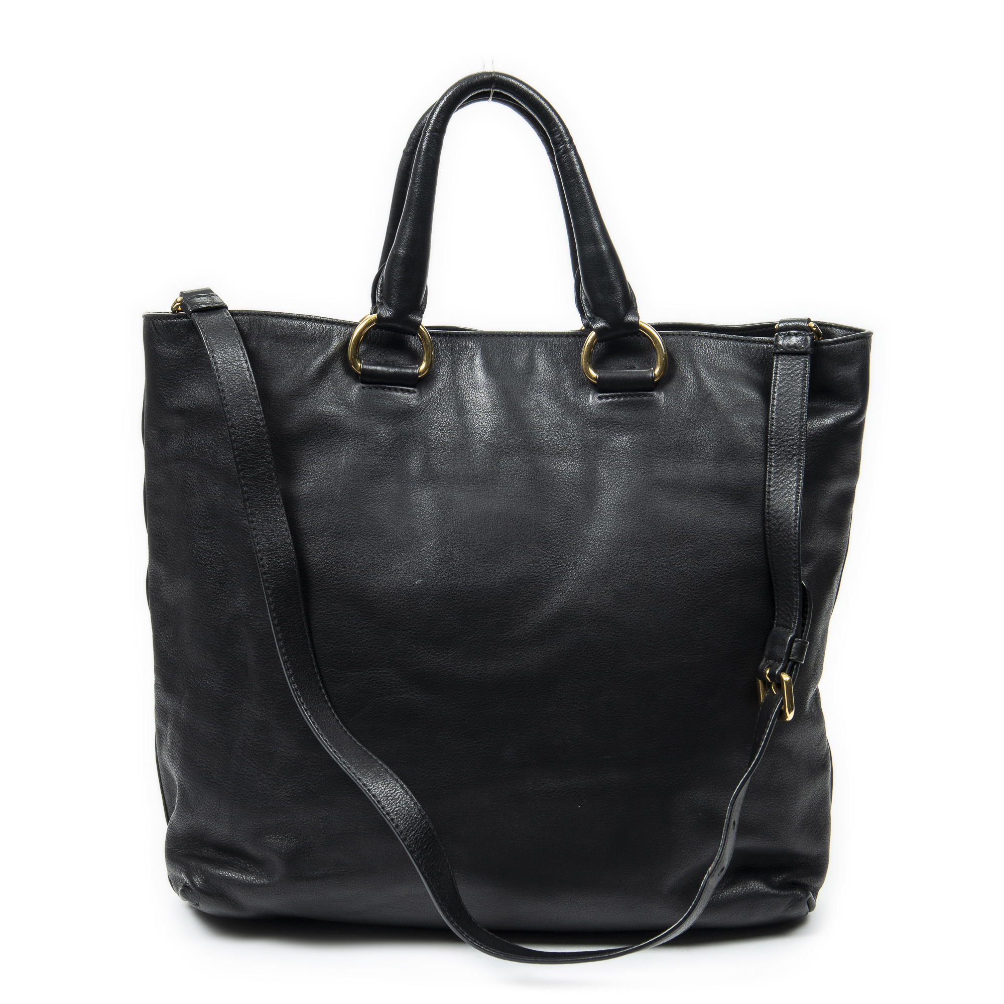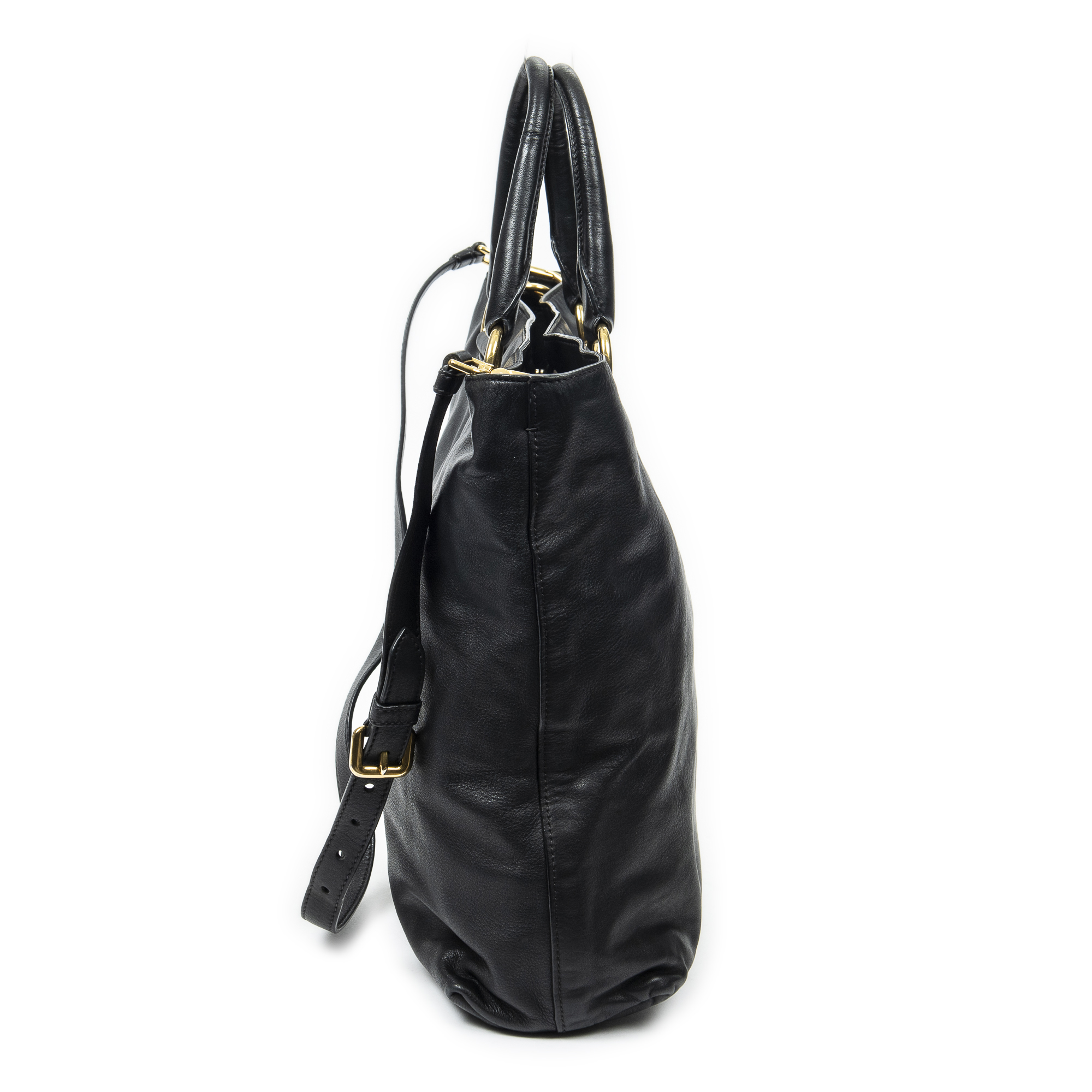 Prada Sac à bandoulière Large Shopping Tote en Du cuir de veau Black et Gold. Le produit est en Excellent état (A).