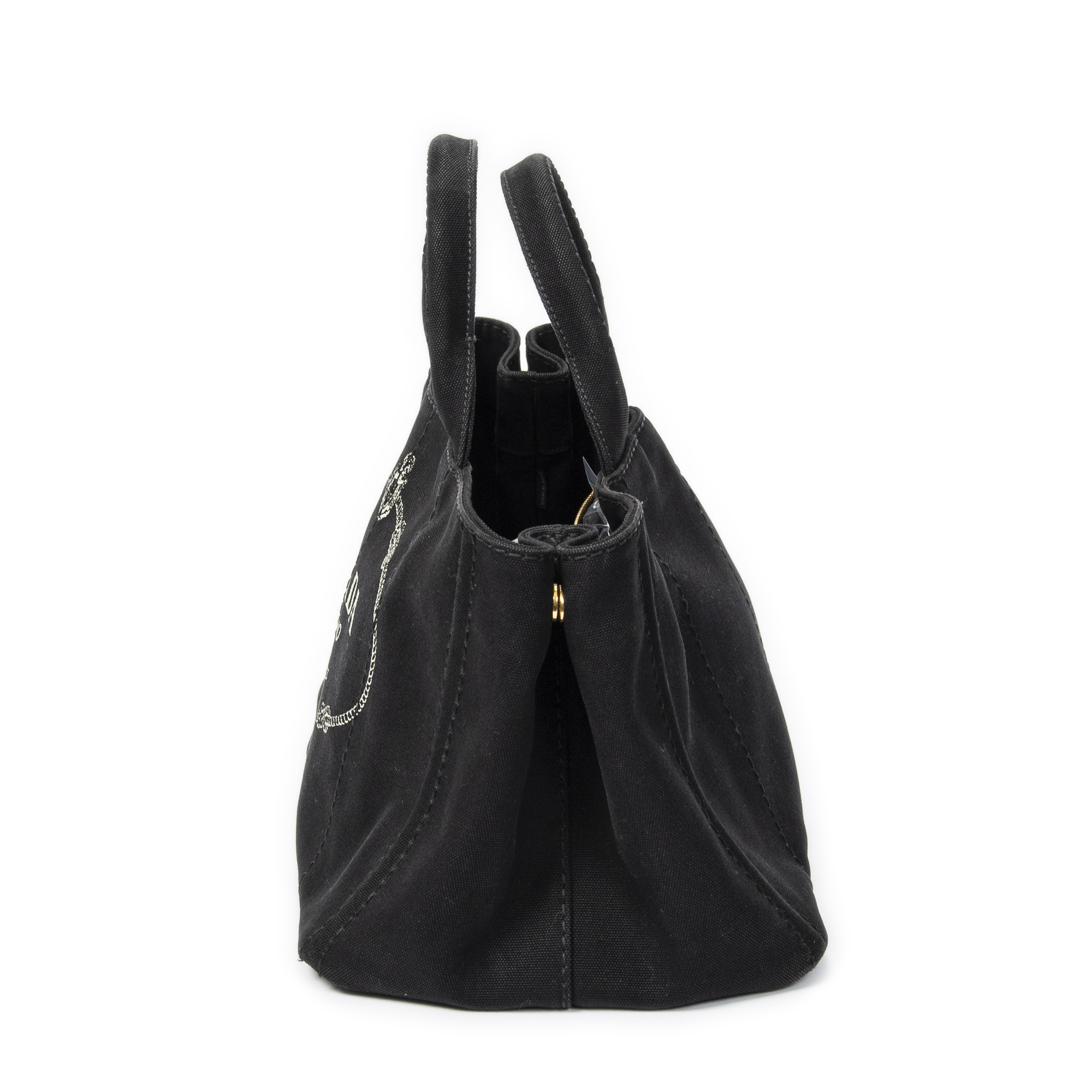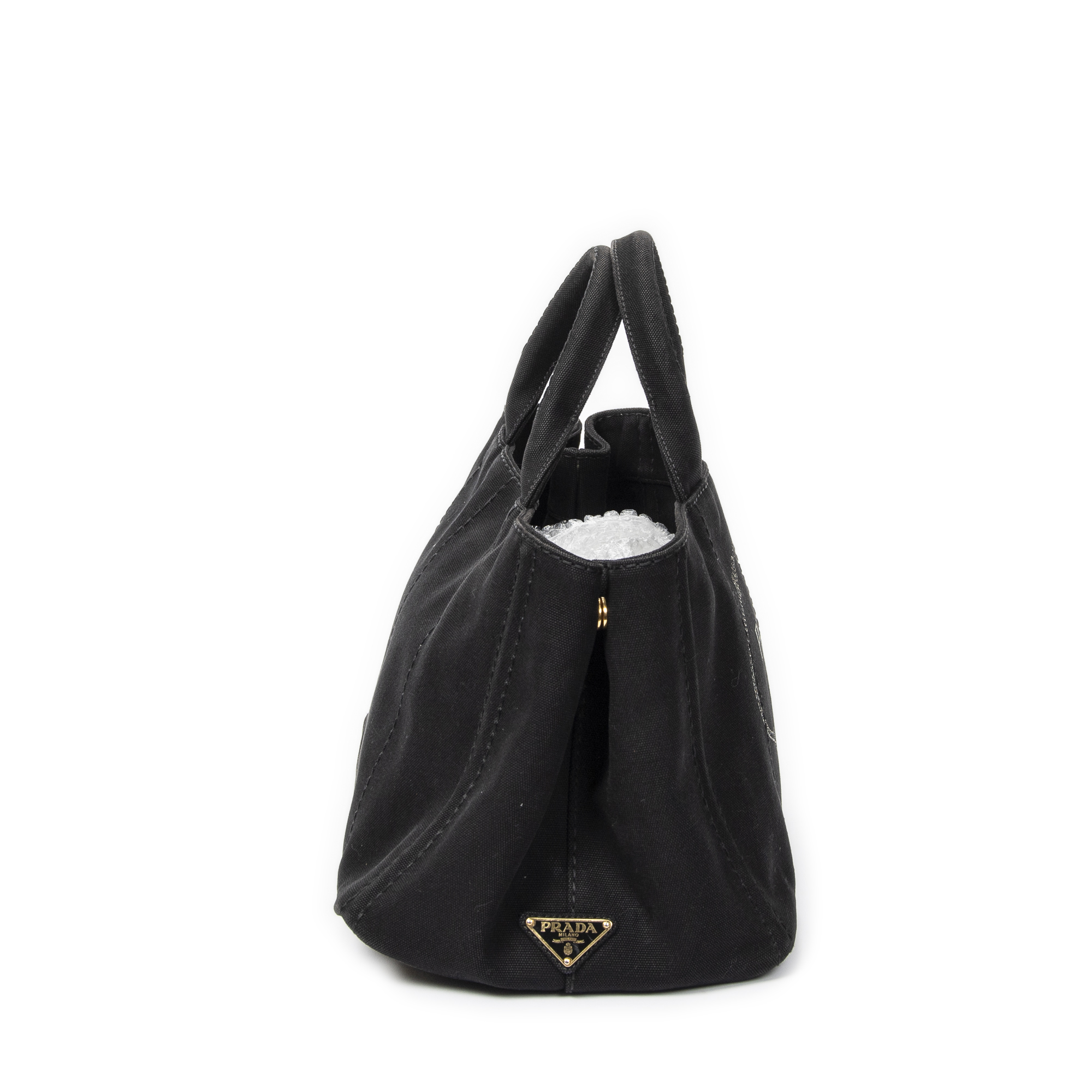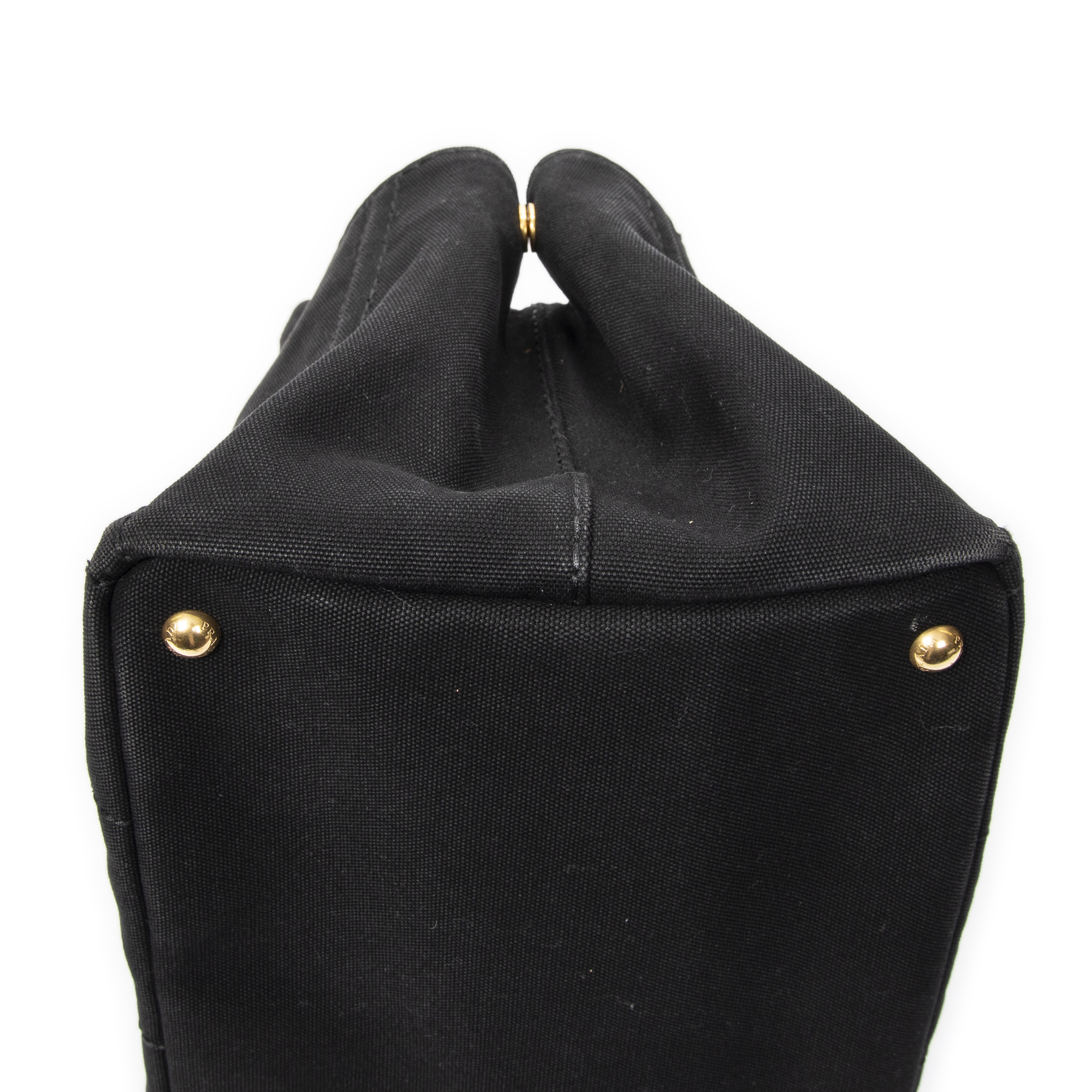 Prada Sac à bandoulière Medium Canapa Tote en Black et Gold. Le produit est en Excellent état (A).