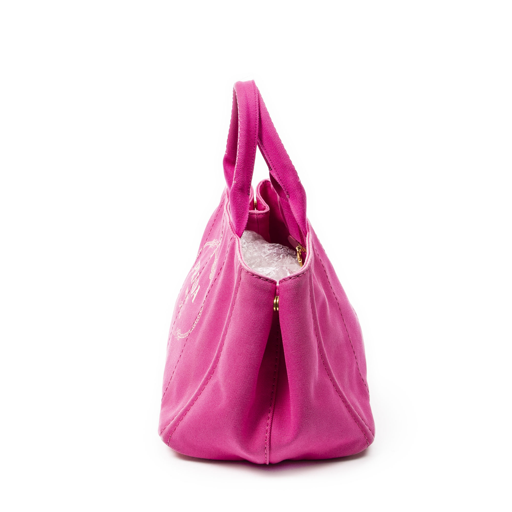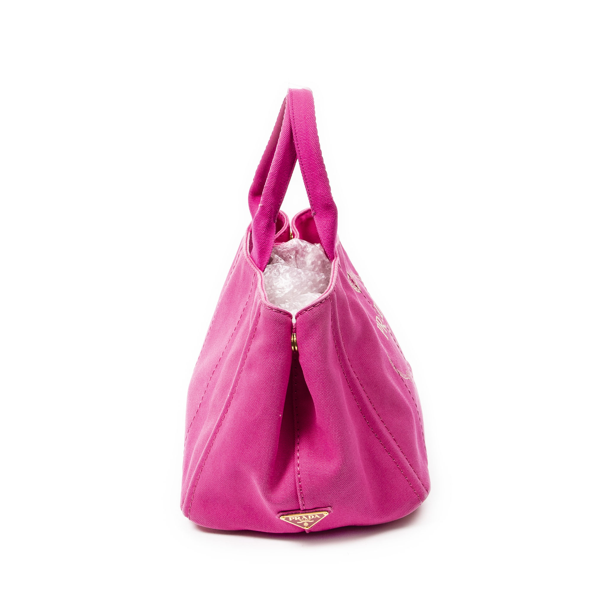 Prada Sac à bandoulière Medium Canapa Tote en Rose et Gold. Le produit est en Très Bon état (AB).