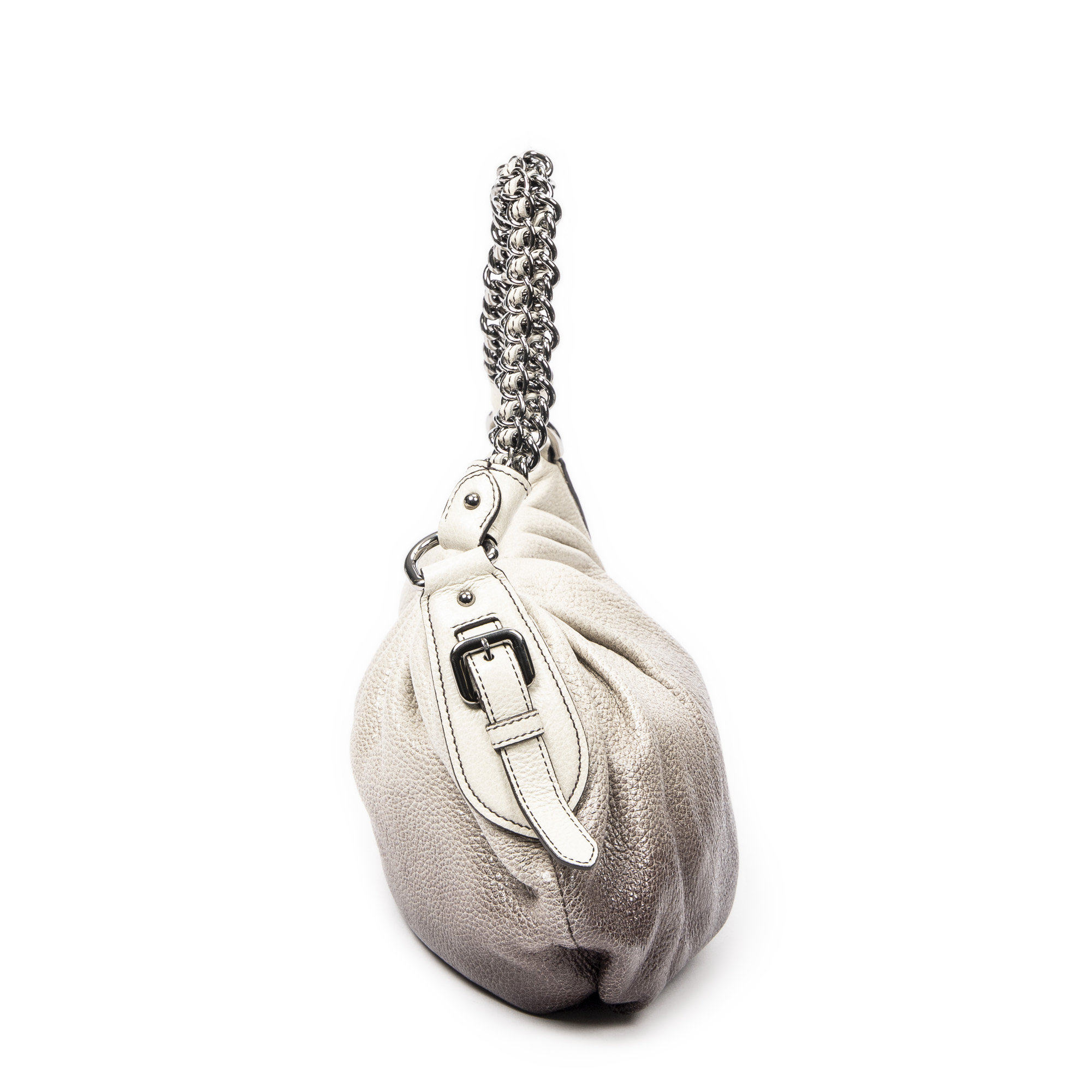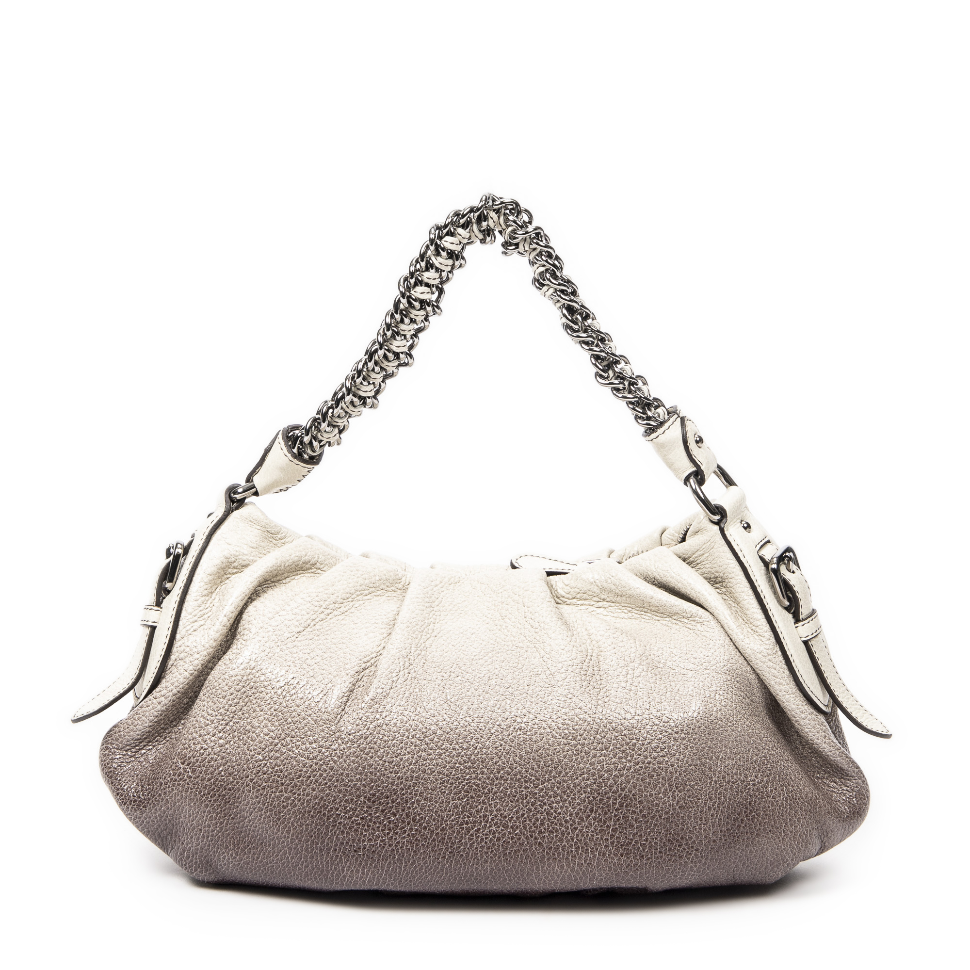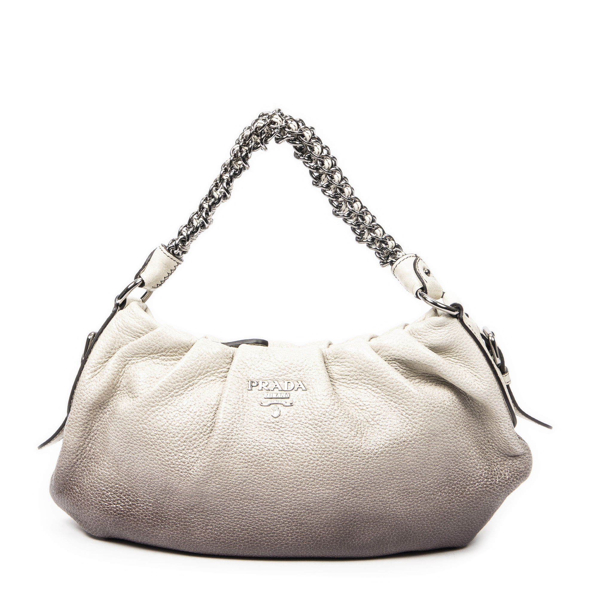 Prada Sac à bandoulière Ombre Pleated Chain Strap en Blanc/Gris et Argent. Le produit est en Excellent état (A).